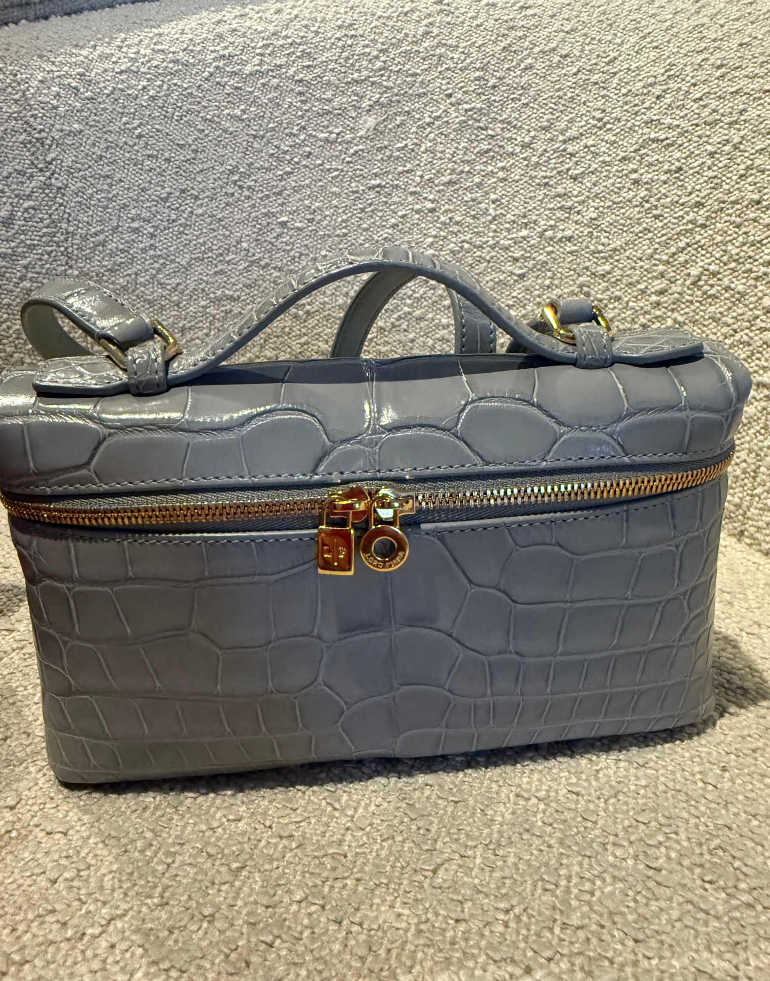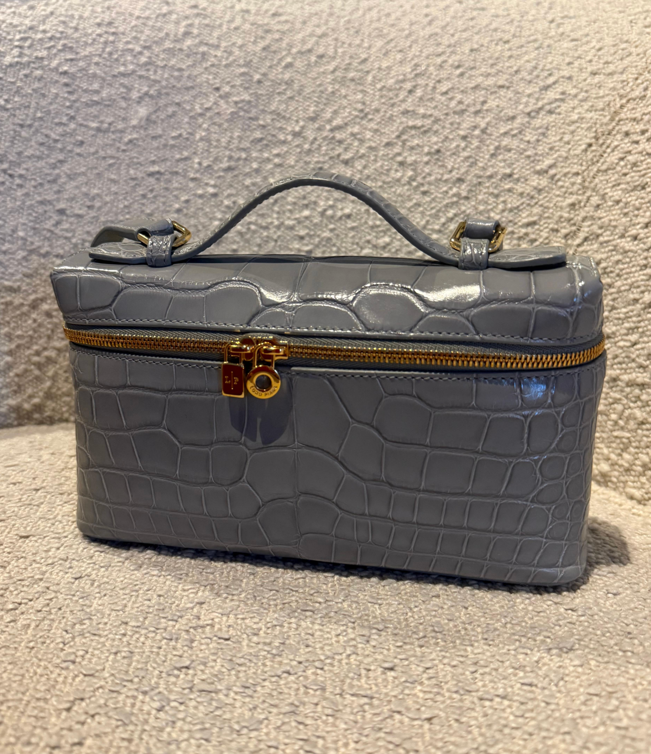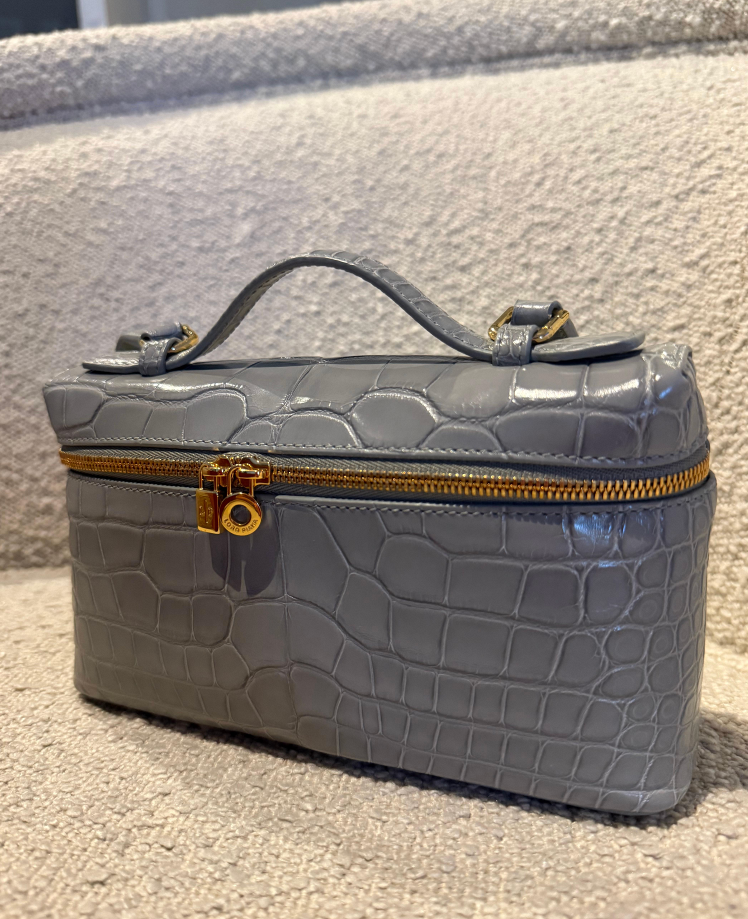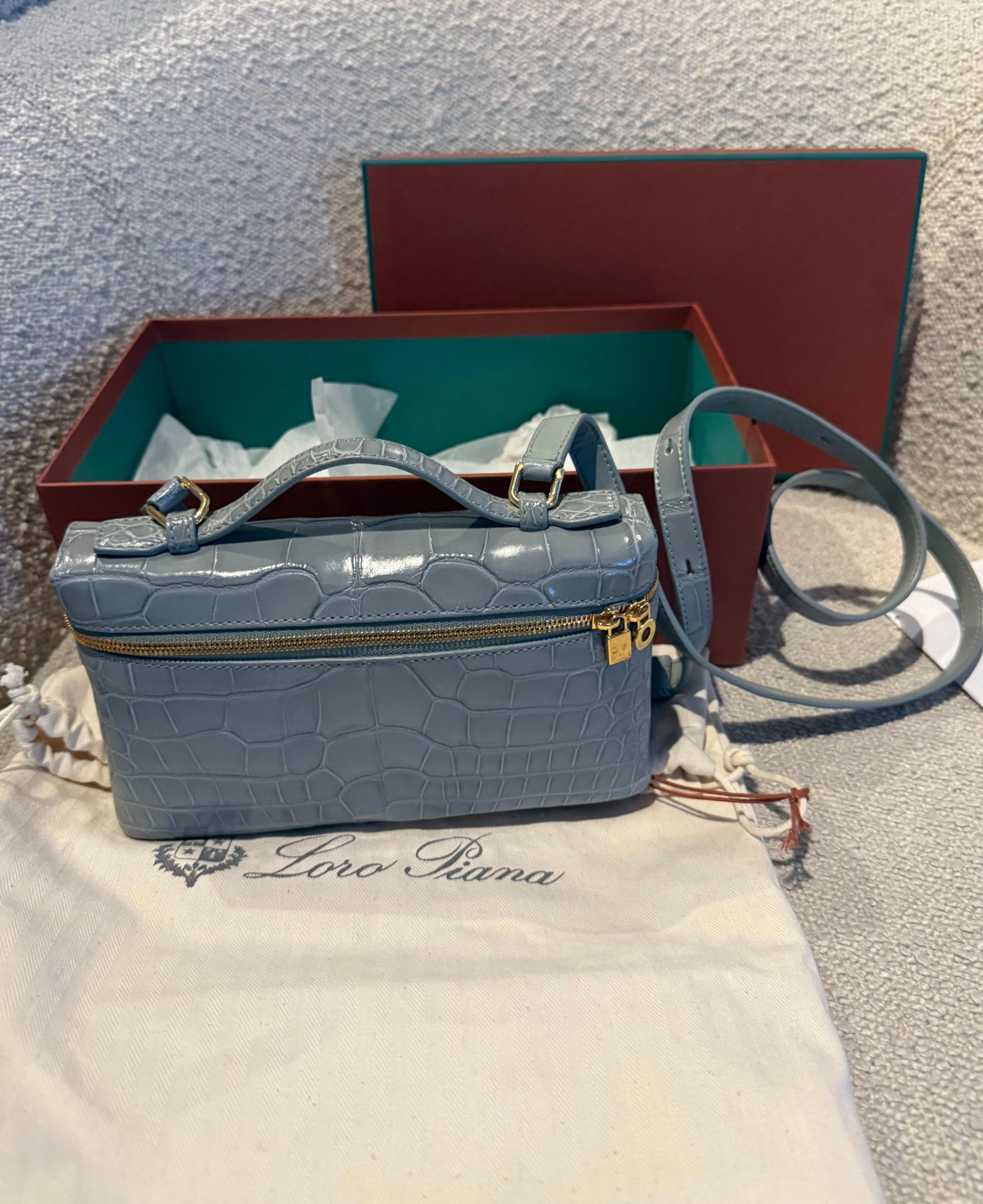 LORO PIANA Extra Pocket L19 shiny Alligator Leather Pouch bag with long strap. Very rare colour to find.