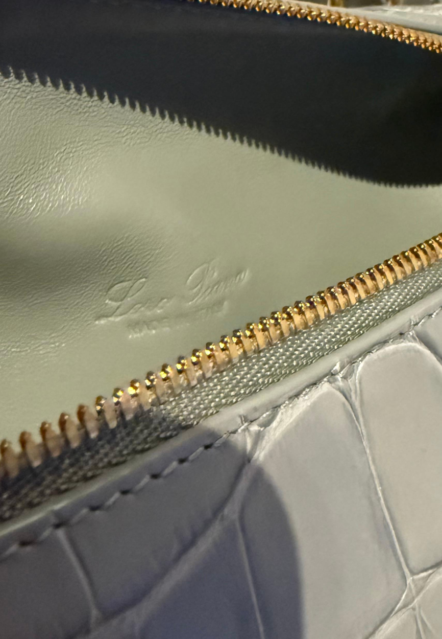 LORO PIANA Grey Extra Pocket L19 shiny Alligator Leather Pouch with cites