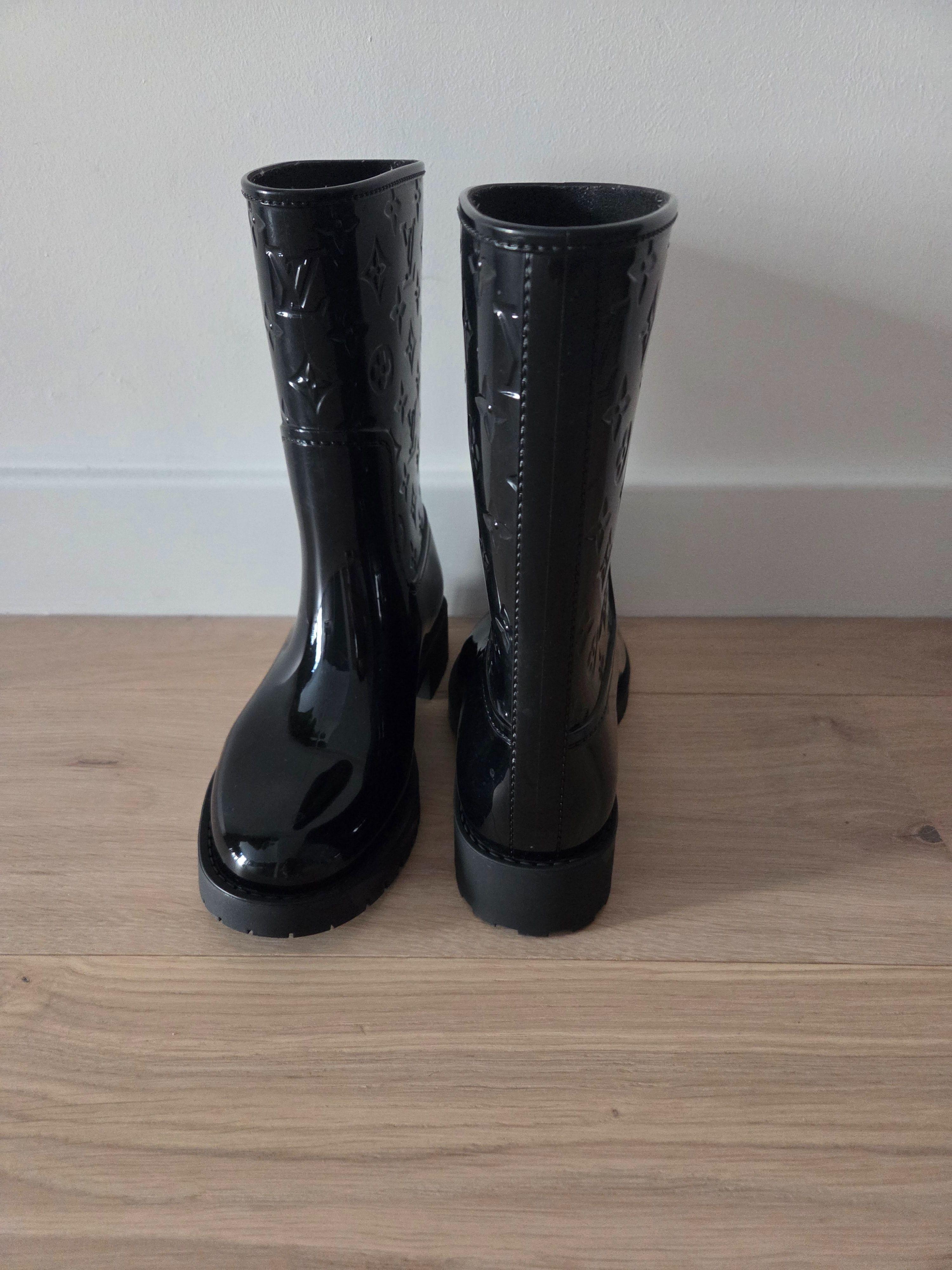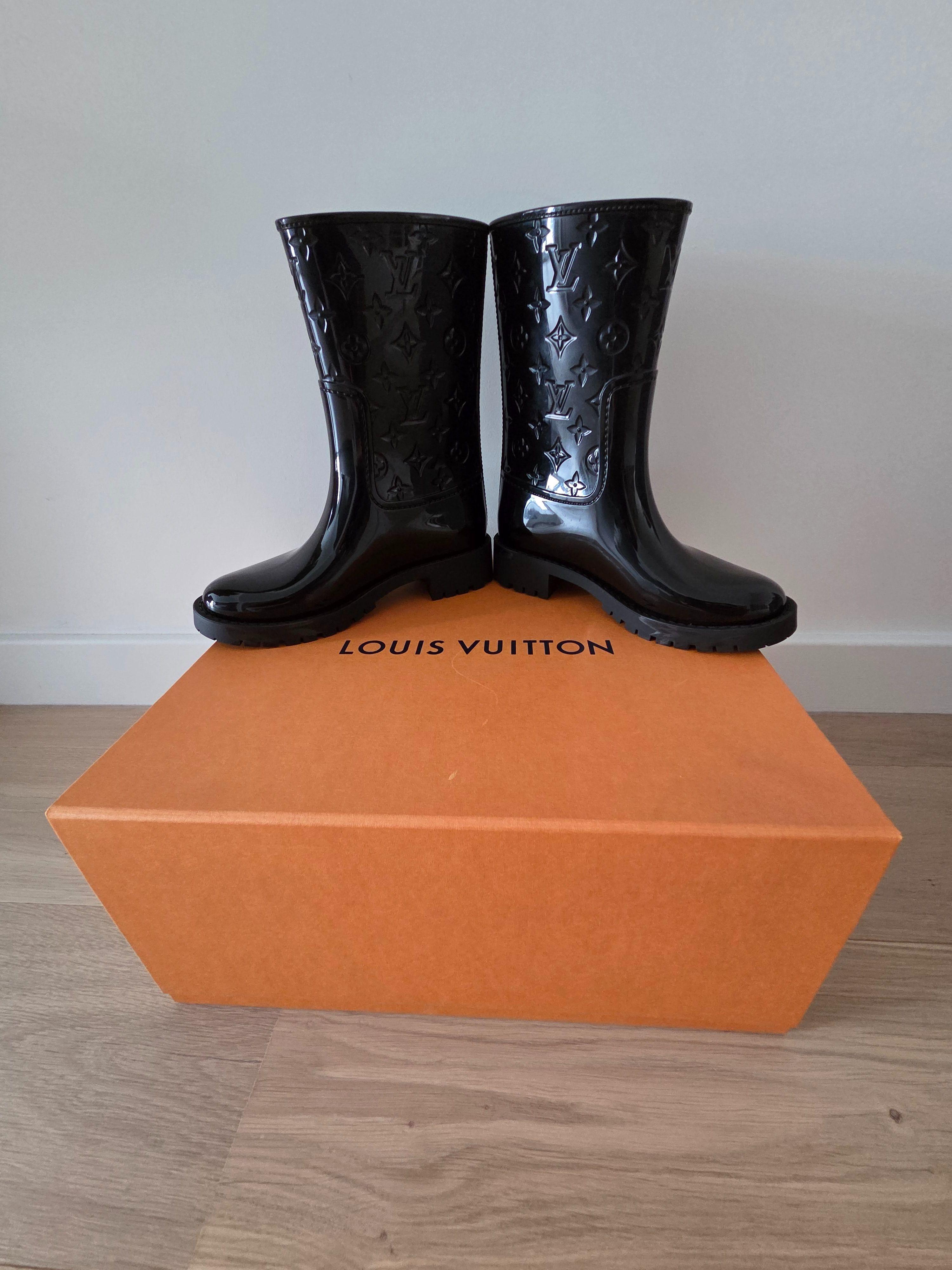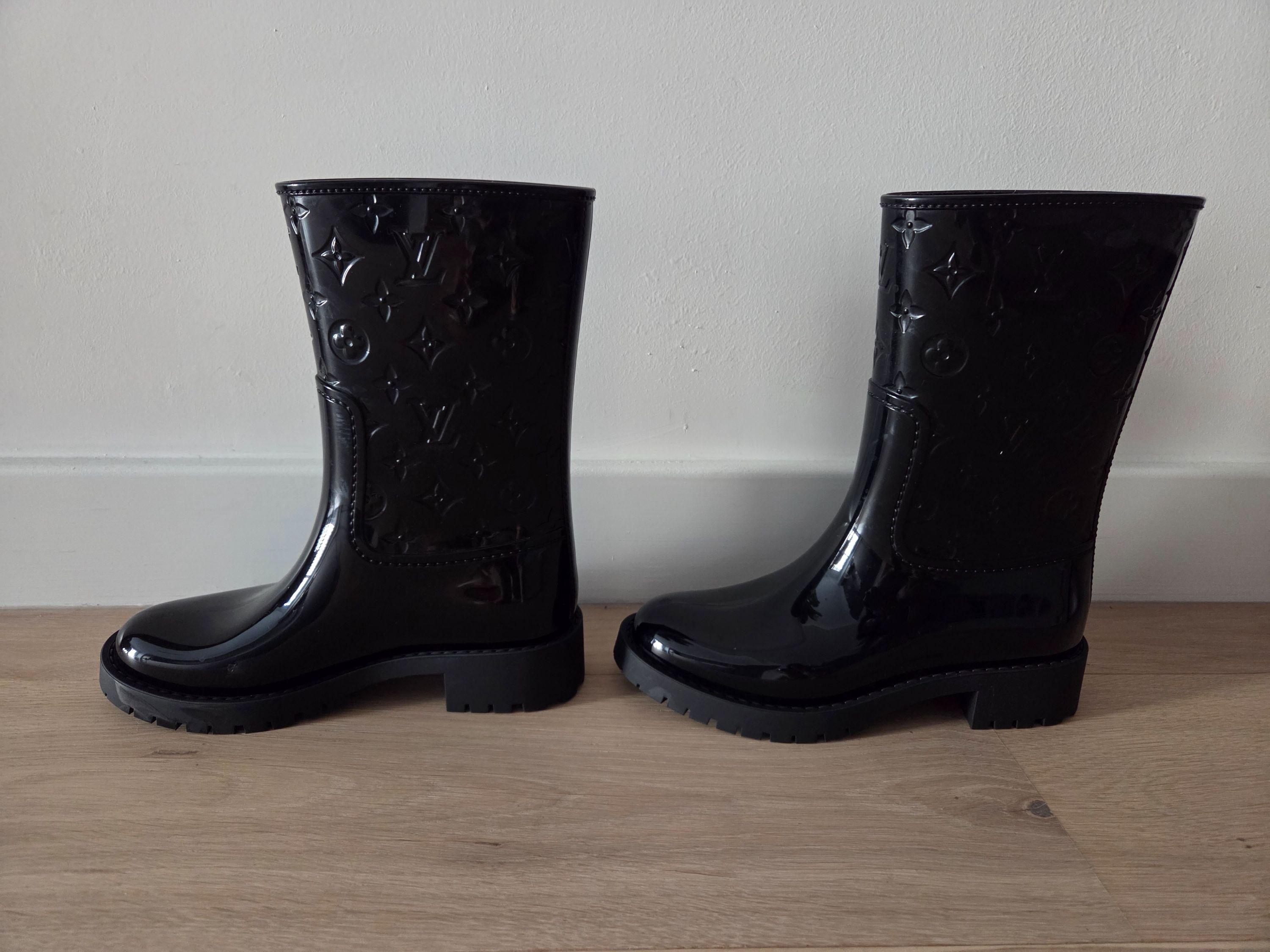 BRAND NEW GENUINE Louis Vuitton Drop Flat Boots. RRP £605. Brought from Harrods. Size 35 EU. Boxed. Dust Bag. Never worn. Got it as gift. The Louis Vuitton Drop Flat Boots are a stylish and versatile accessory for anyone. They are perfect for any occasion. Made from leather and rubber. They are water proof and feature the iconic LV BRAND.
