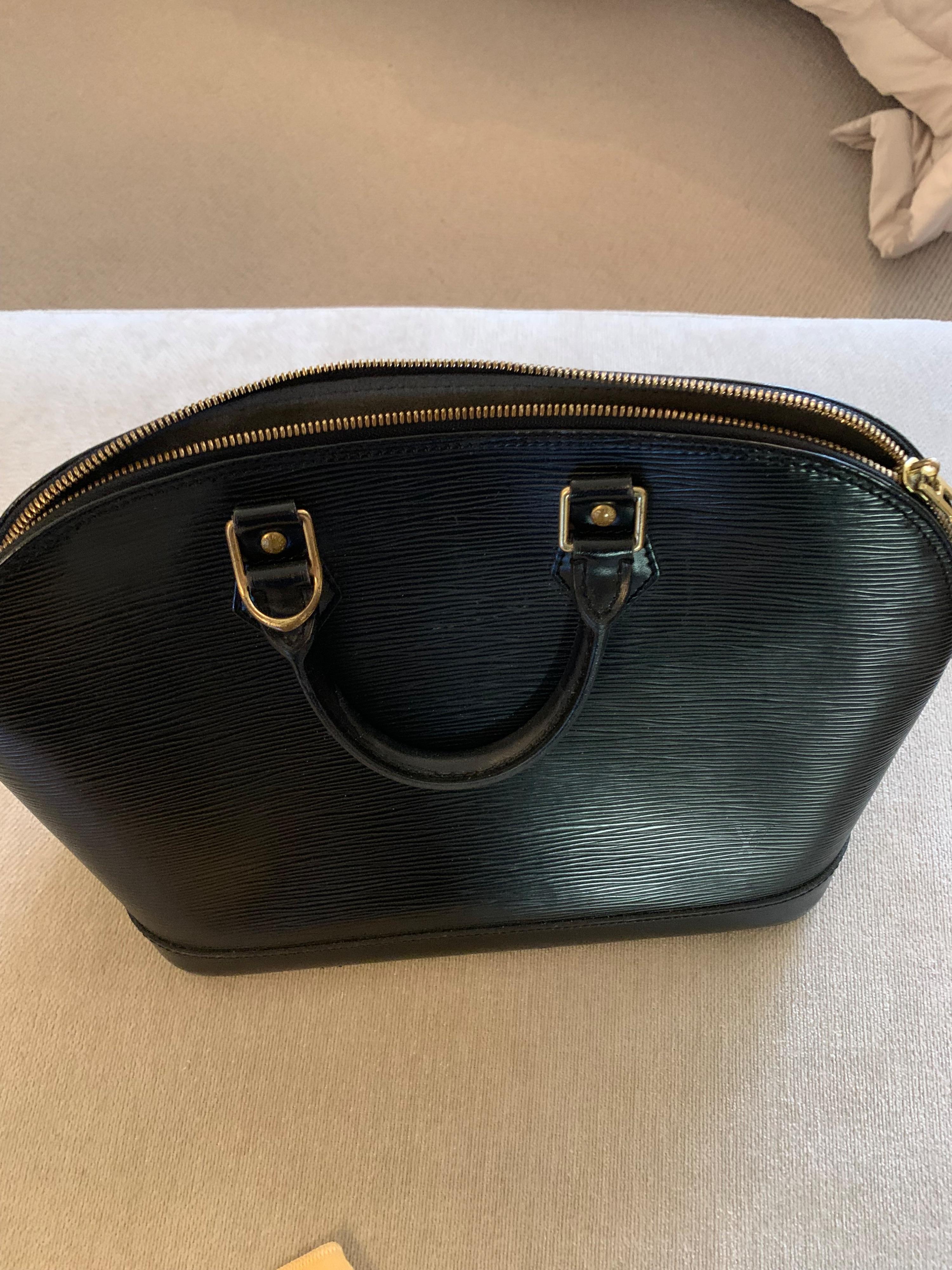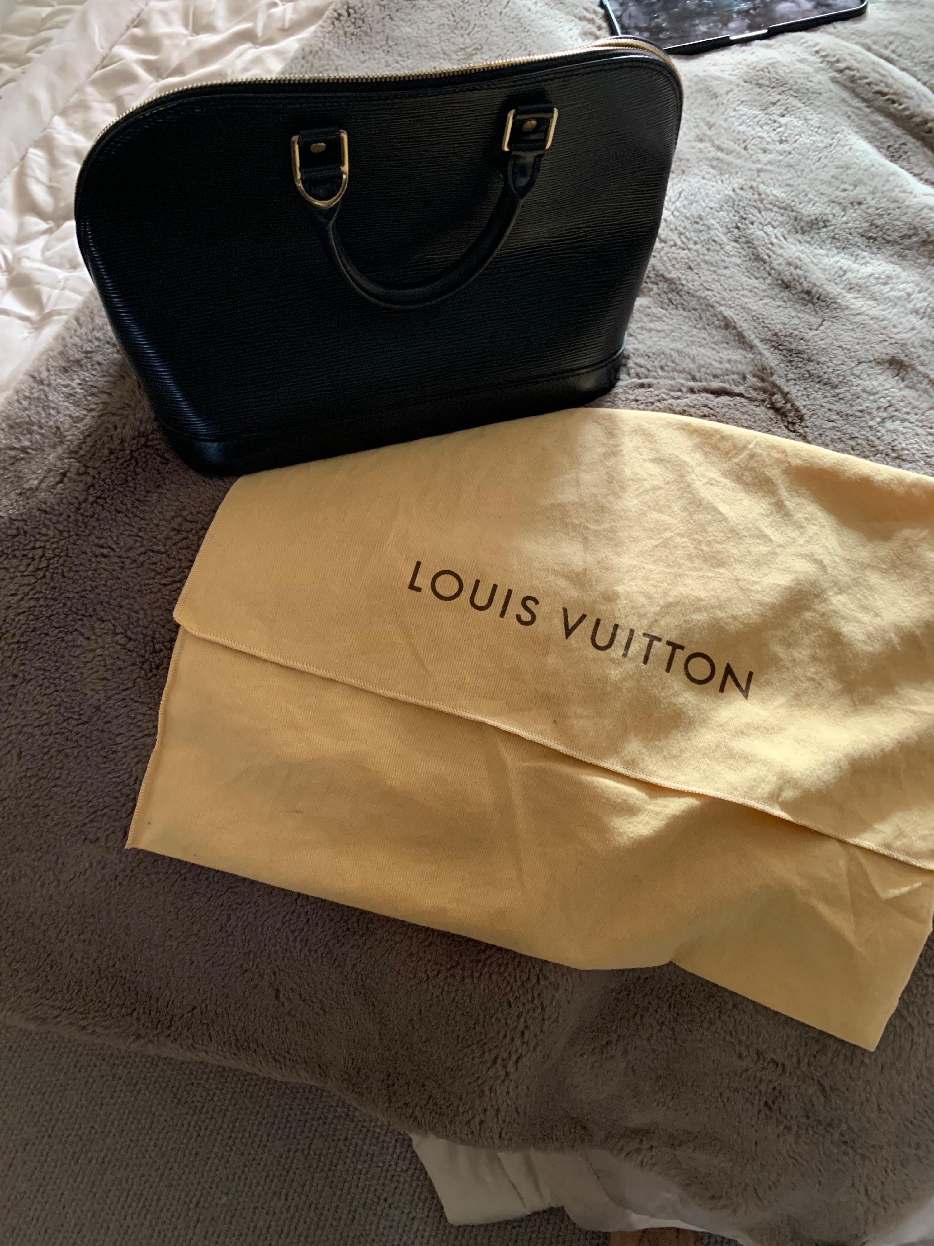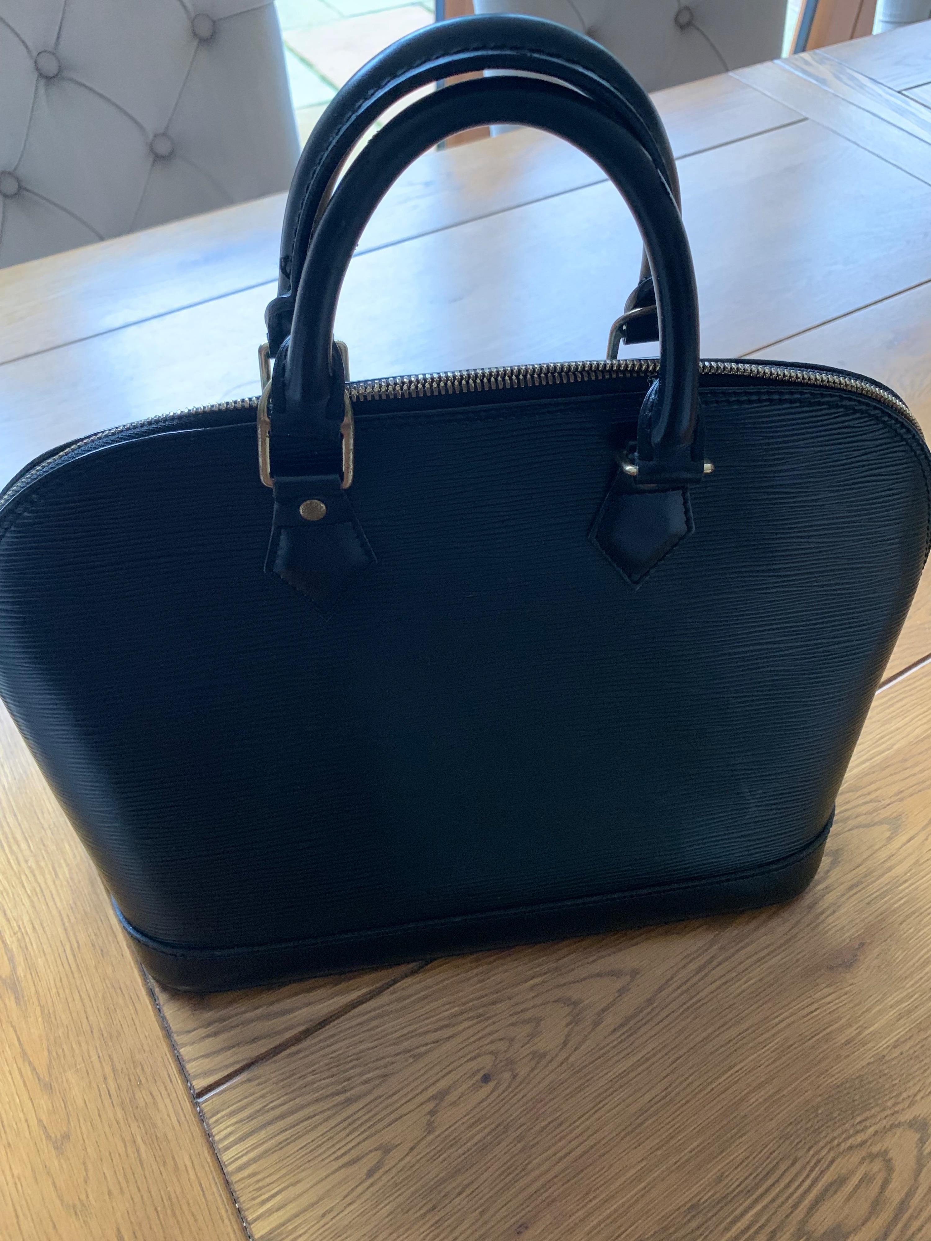 Alma bag with brass hardwear a contemporary piece with lock in good condition with duster bag. CODE FL1024