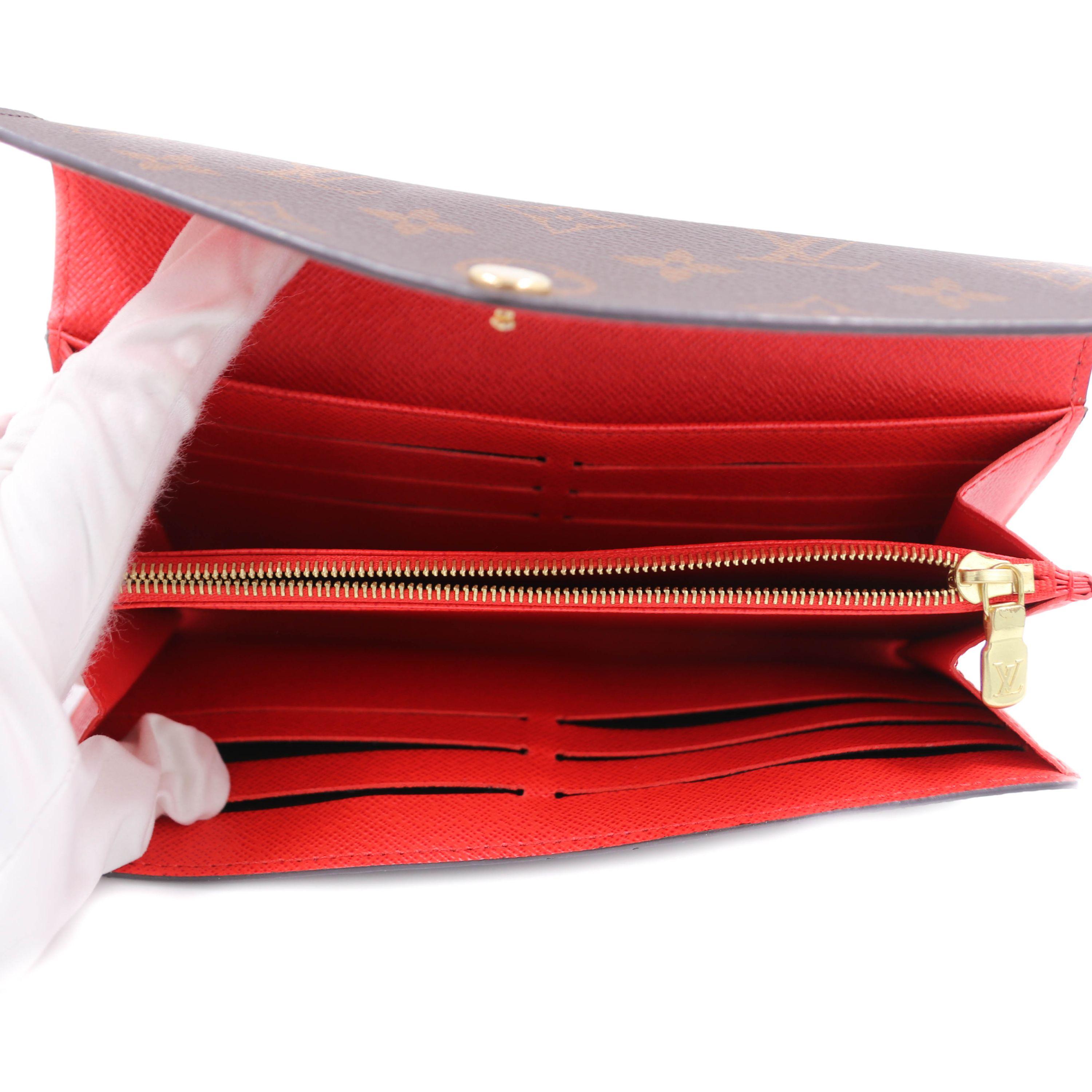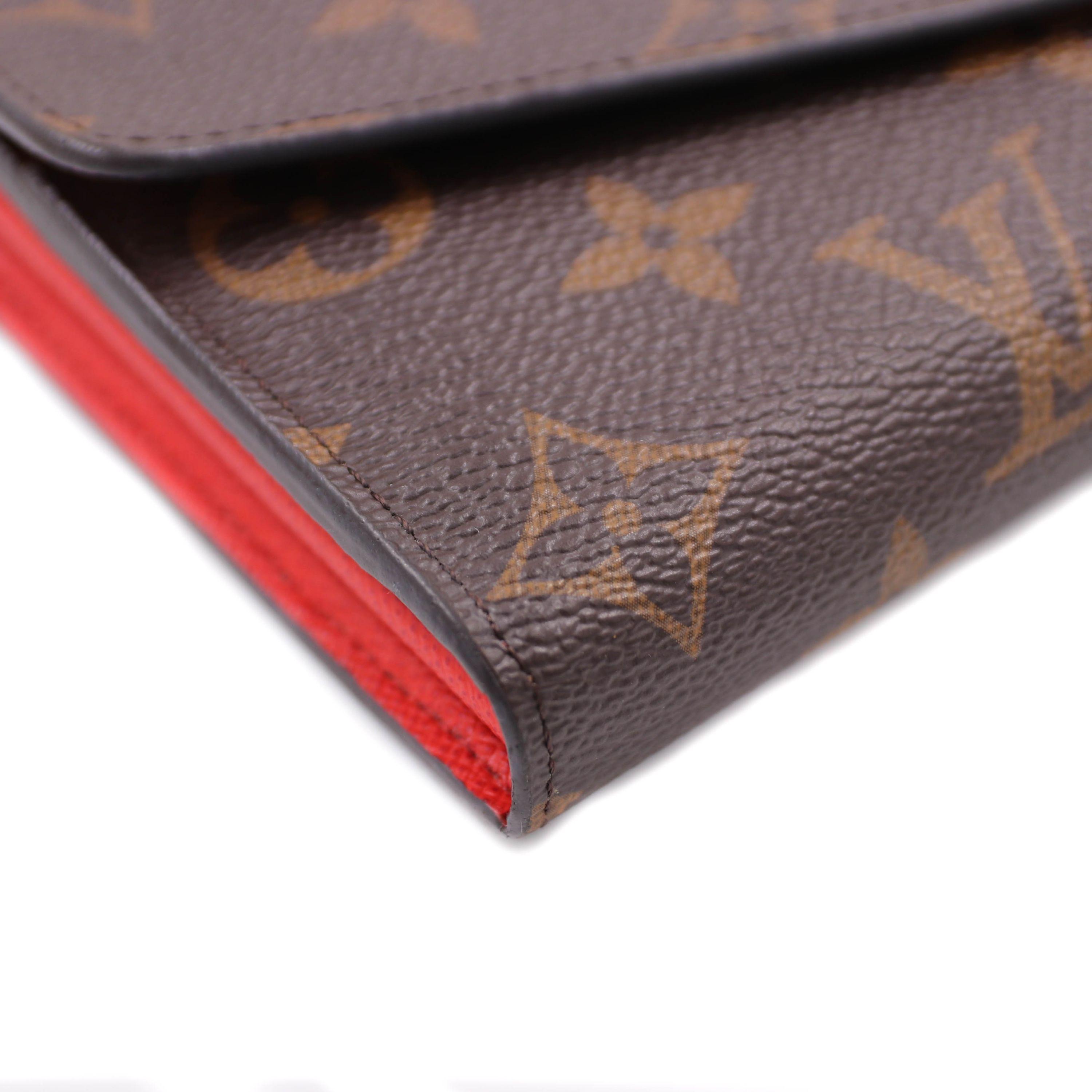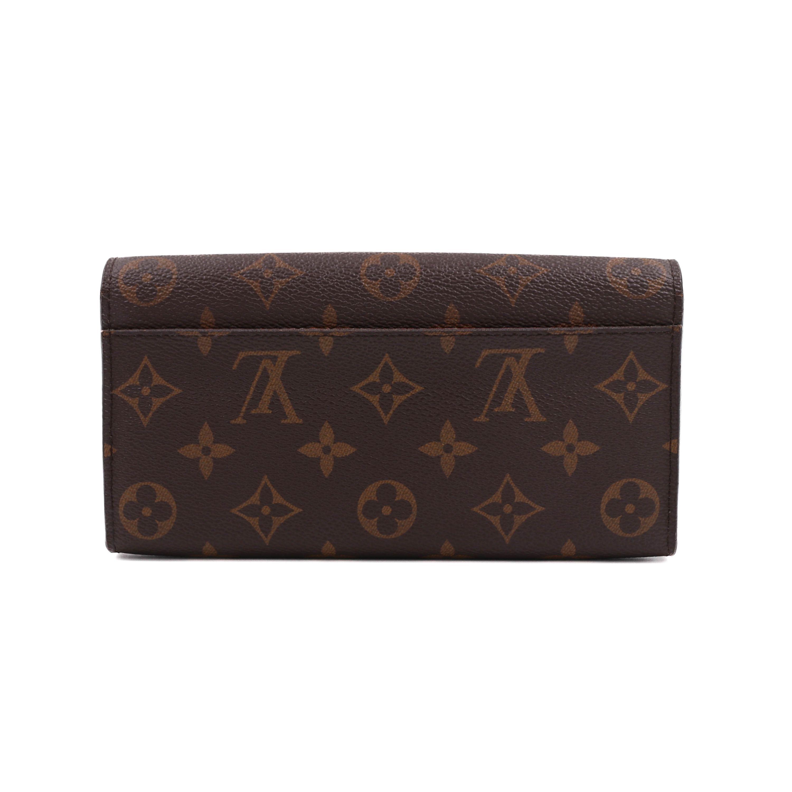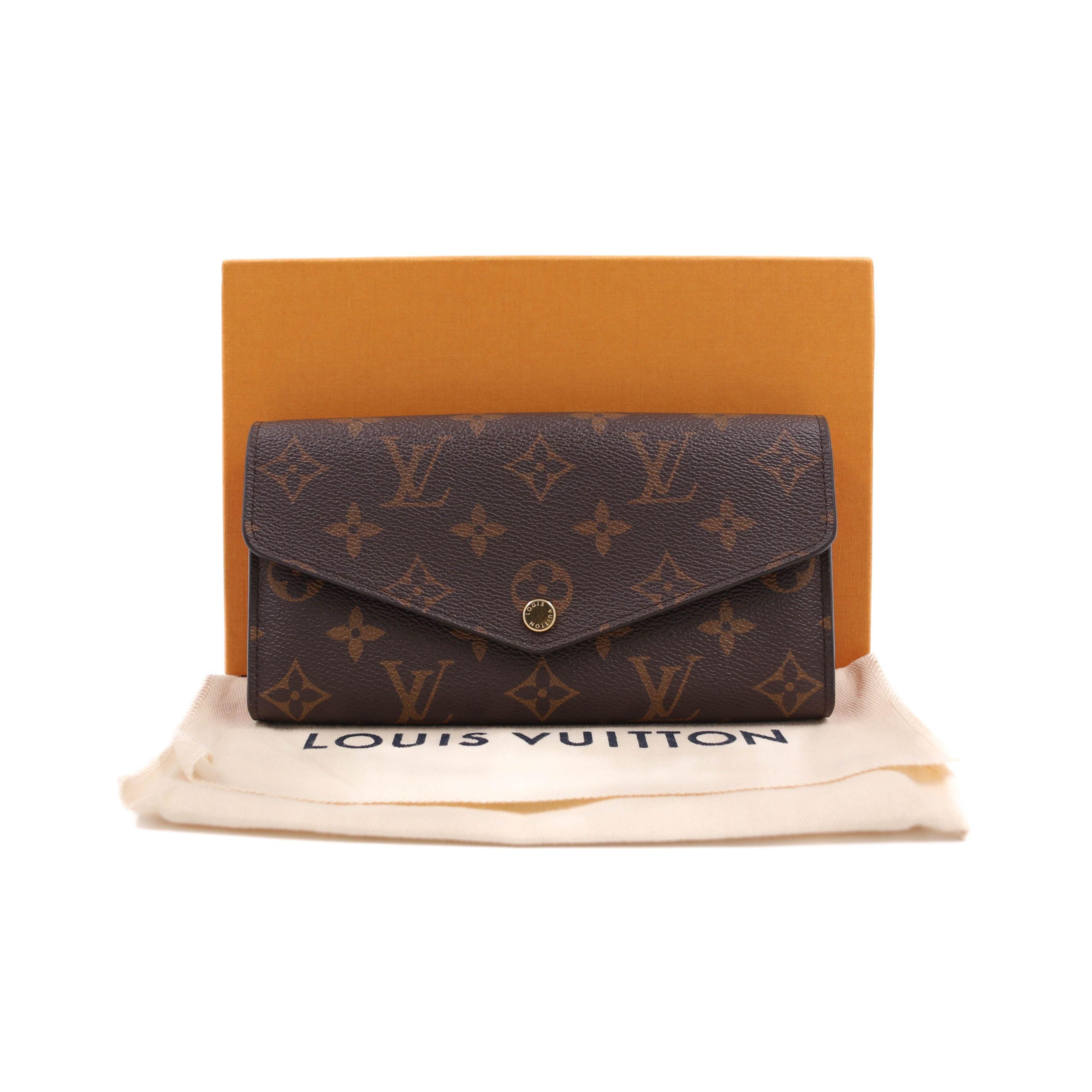 Louis Vuitton 14219 - Sarah Monogram Wallet Coated canvas with cowhide leather trim, and a gold-tone metal button closure