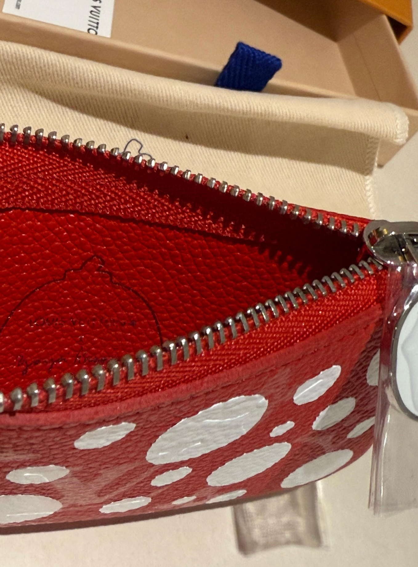 Louis Vuitton x Yayoi Kusama A Red Polka Dot Key Pouch, 2023. The Louis Vuitton Yayoi Kusama Pochette Cle is a stylish pouch designed in a striking red and white color scheme, crafted from Monogram Empreinte leather.