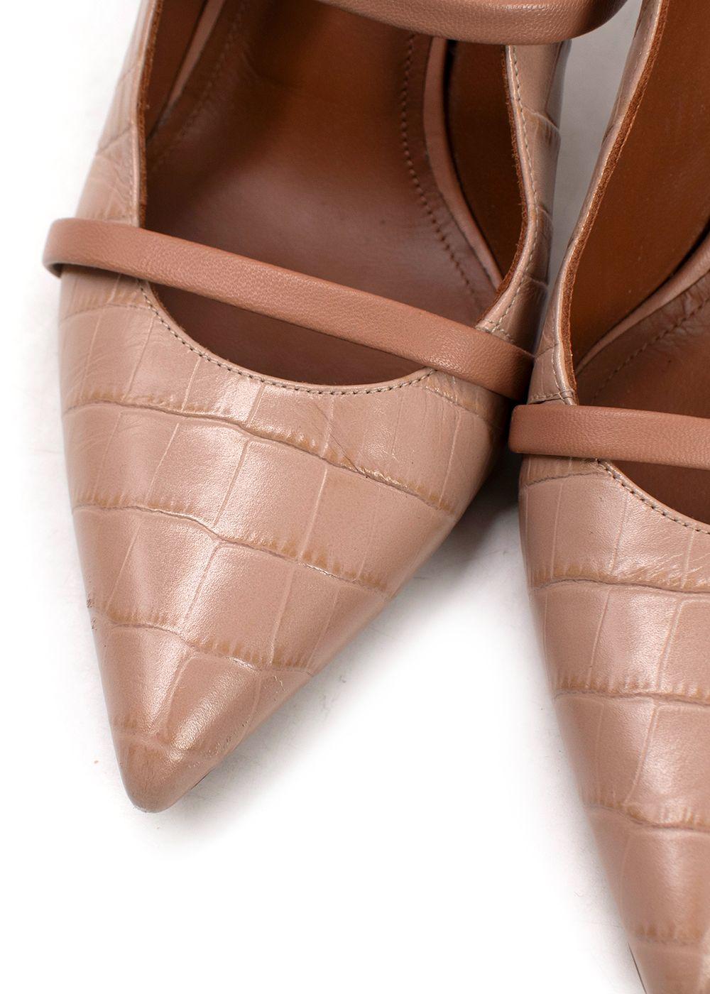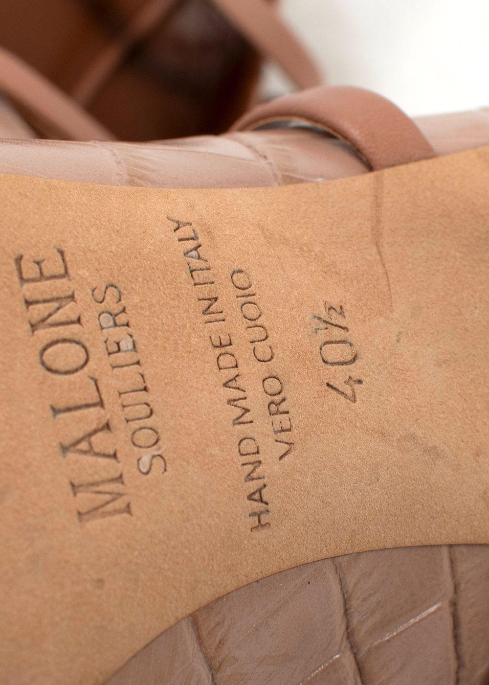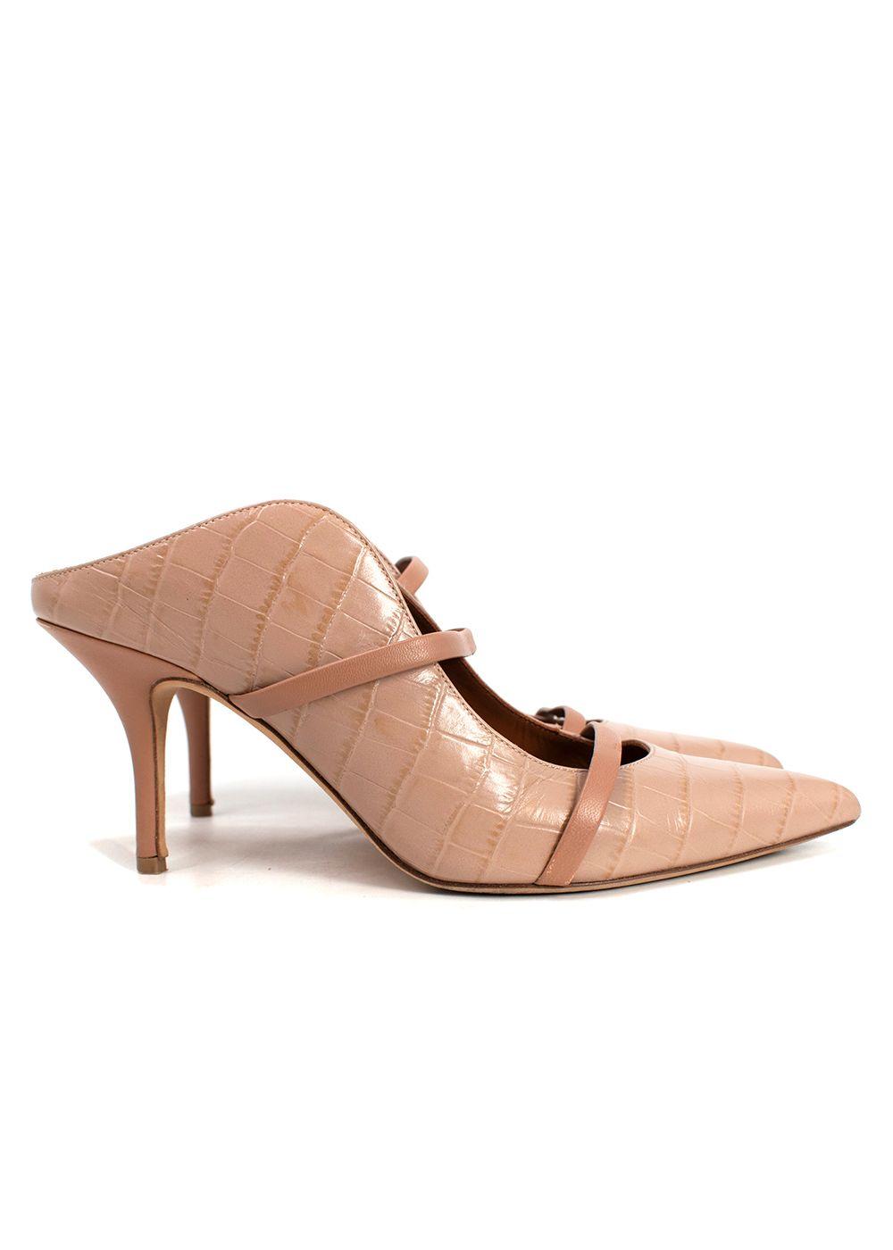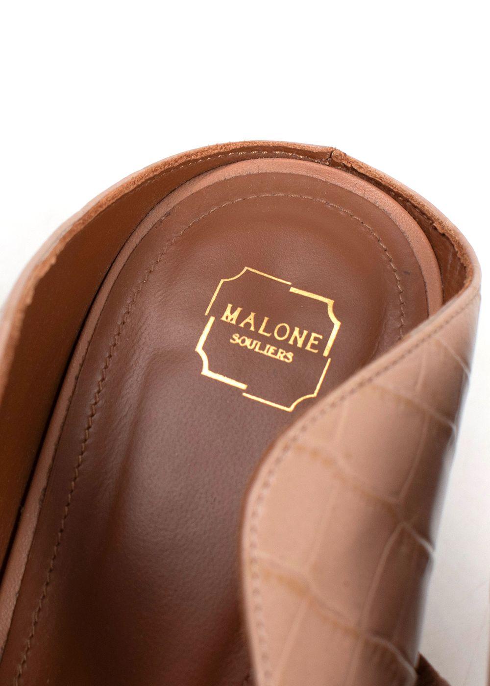 Malone Souliers Beige Croc Embossed Maureen Mules