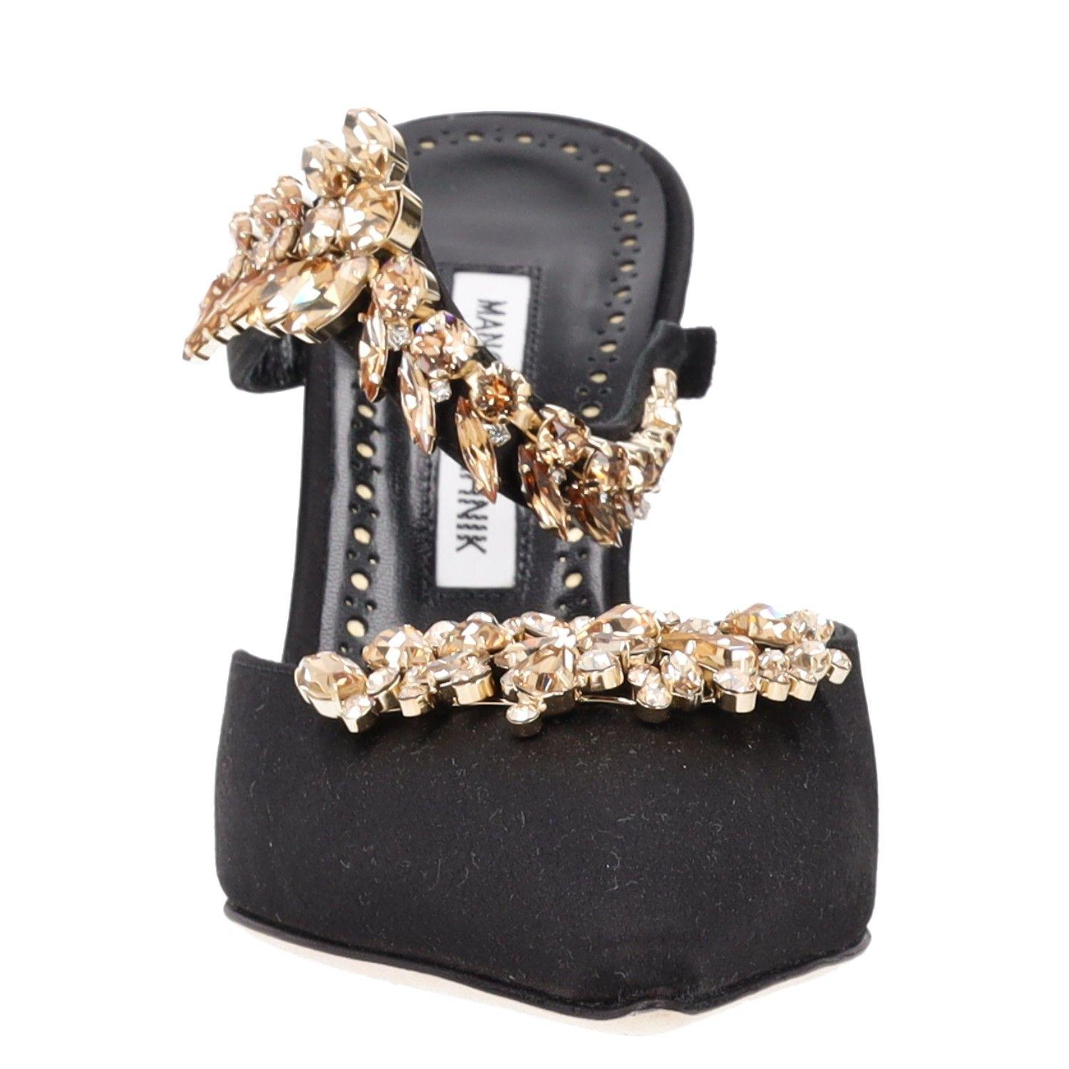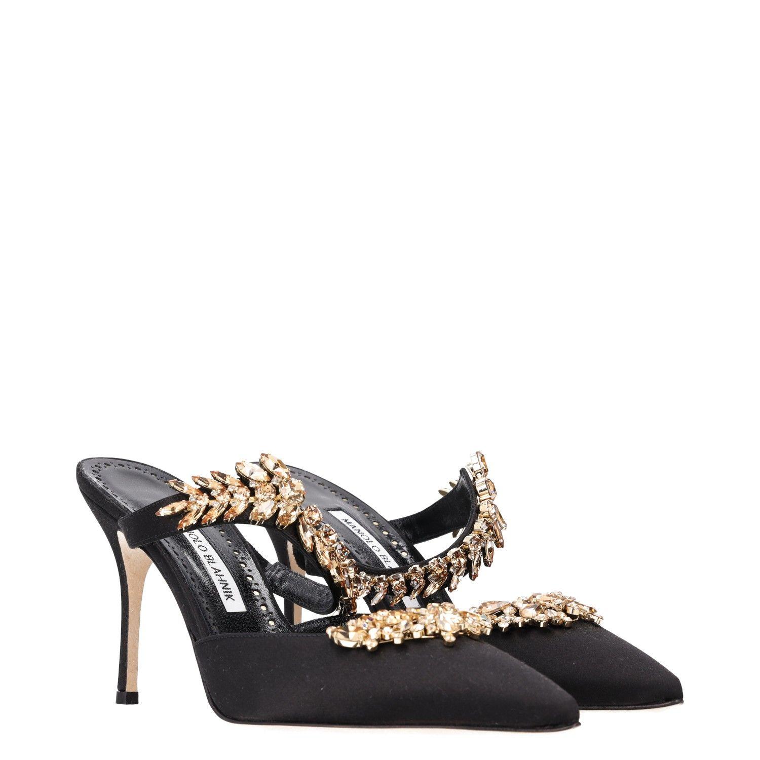 Manolo Blahnik Lurum 90MM Embellished Satin Mules