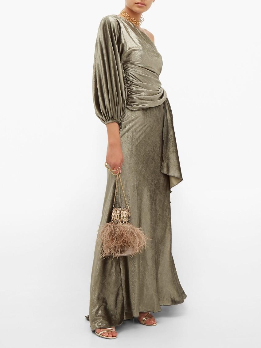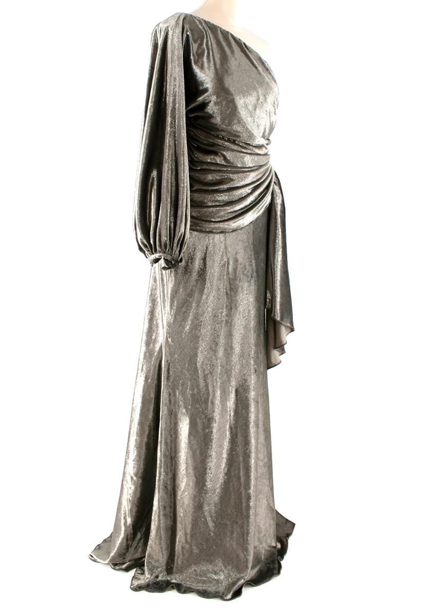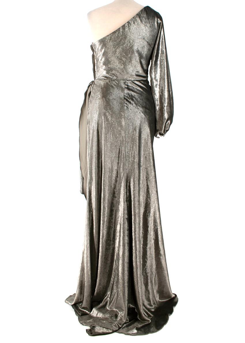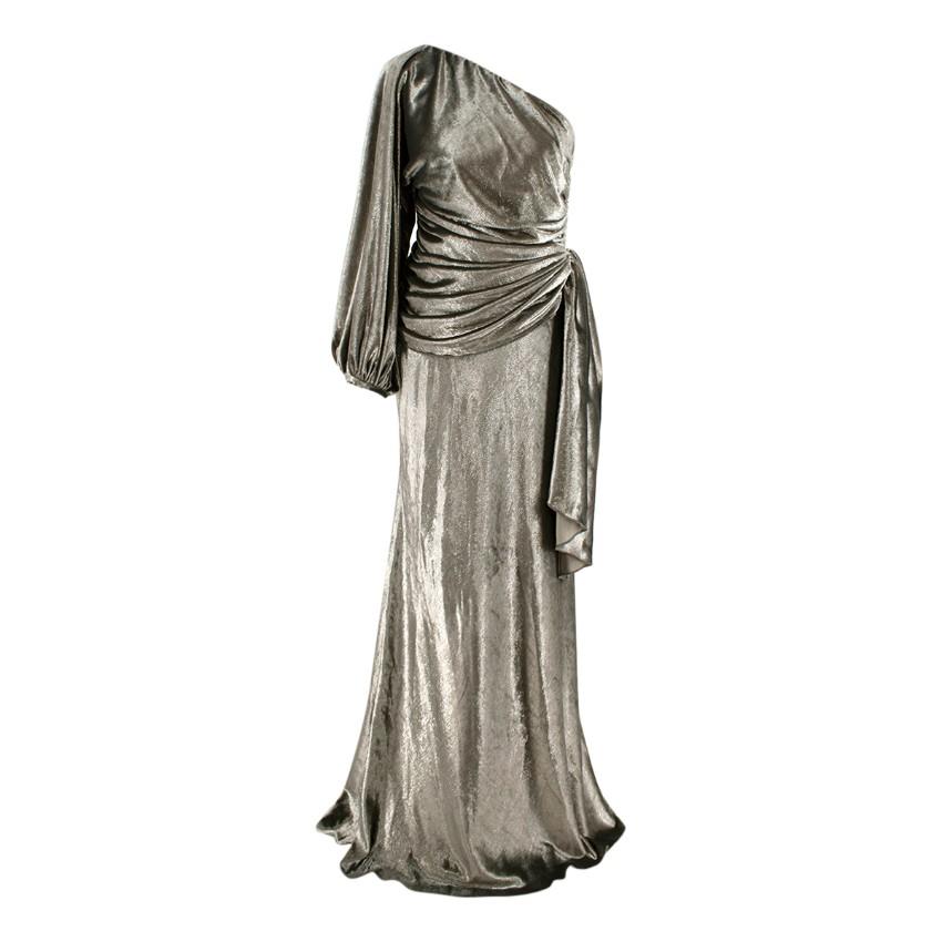 Maria Lucia Hohan Amaris Khaki Lurex Velvet One Shoulder Gown