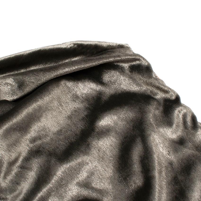 - Heavyweight crushed velvet one-shoulder evening gown reflecting tones of khaki and gunmetal