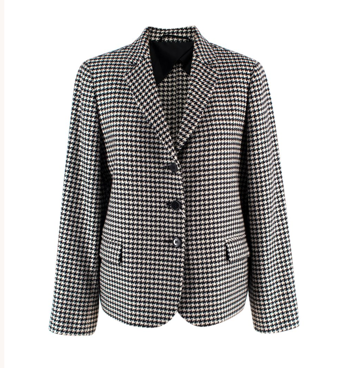 MaxMara Houndstooth Single Breasted Wool Blazer
