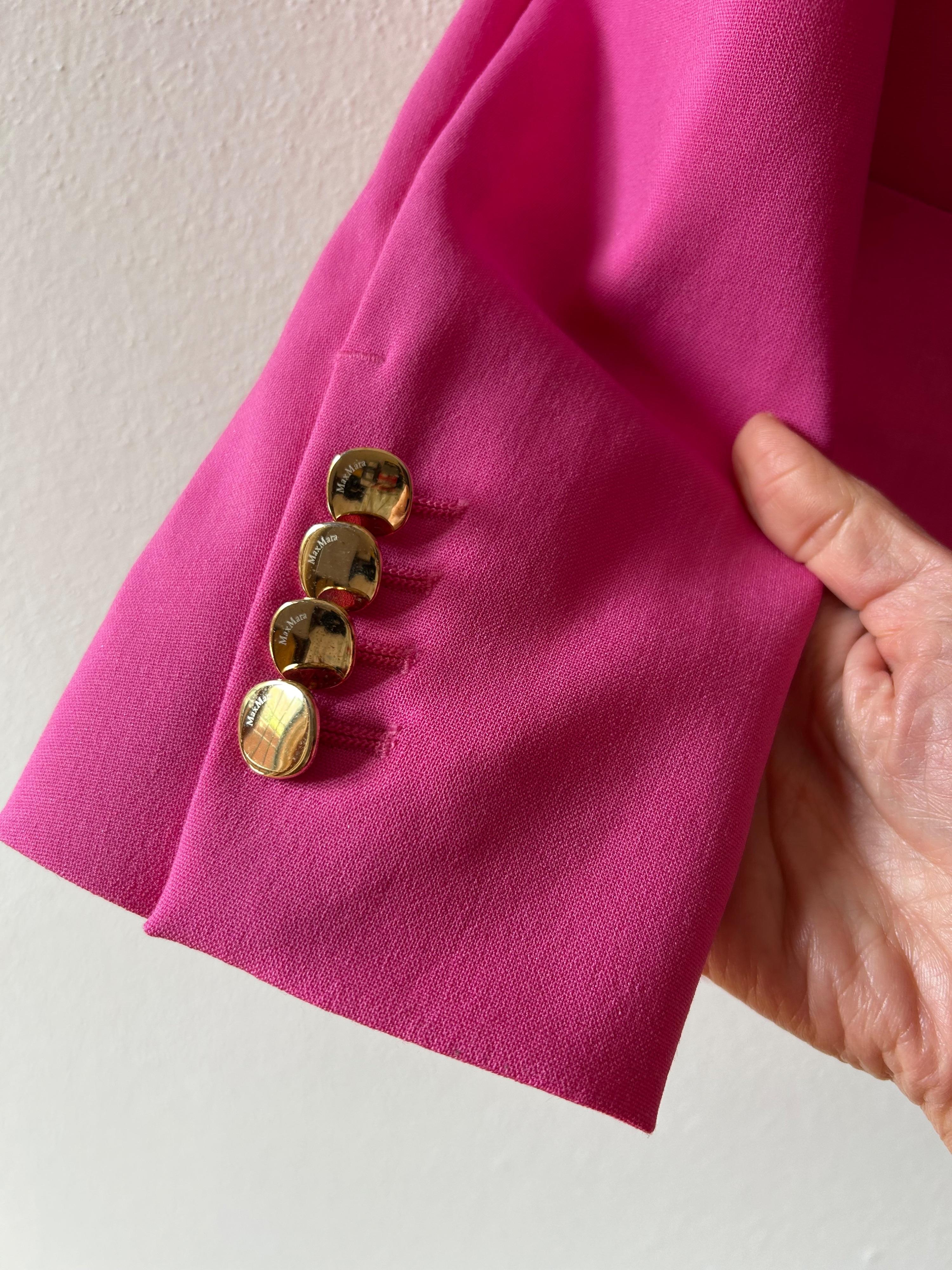 MaxMara Pink Double Breasted Mohair Blend Wool Blazer