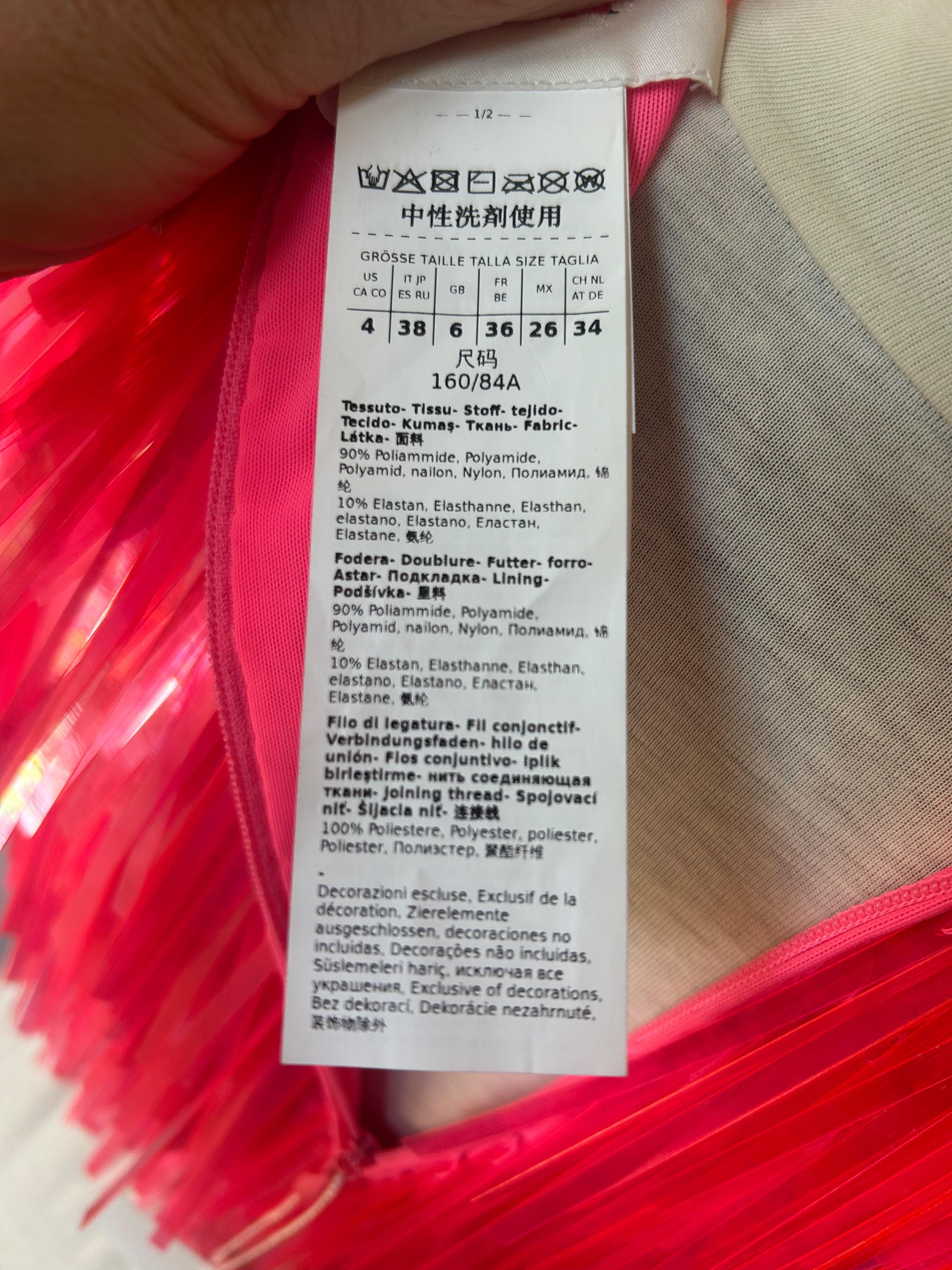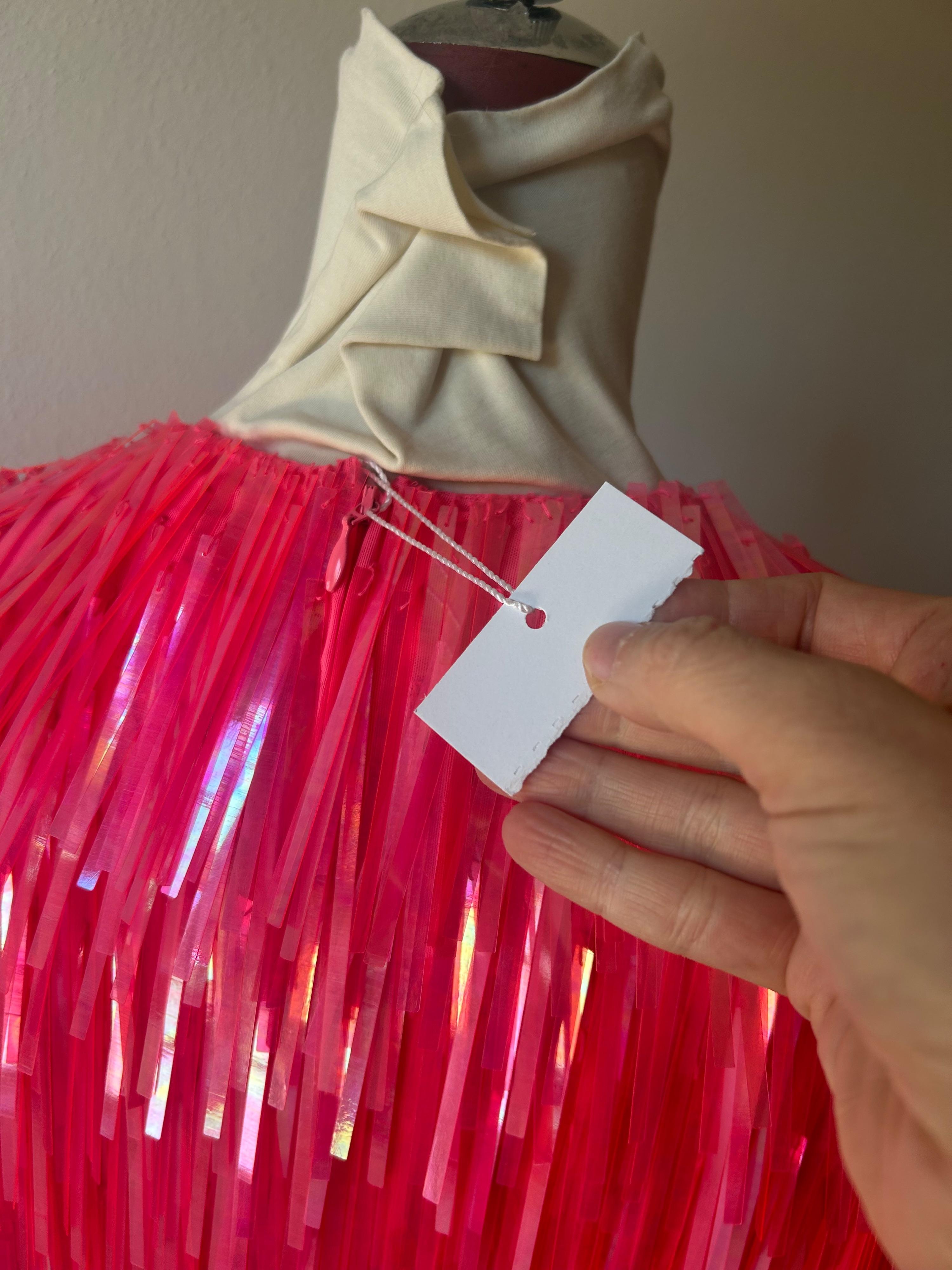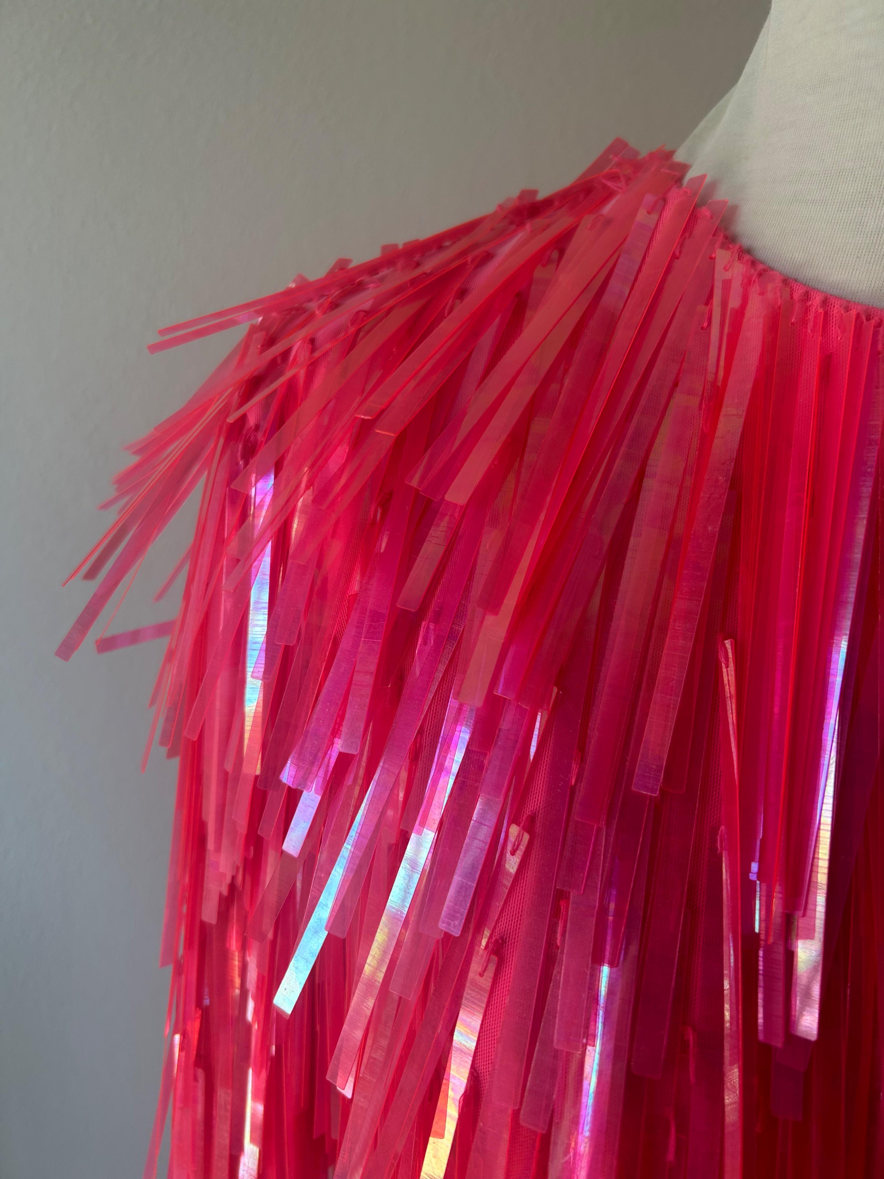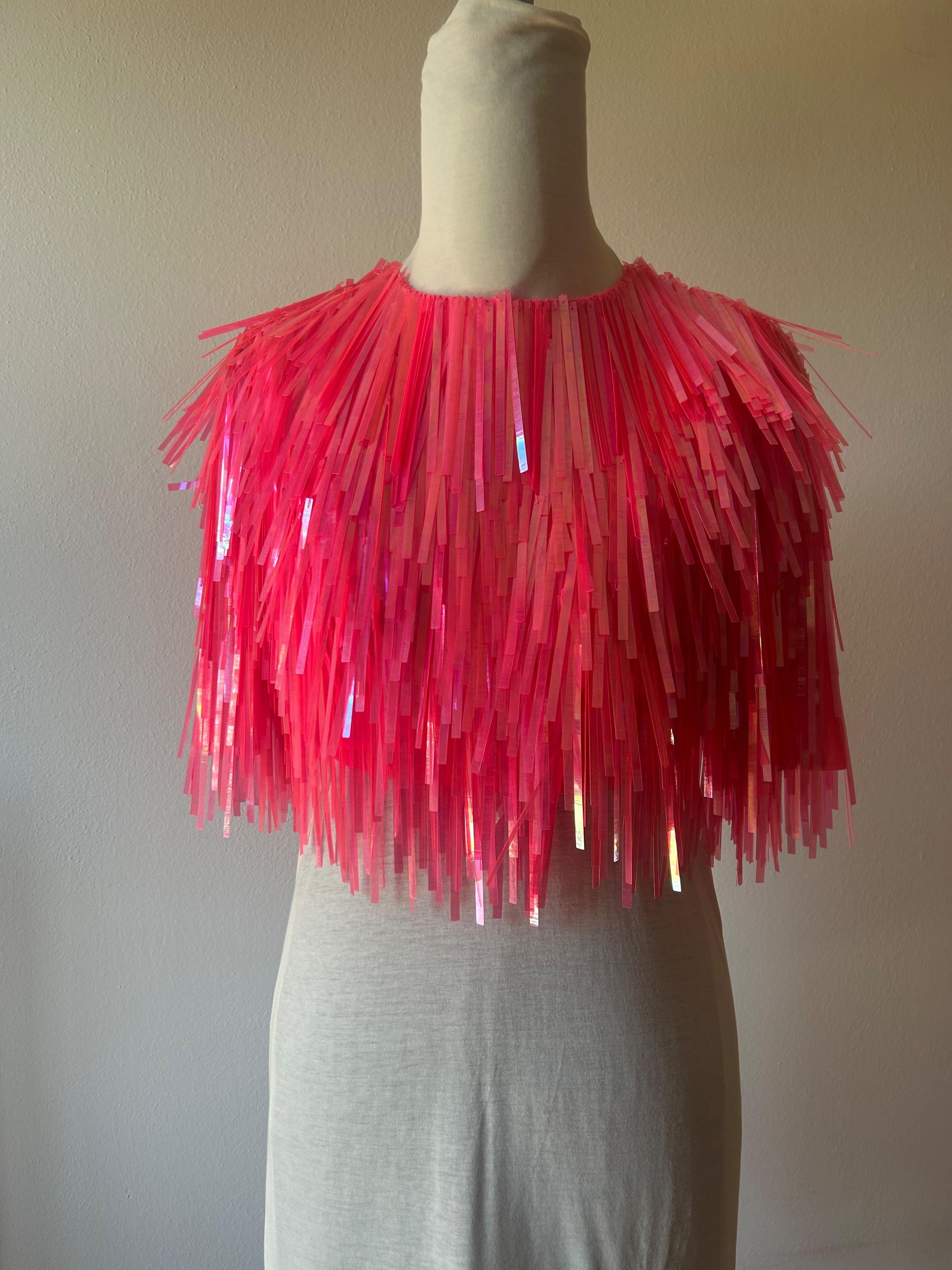 statement crop top with long sequins in fluorescent pink colour.