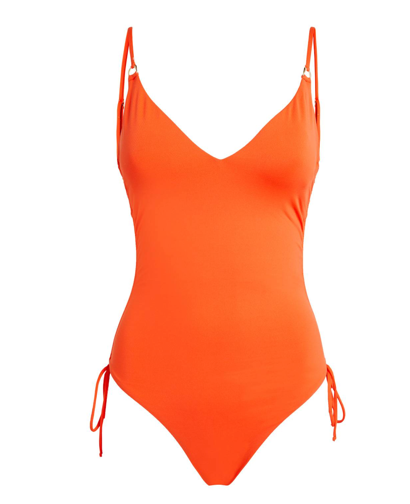 Sleek and contemporary, the Havana Swimsuit is now available in a joyful ‘Apricot’ hue for High Summer 2023. Offering SPF 50+ protection, this style is crafted from premium Italian swim fabric. Sporty, yet sophisticated, it features a a ‘V’ neckline, scooped back and slim straps with signature gold tone trims. Ruched sides are adjustable, allowing you to create a high or low leg shape. Embrace the vibrant shade by wearing beneath the Emily Dress as you stroll down to the beach for a relaxing day soaking up the sun.