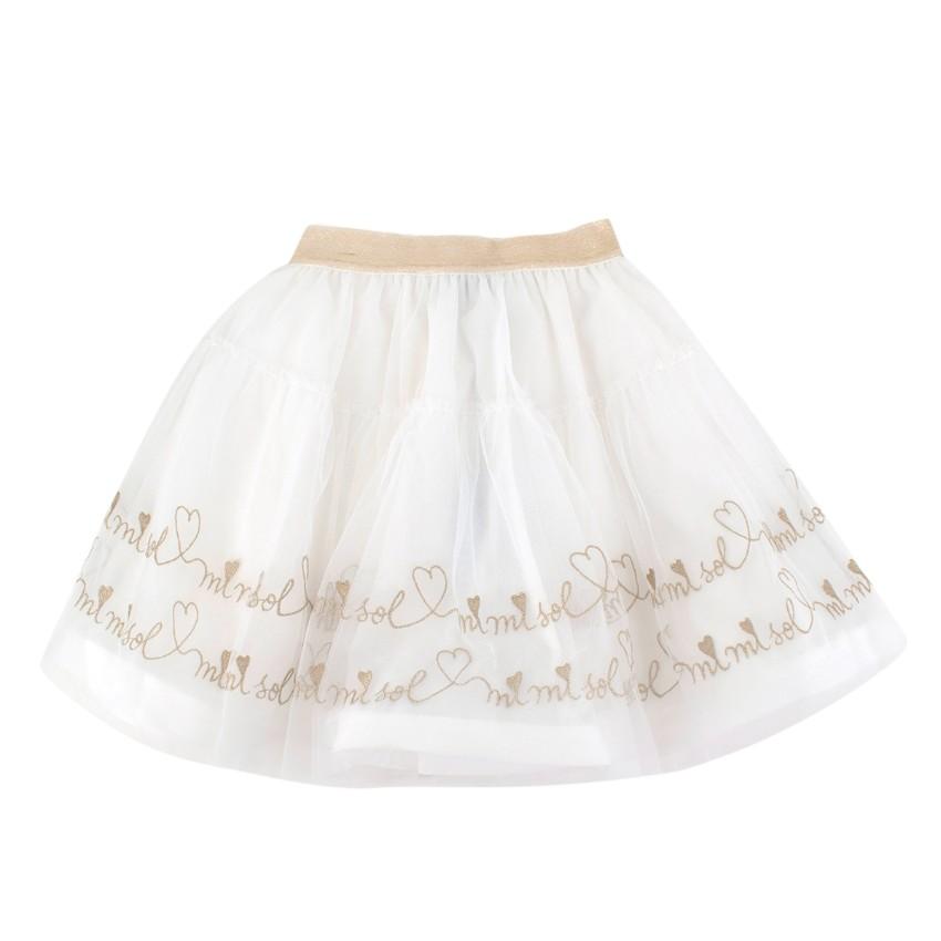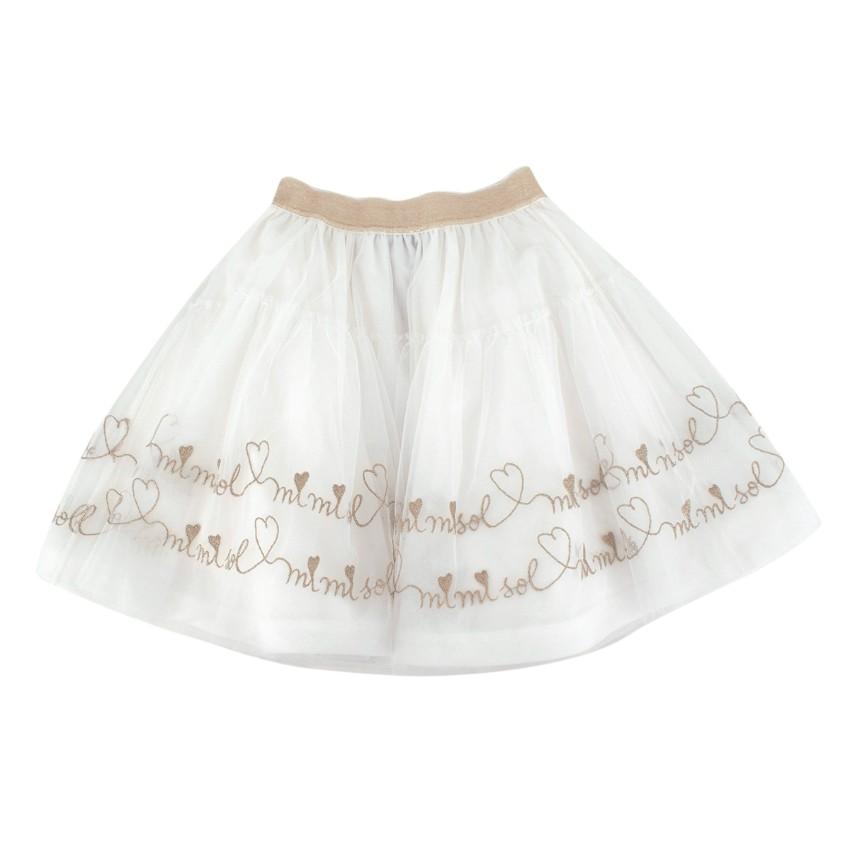 Mi Mi Sol White & Gold Embroidered Tulle Skirt