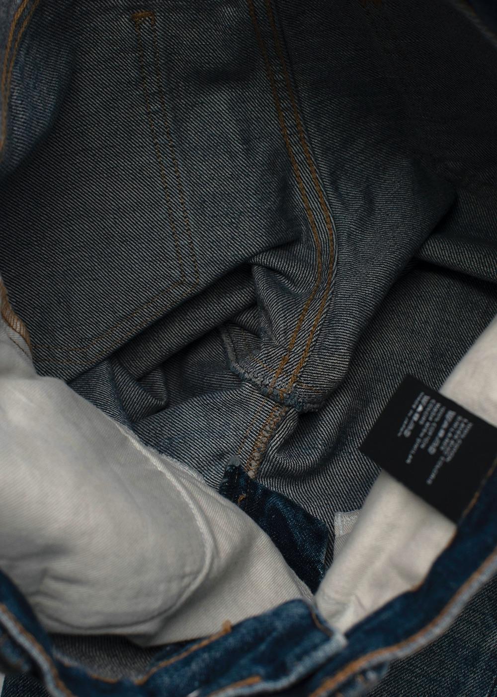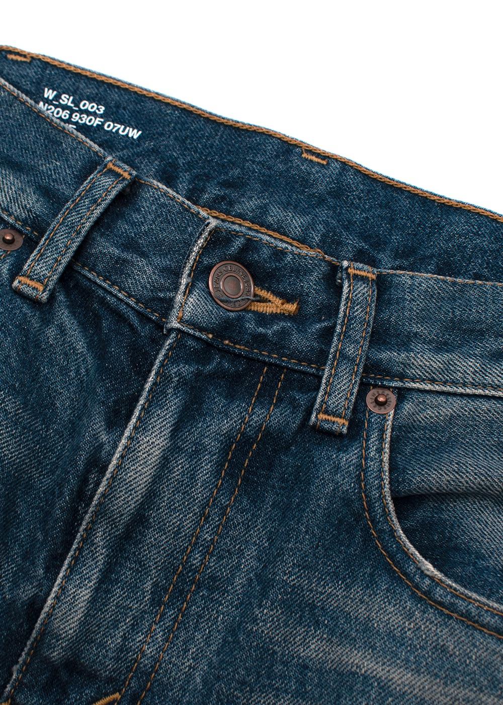 - 'Clear sky' mid-wash with subtle distressing on the knees and whiskering on the top of the lef