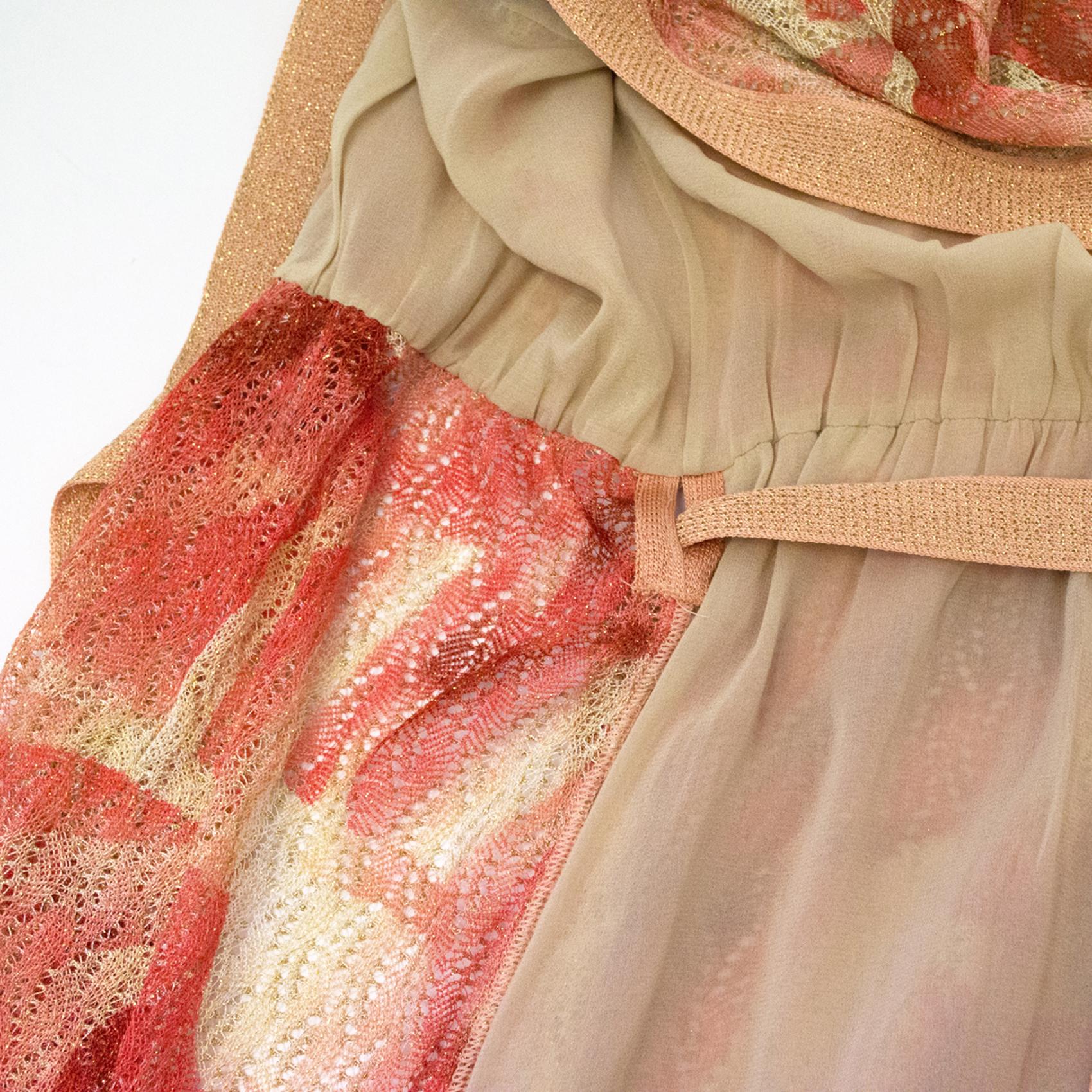 Missoni Peach and Gold Lame Knee Length Wrap Dress