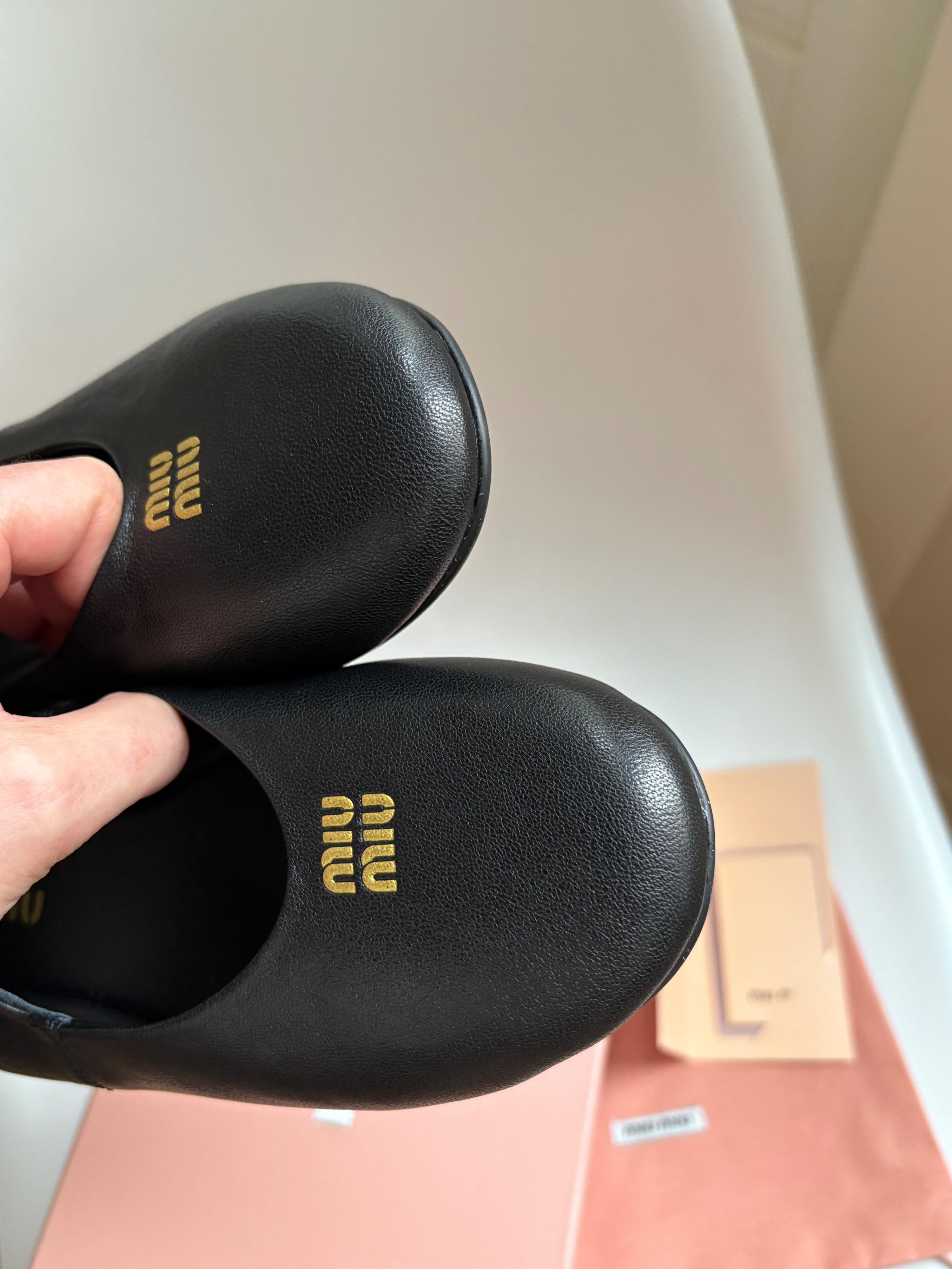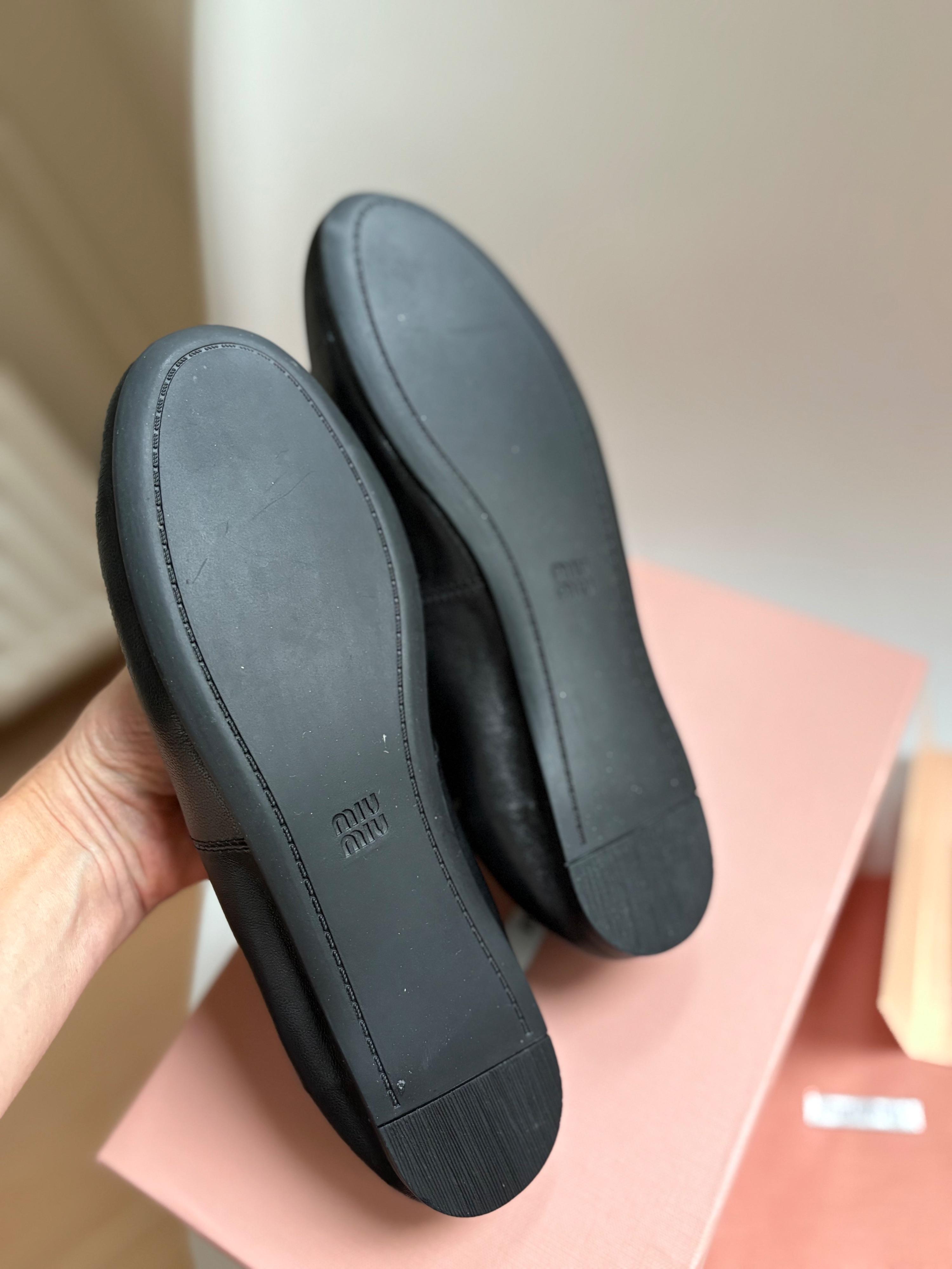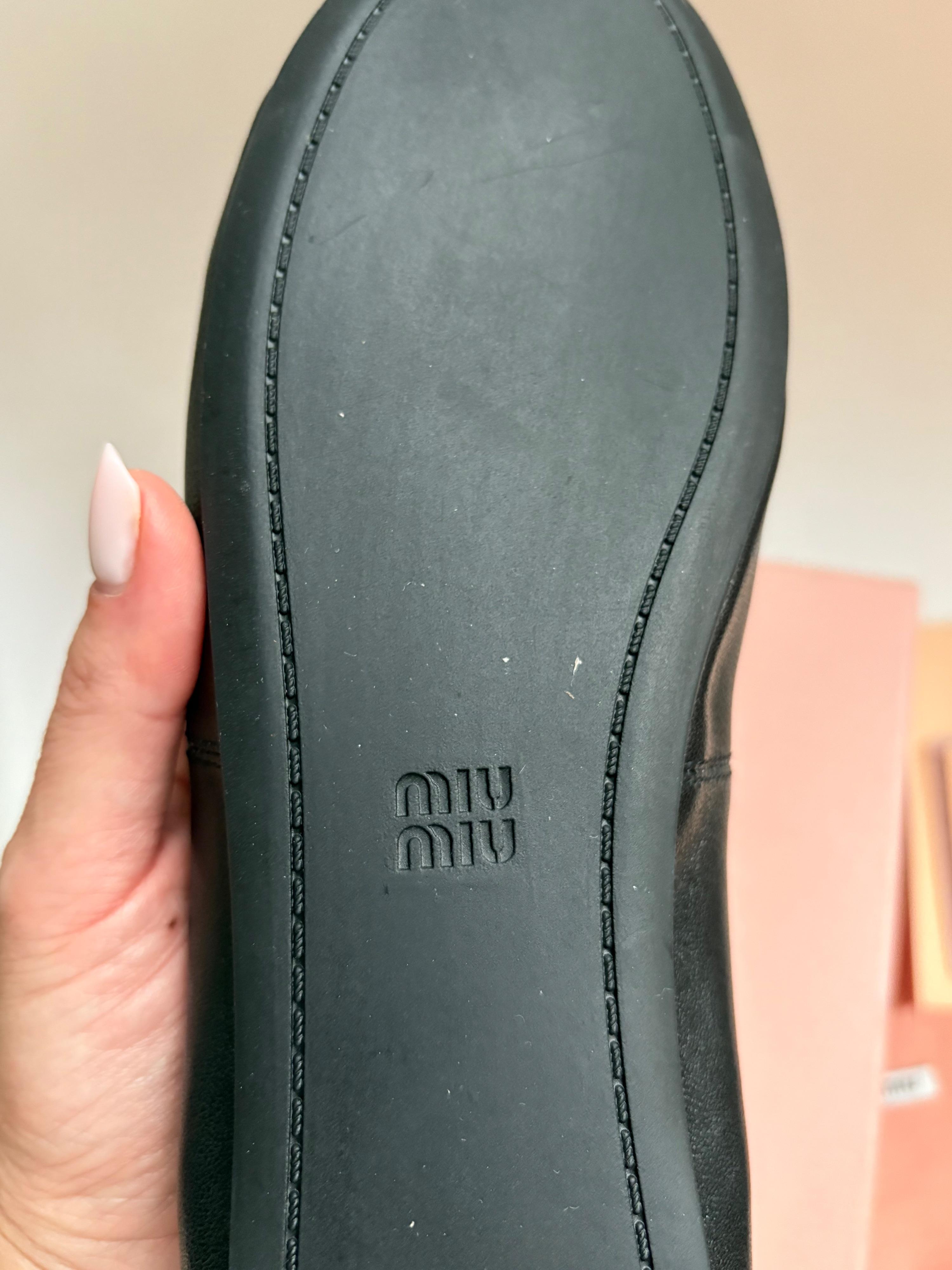 Miu Miu Black Leather Ballet Flats In Stores Now