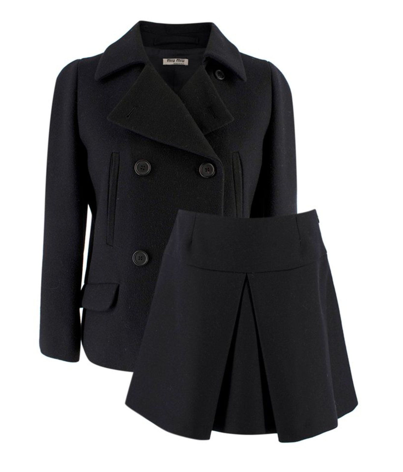 Miu Miu Black Wool Blend Double Breasted Jacket & A-line Mini Skirt