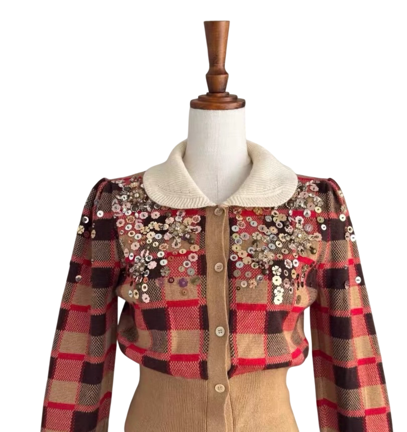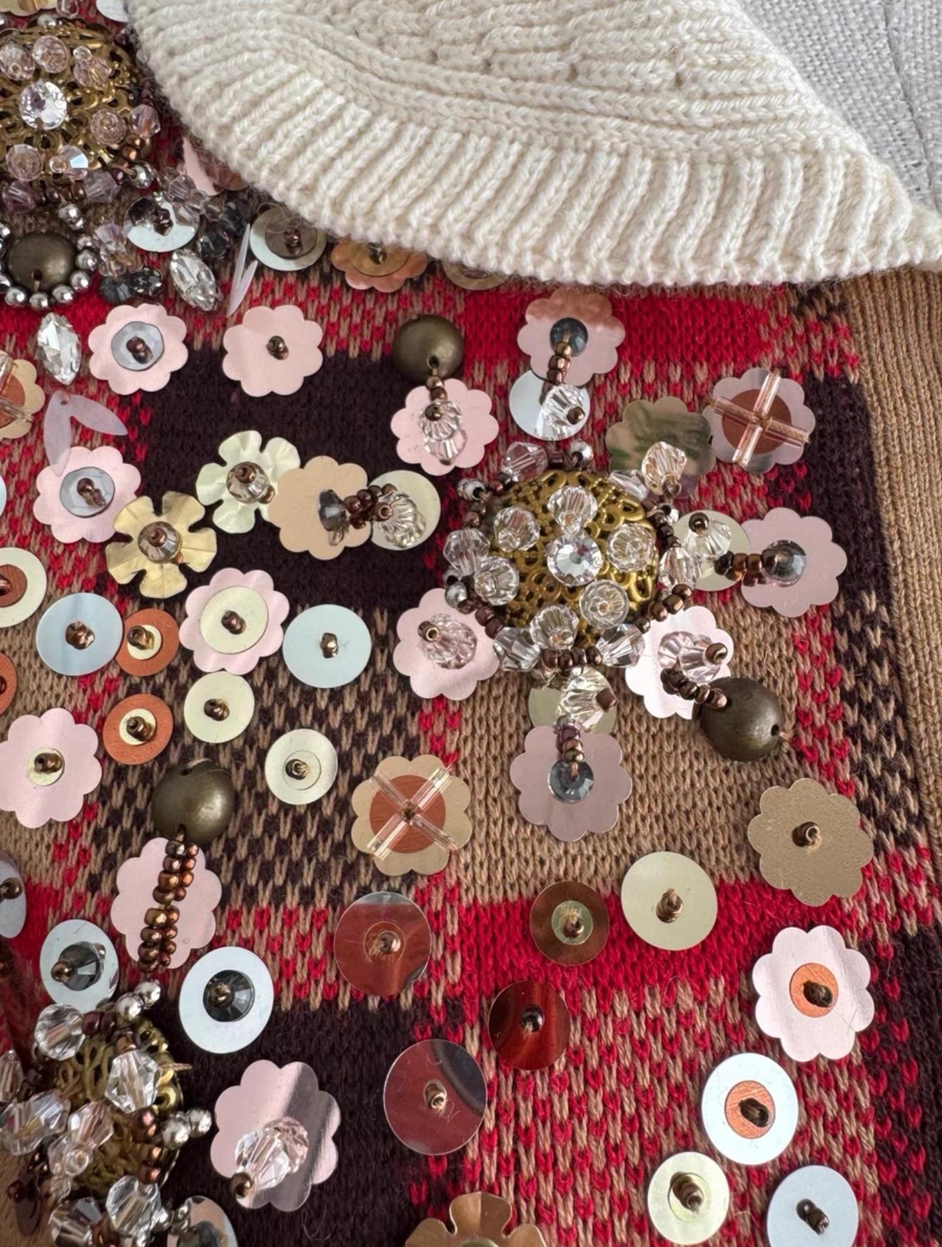 Miu Miu Embellished Tartan Knit Cardigan - Multicolor wool/hair blend with Embellished detailing.