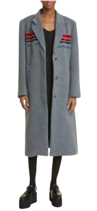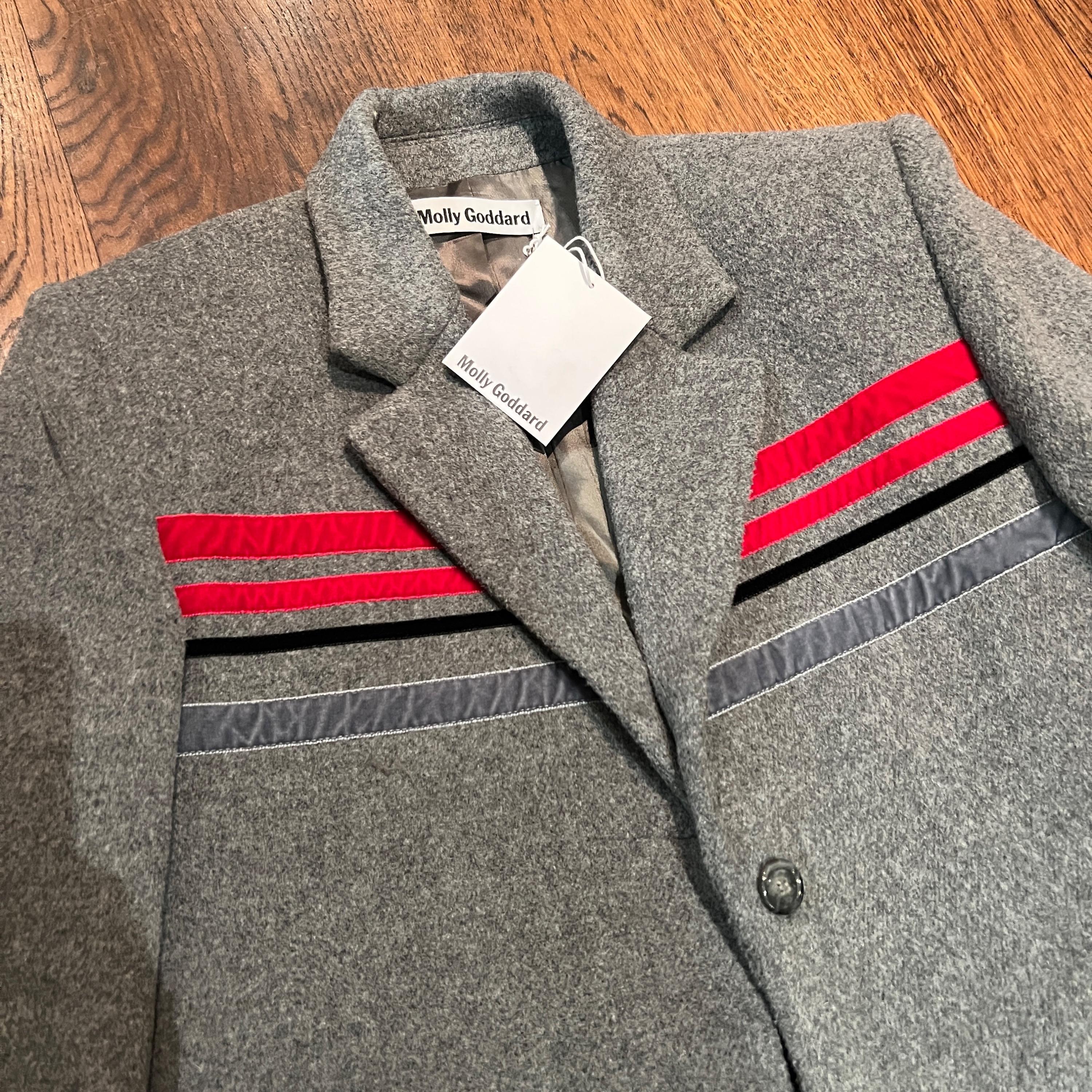 Molly Goddard Grey Ribbon Stripe Wool Coat