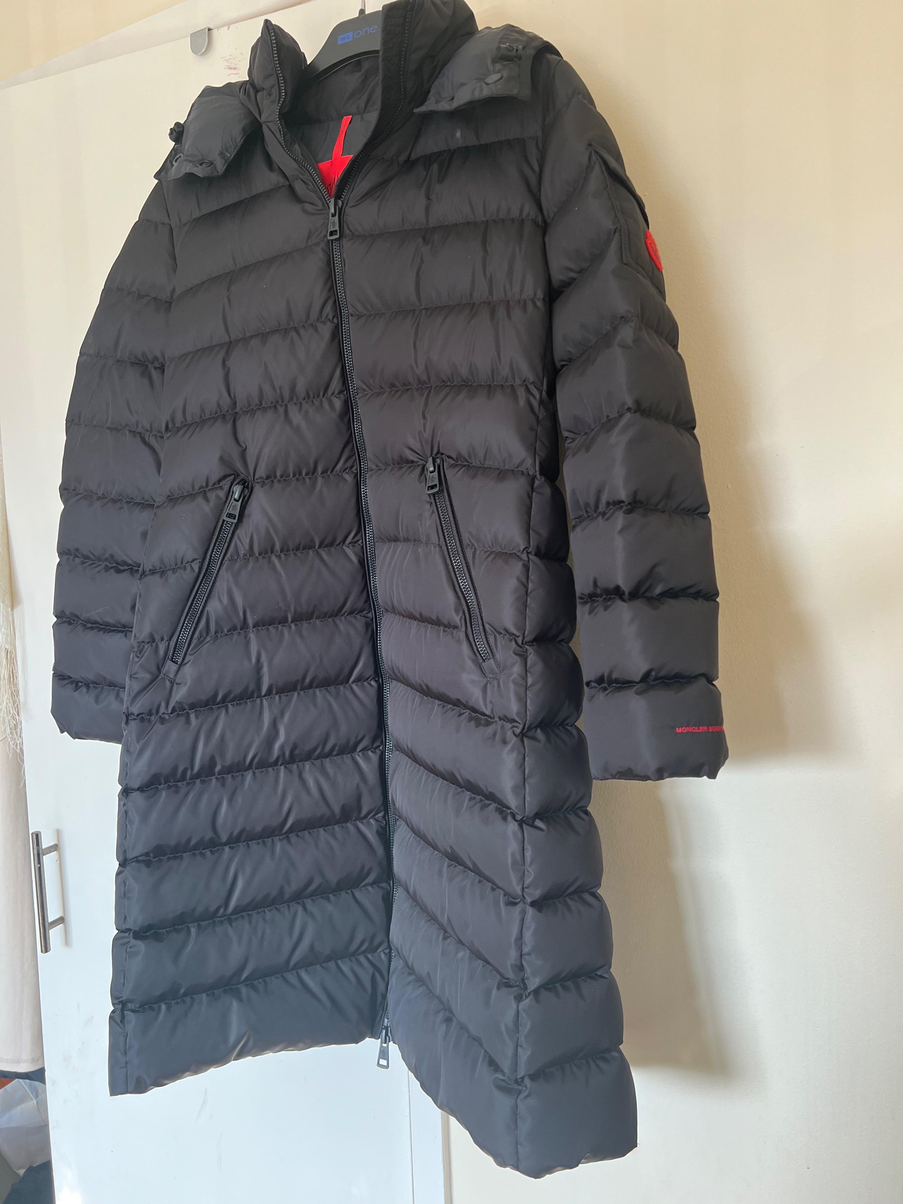 Hardly been worn authentic Moncler Lemenez Guibotto Long Coat Size 8-10UK. Perfect condition like new. Length 85cm, pit to pit 50cm.