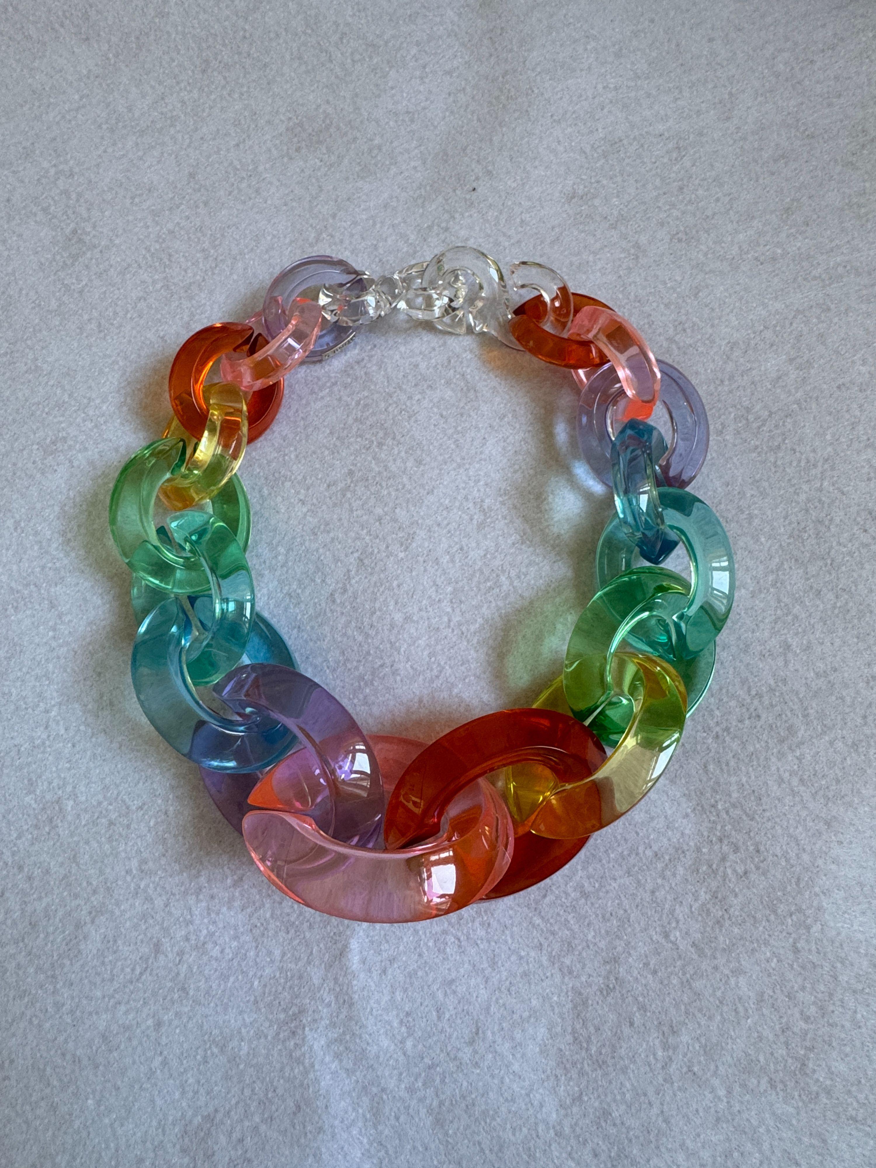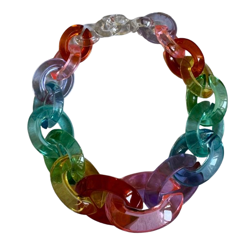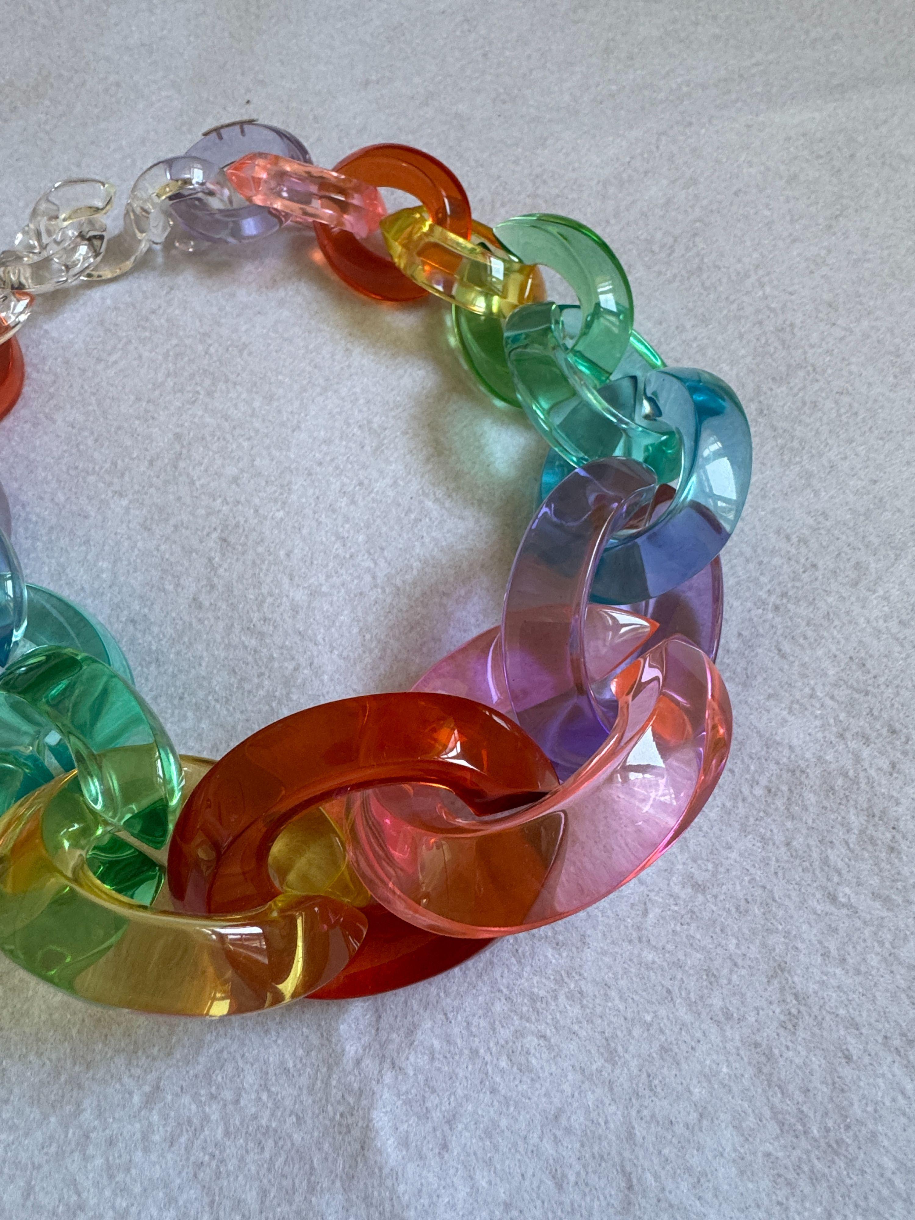 Multi colour chain necklace from Monies. Acrylic. Estmimated lengt 18 inch.