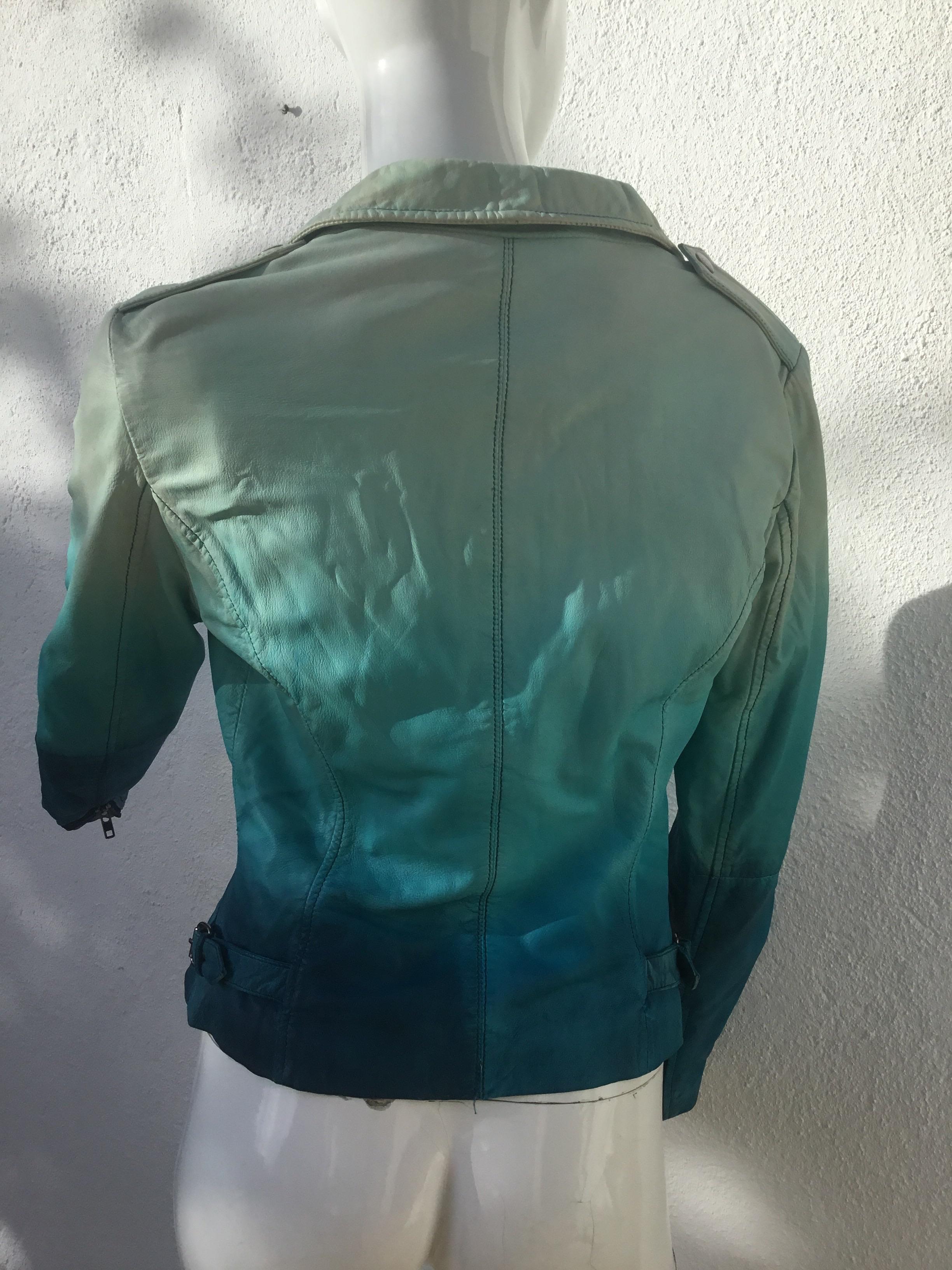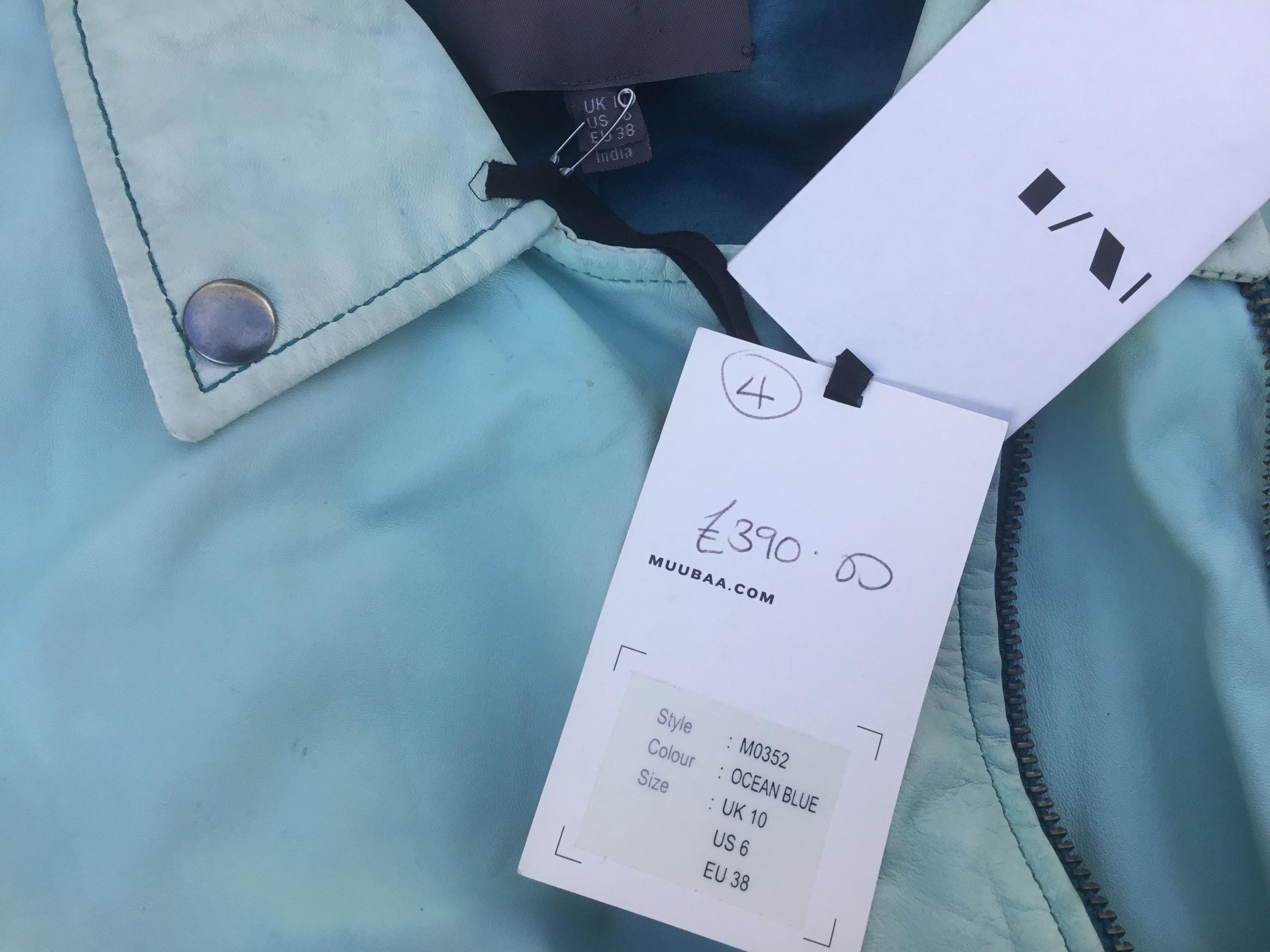 A stunning, very soft fine leather biker style jacket by Mumbai in a U.K. size 10.