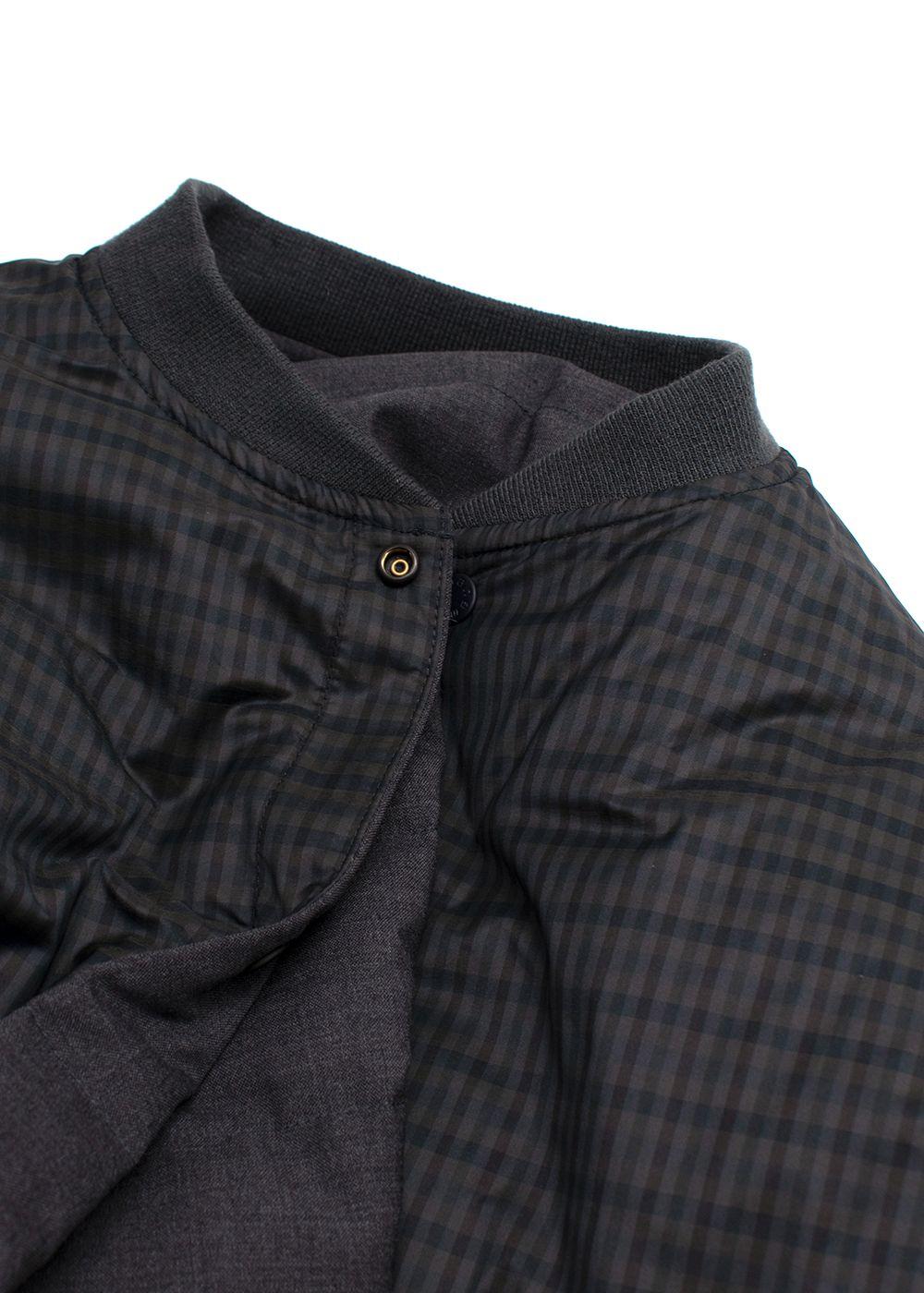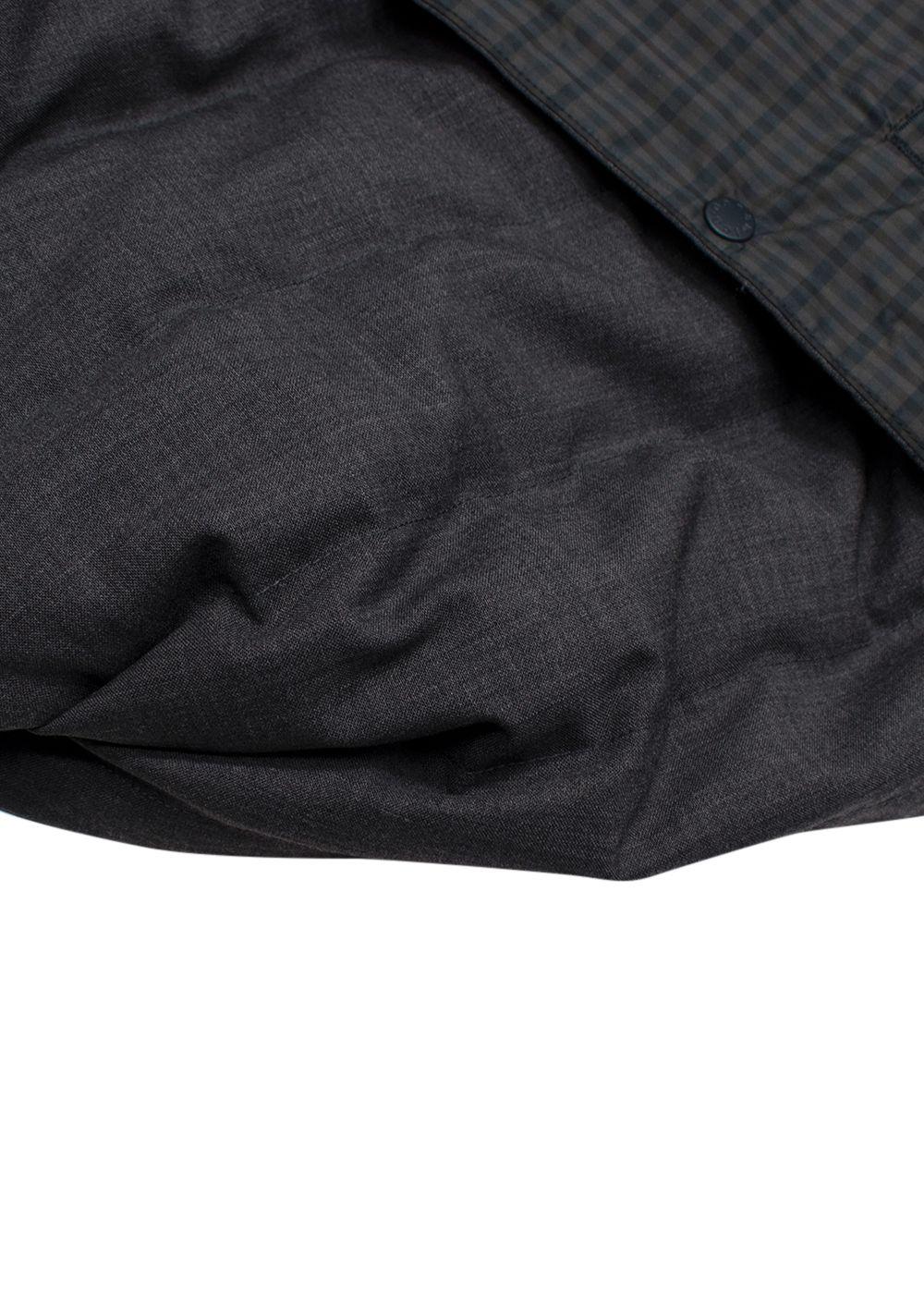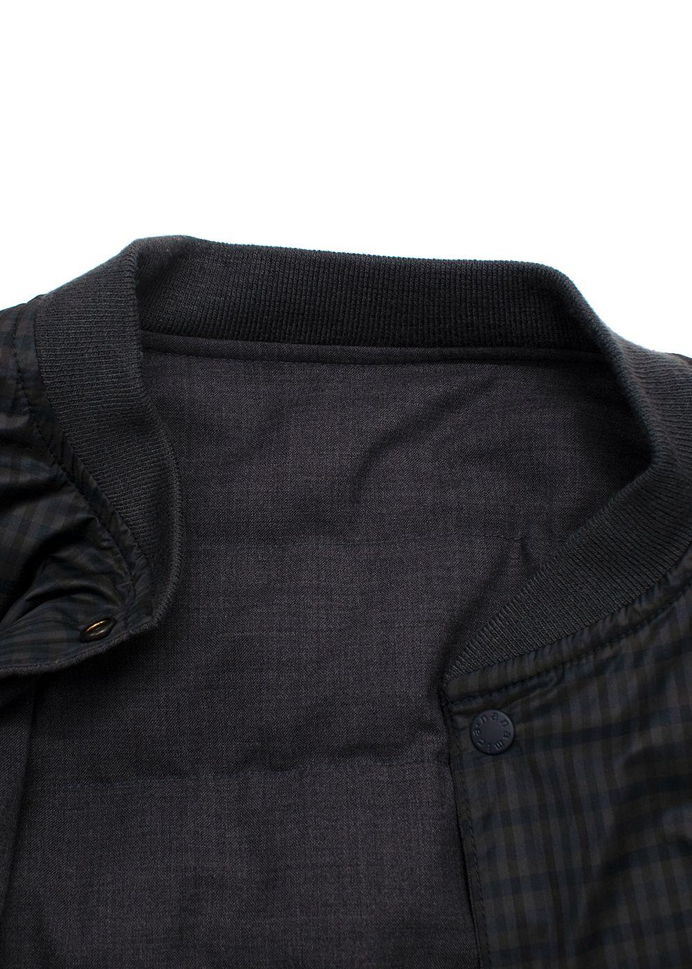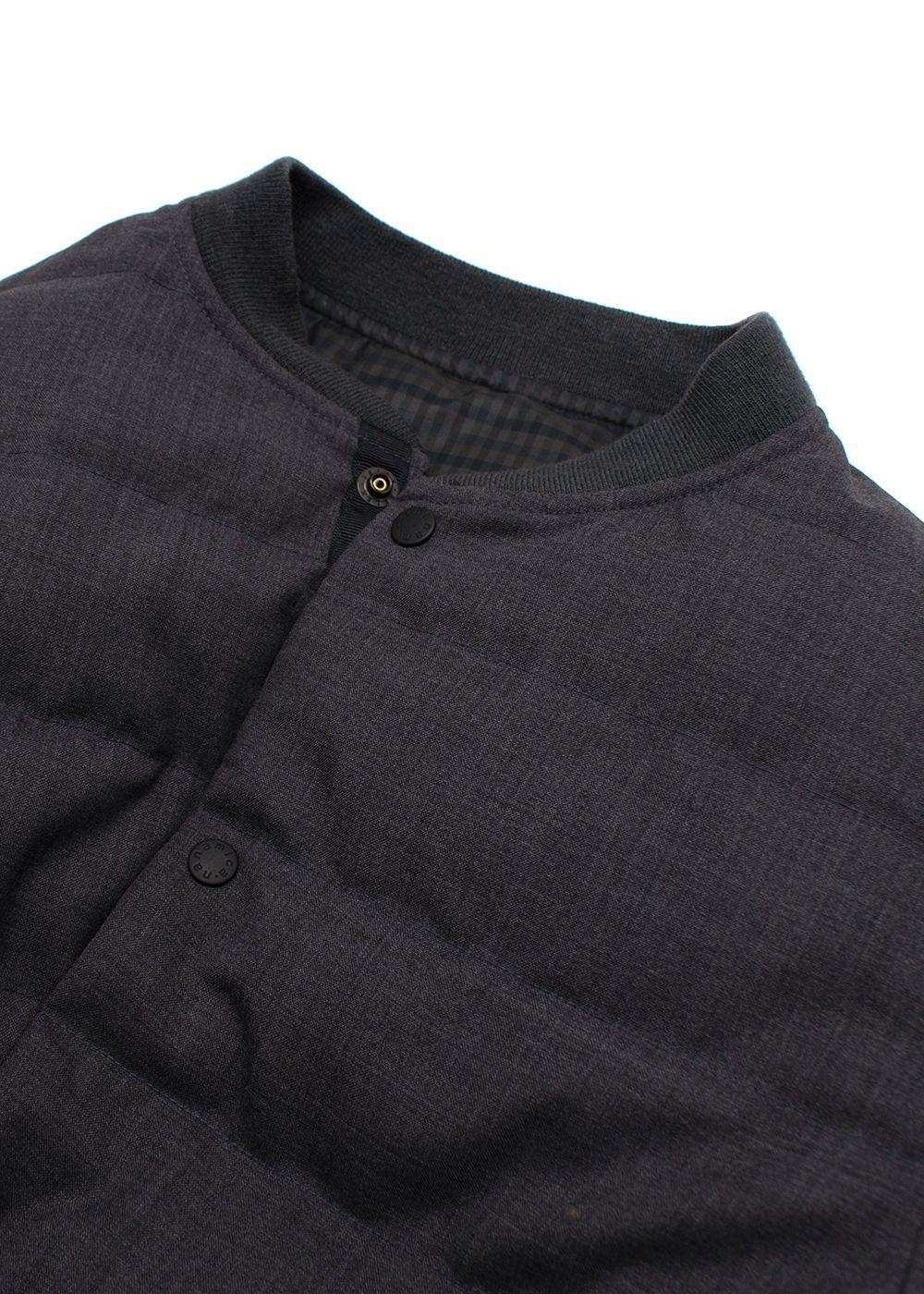 one side shows a dark quilted/padded look, the other a flatter, more matte shell — consistent with nanamica’s reversible design language. The tag shows “nanamica for SLOWEAR,” a collaboration or distribution under SLOWEAR.