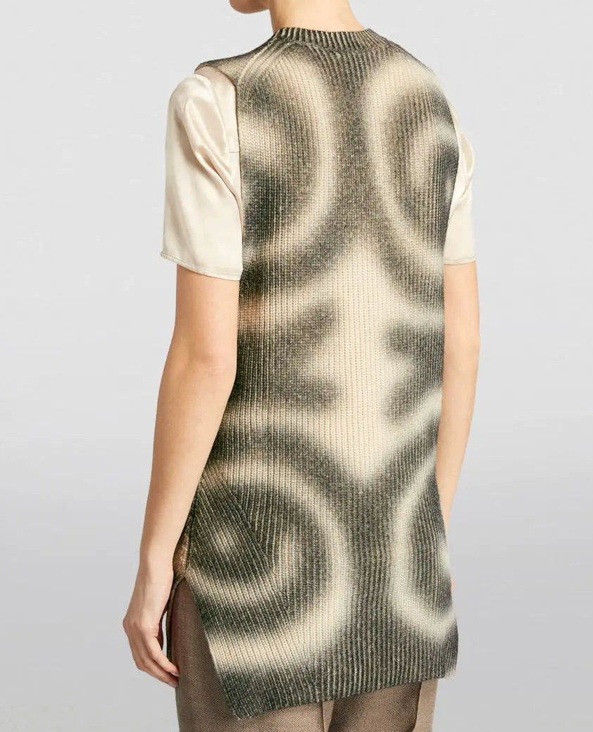 The reign of the sweater vest continues, which is something Nanushka welcomes with open arms in its Spring/Summer 2024 collection. The Leela iteration is rendered to an oversized silhouette - a preference of the Budapest-based label's contemporary disposition - to fully showcase the hypnotic spiral print that adorns its sumptuous wool-cashmere knit.