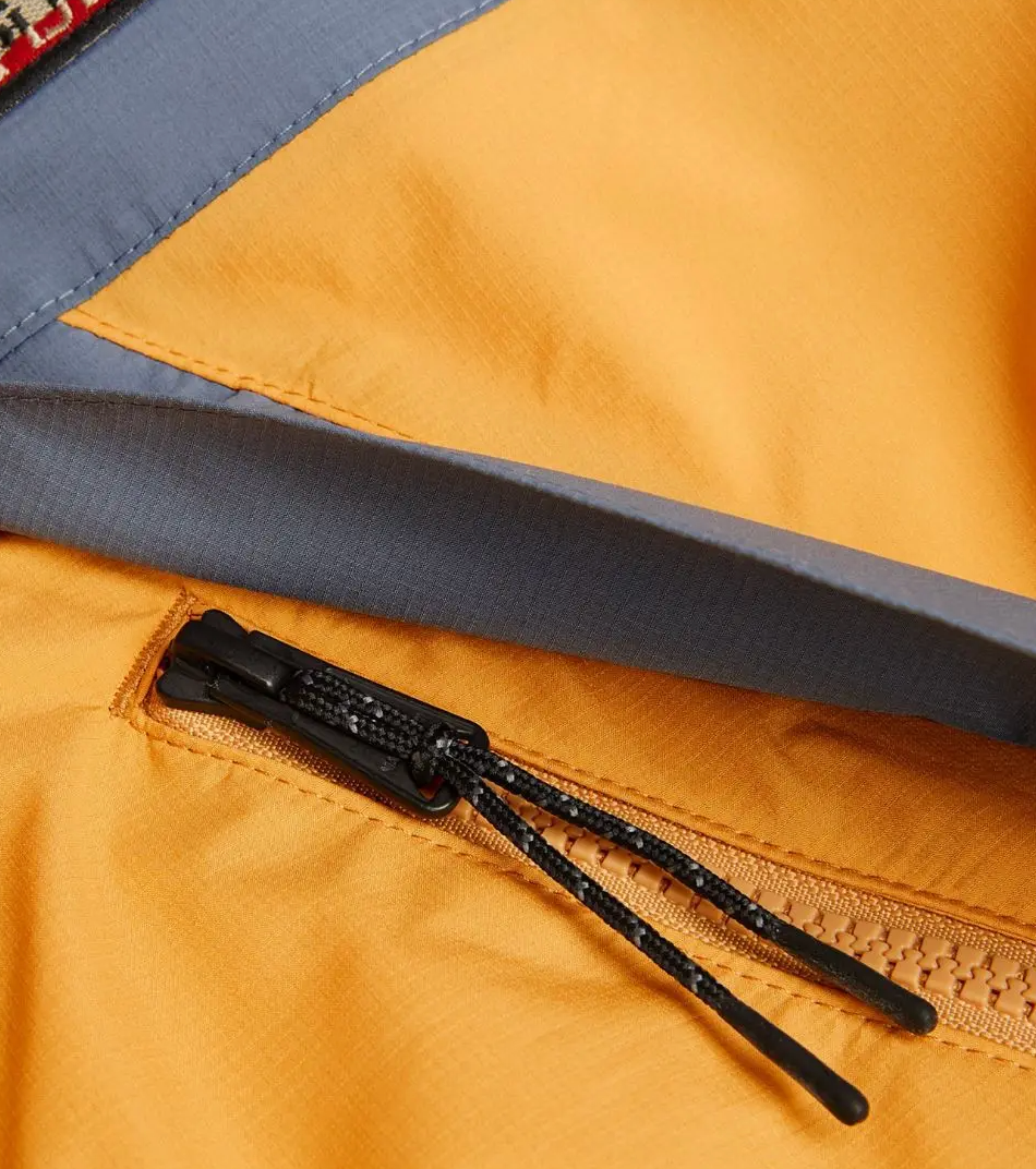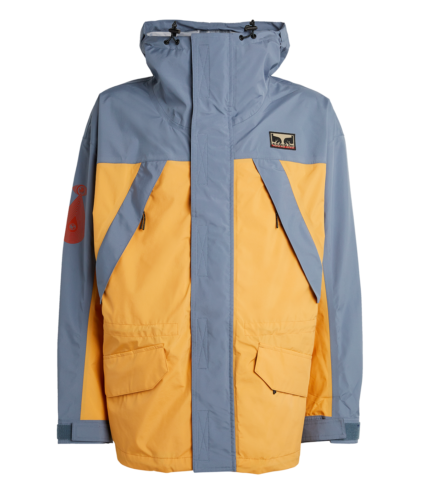 The Napapijri x Obey Epoch Shell is made of recycled, multi-layer nylon ripstop. It features taped seams, adjustable hood, cuffs and waist, and a two-way zip with hook-and-loop fastening. With plastic eyelets for breathability and pre-shaped sleeves to increase comfort and ease of movement, it is finished with an exclusive graphic print and a patch with the two brands’ logos.