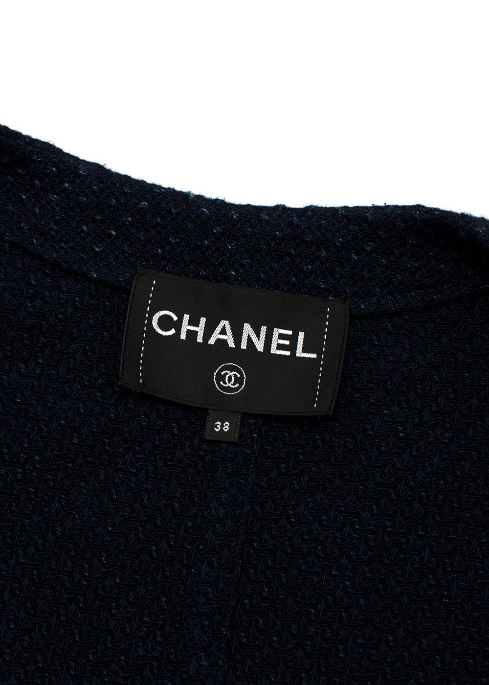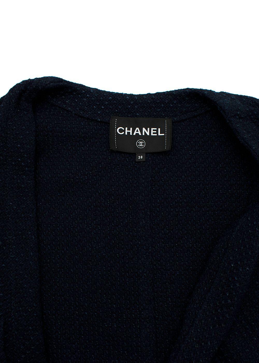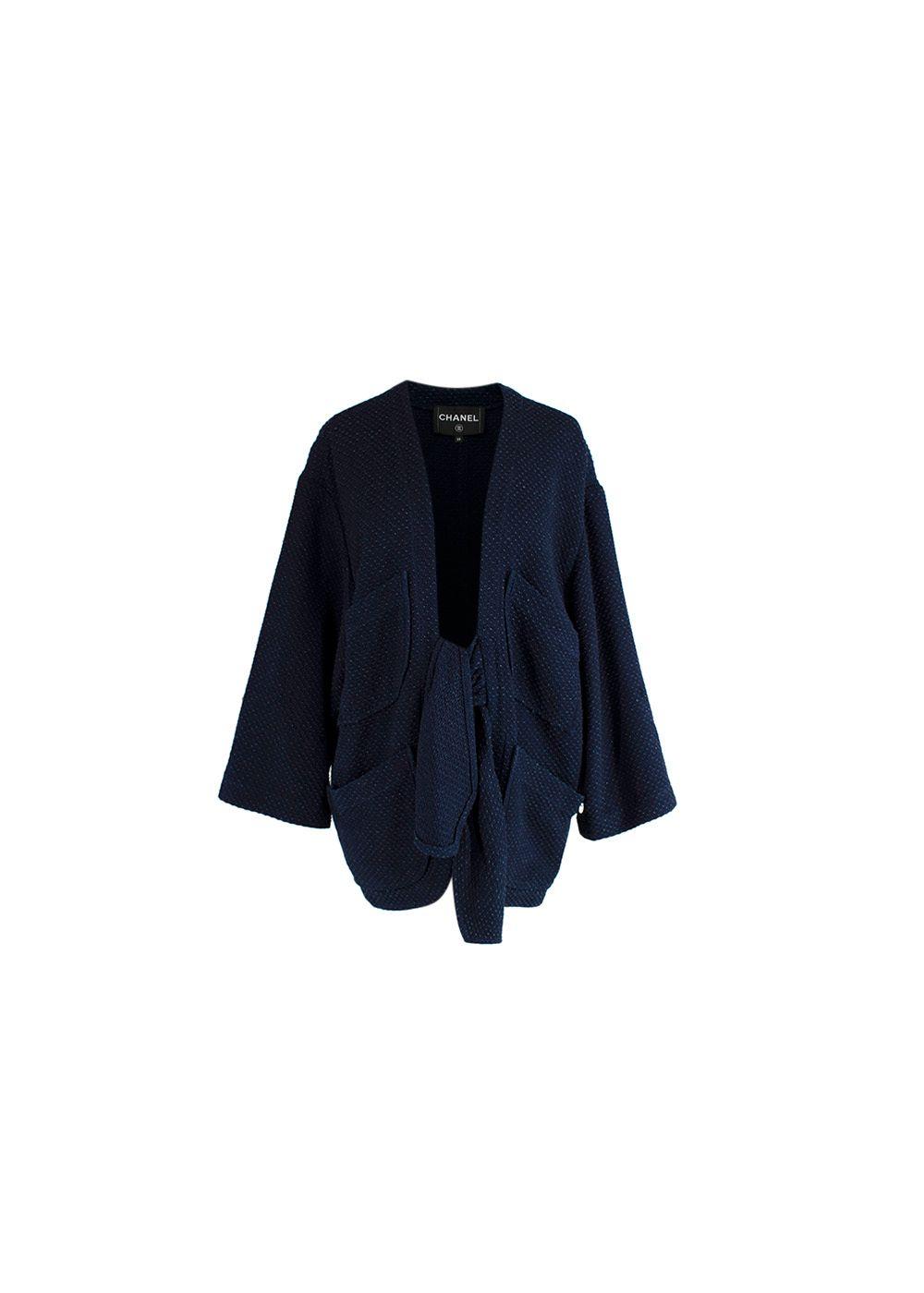Chanel navy textured cotton tie-front cardigan