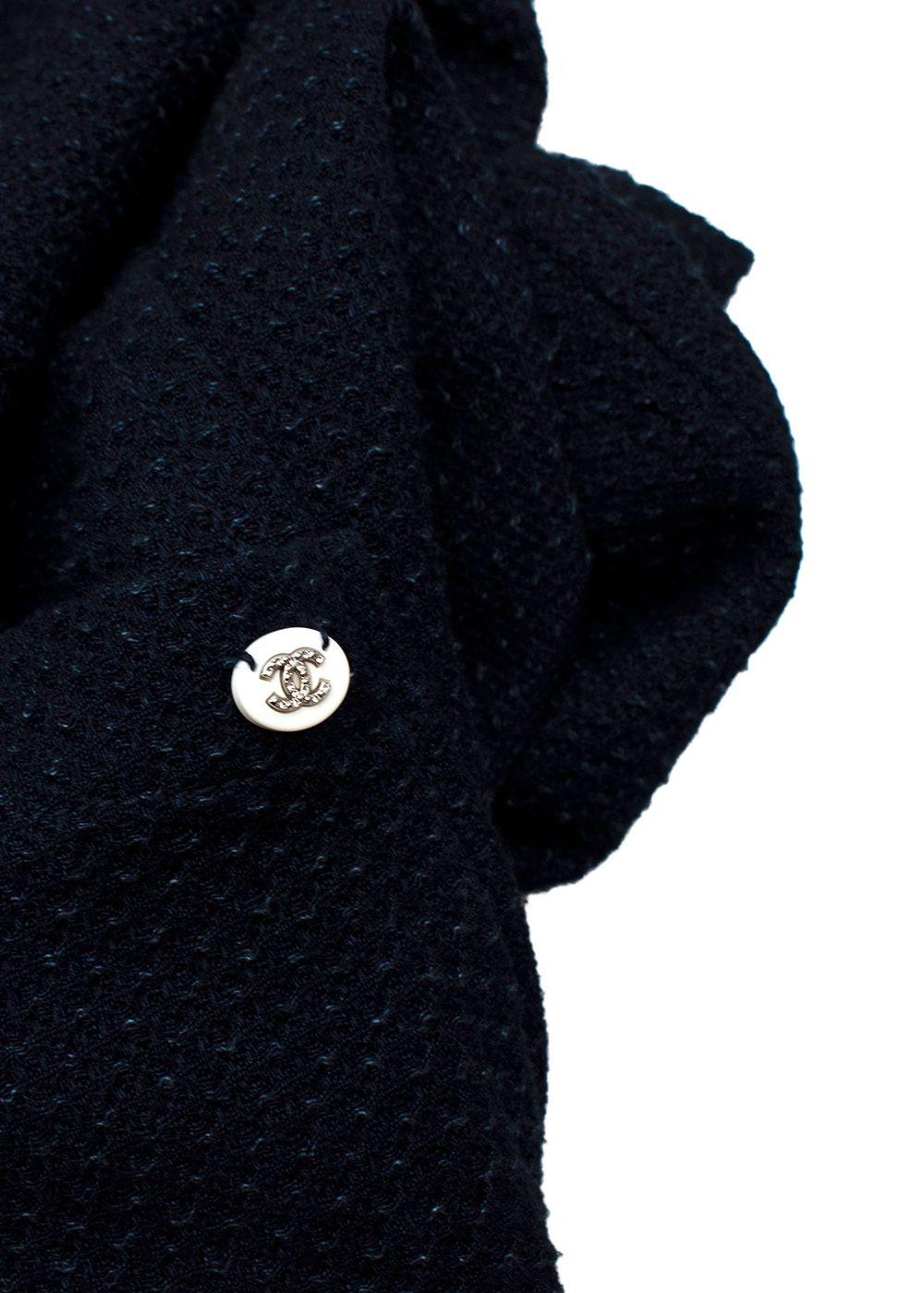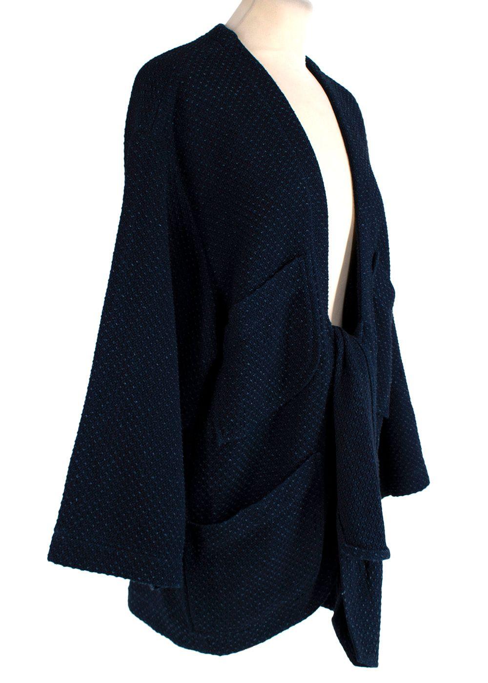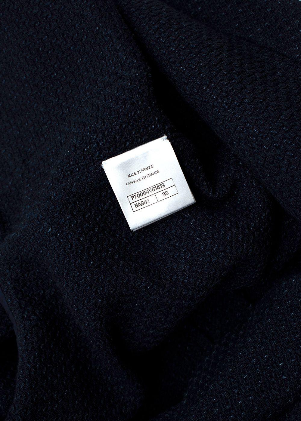 Chanel navy textured cotton tie-front cardigan