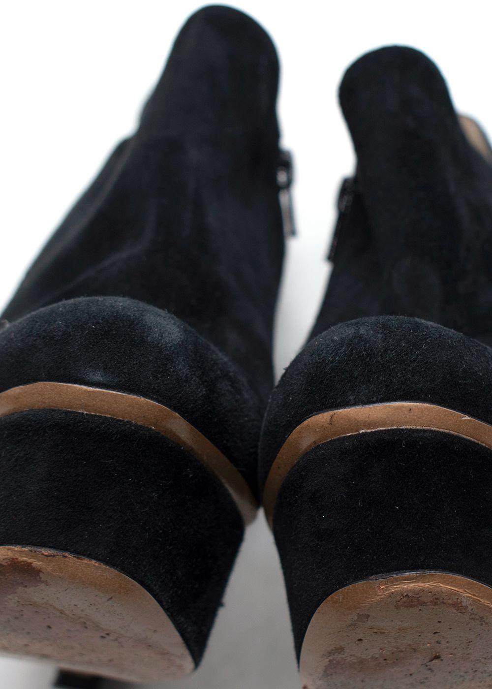 Condition (as you described): “Hardly ever worn it” — from photos, the suede uppers and general shape appear well preserved; some scuffing or wear may be visible on soles (common in gently worn heels), but overall the boots look to be in very good / excellent pre-loved condition.