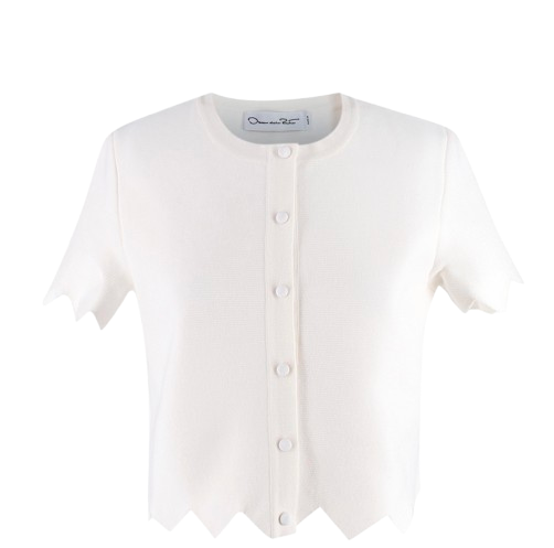 Oscar de la Renta Cream Cropped Stretch Knit Cardigan