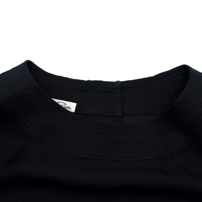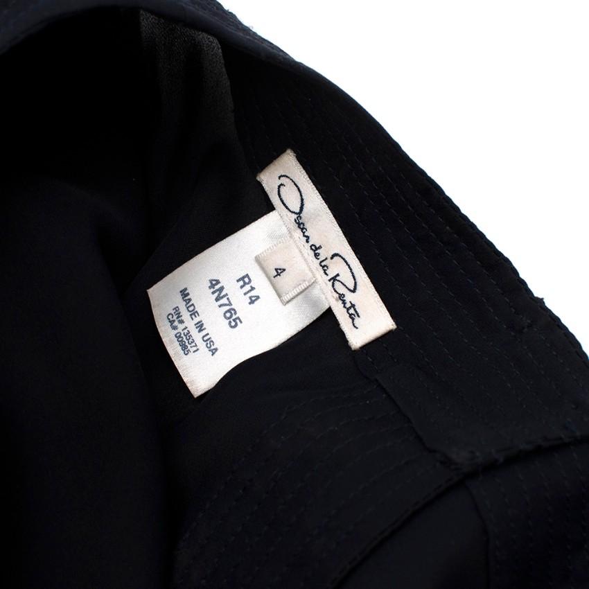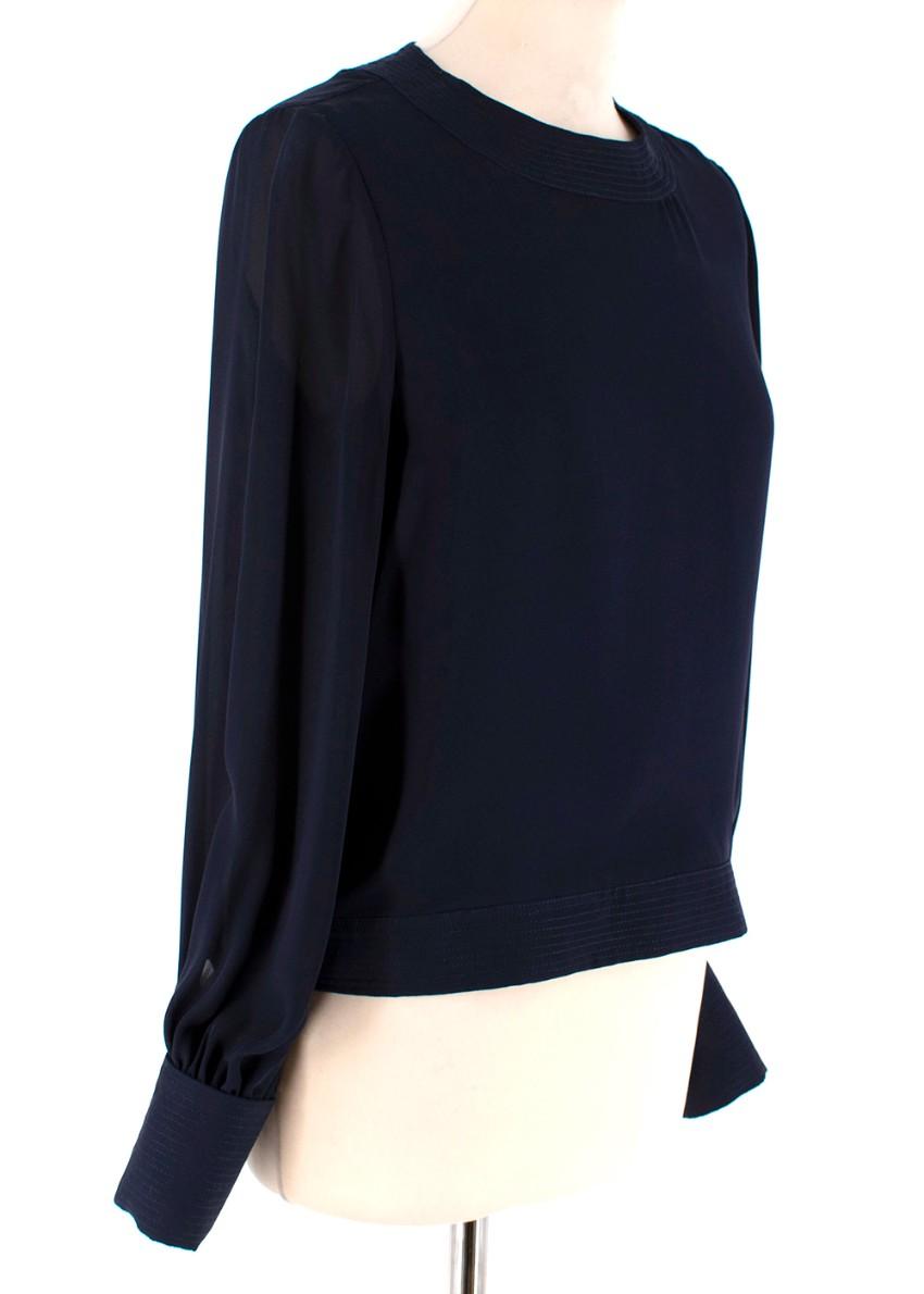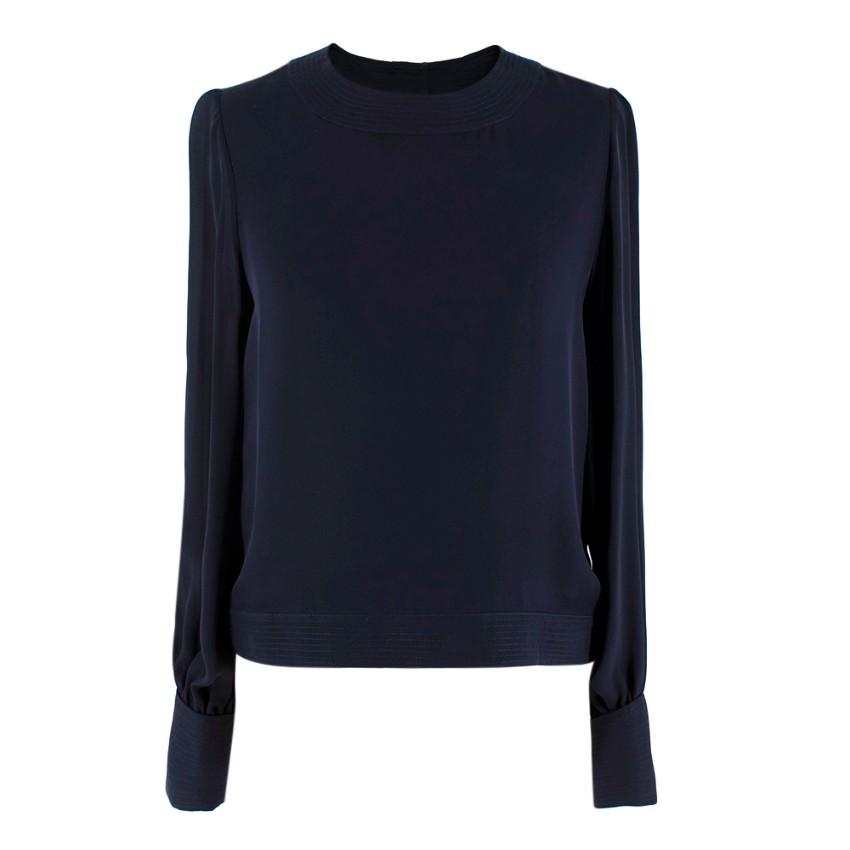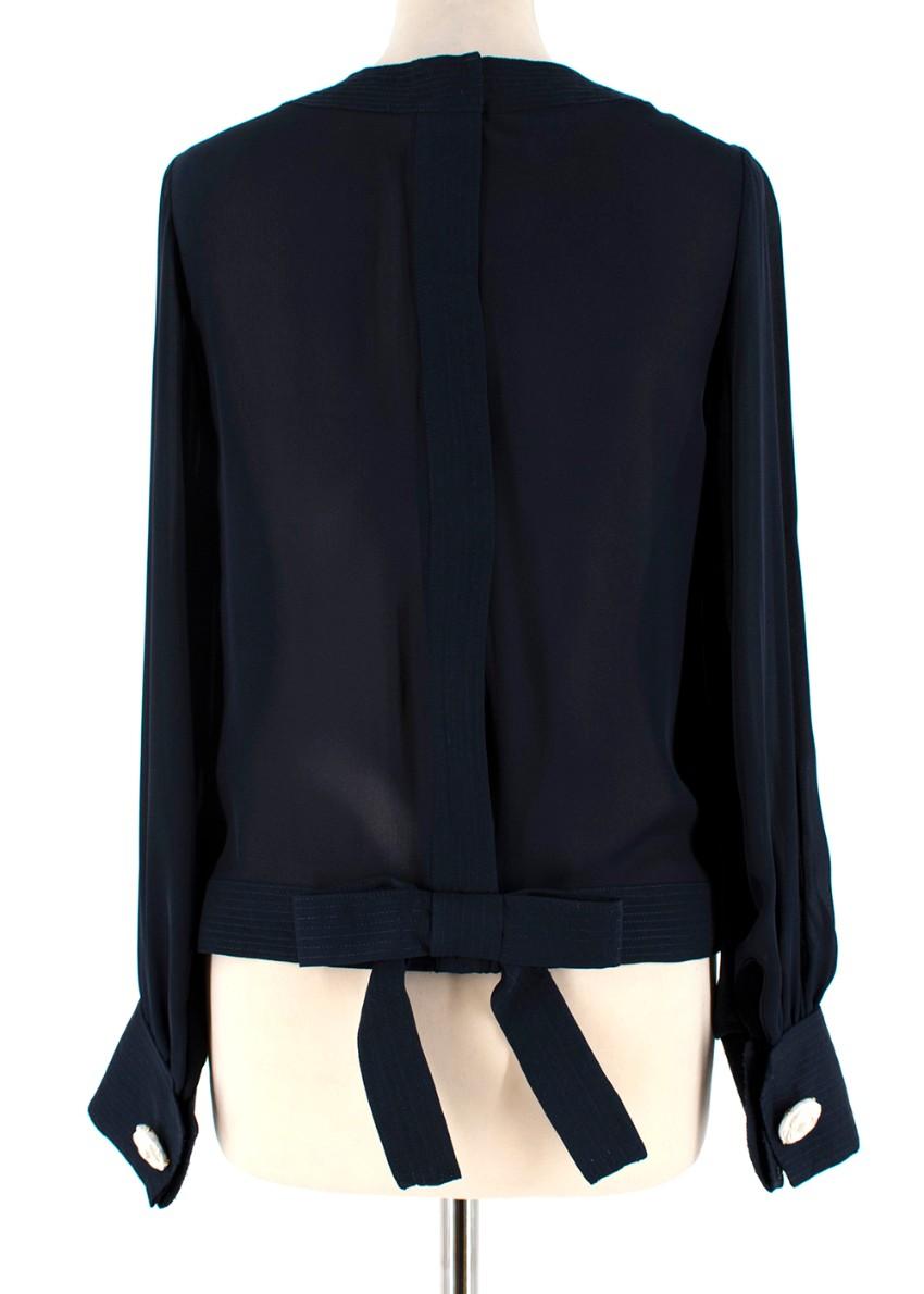 Oscar de la Renta Navy Blue Blouse with Large Rose Button Cuffs
