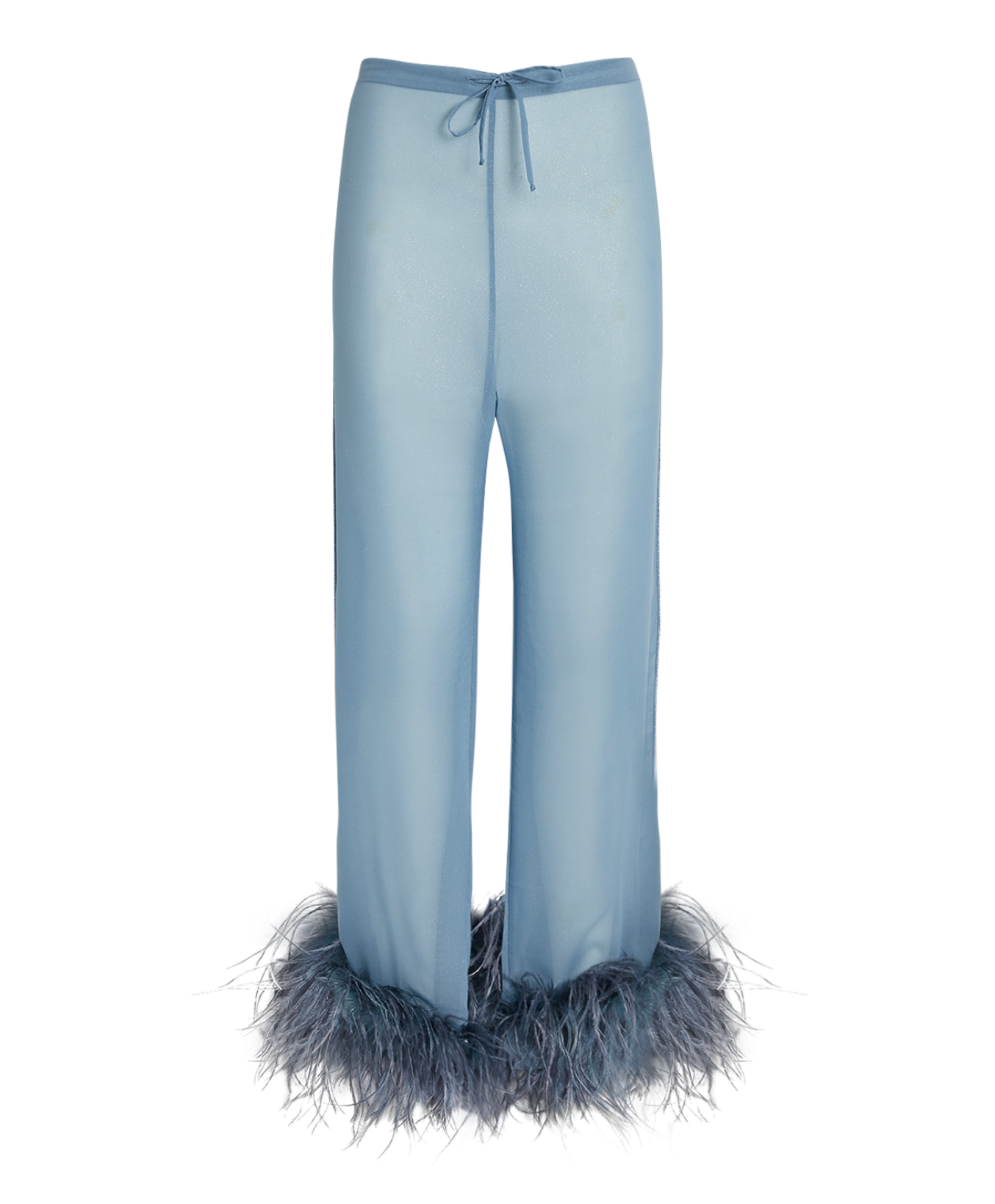 OSÉREE Lumière Feather-Trimmed Glittered Chiffon Straight-Leg Pants