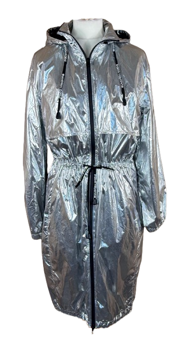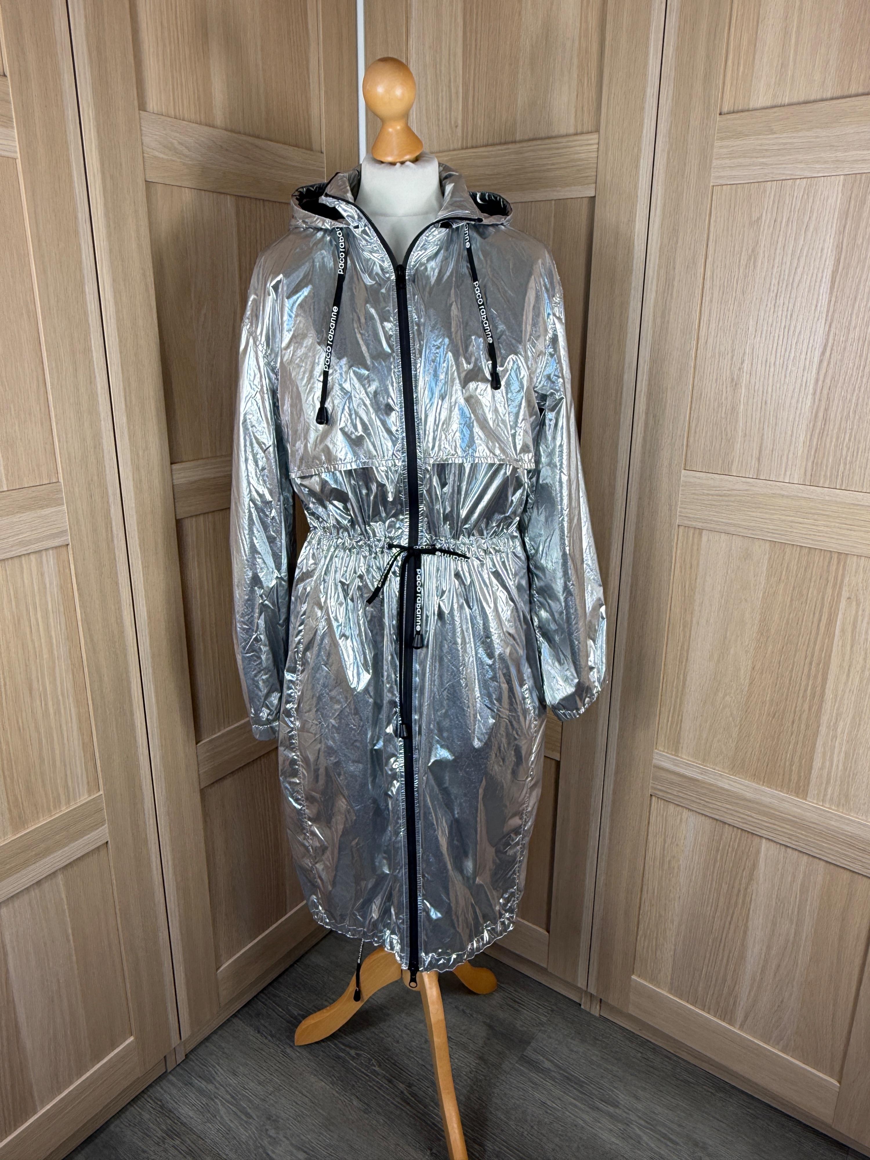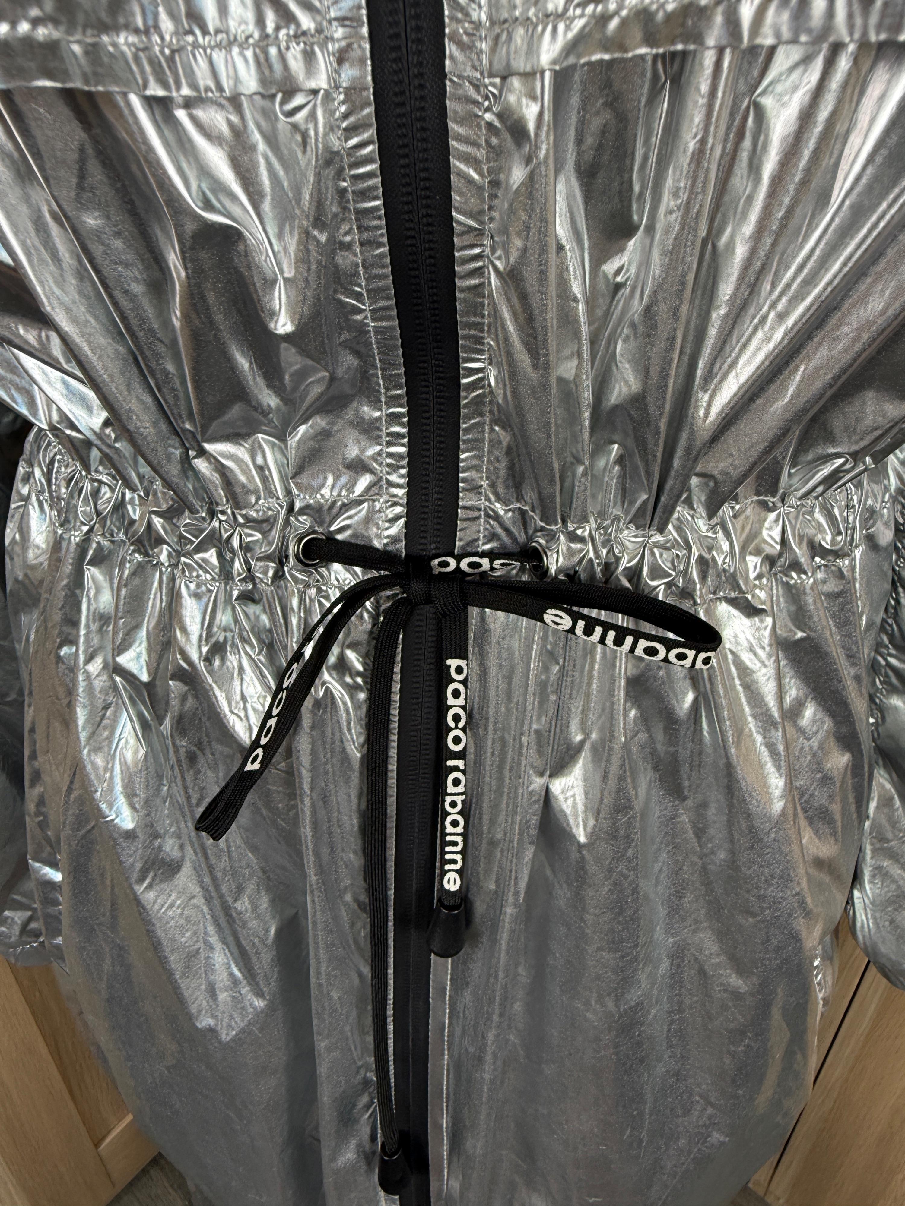 Silver raincoat by Paco Rabanne. Hardly worn. Size Small/ 8UK