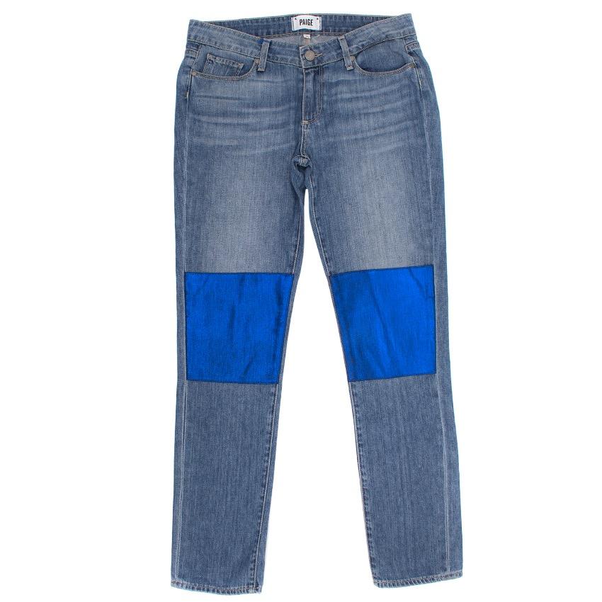 Paige denim Jimmy Jimmy skinny in Nico blue Galaxy with killer metallic knee patches and with a slim boyfriend style.
