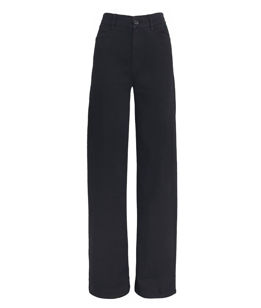 Classic black tailored trousers with a clean, straight-leg silhouette. Designed with a mid-rise waist, belt loops, button closure, and a structured fit that makes them suitable for both professional and casual wear. Minimalist design allows for versatile styling with blouses, knits, or blazers. Timeless wardrobe essential.