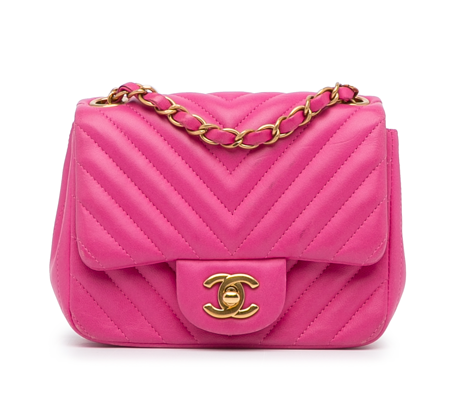 Pink Lambskin Chevron Mini Flap Bag