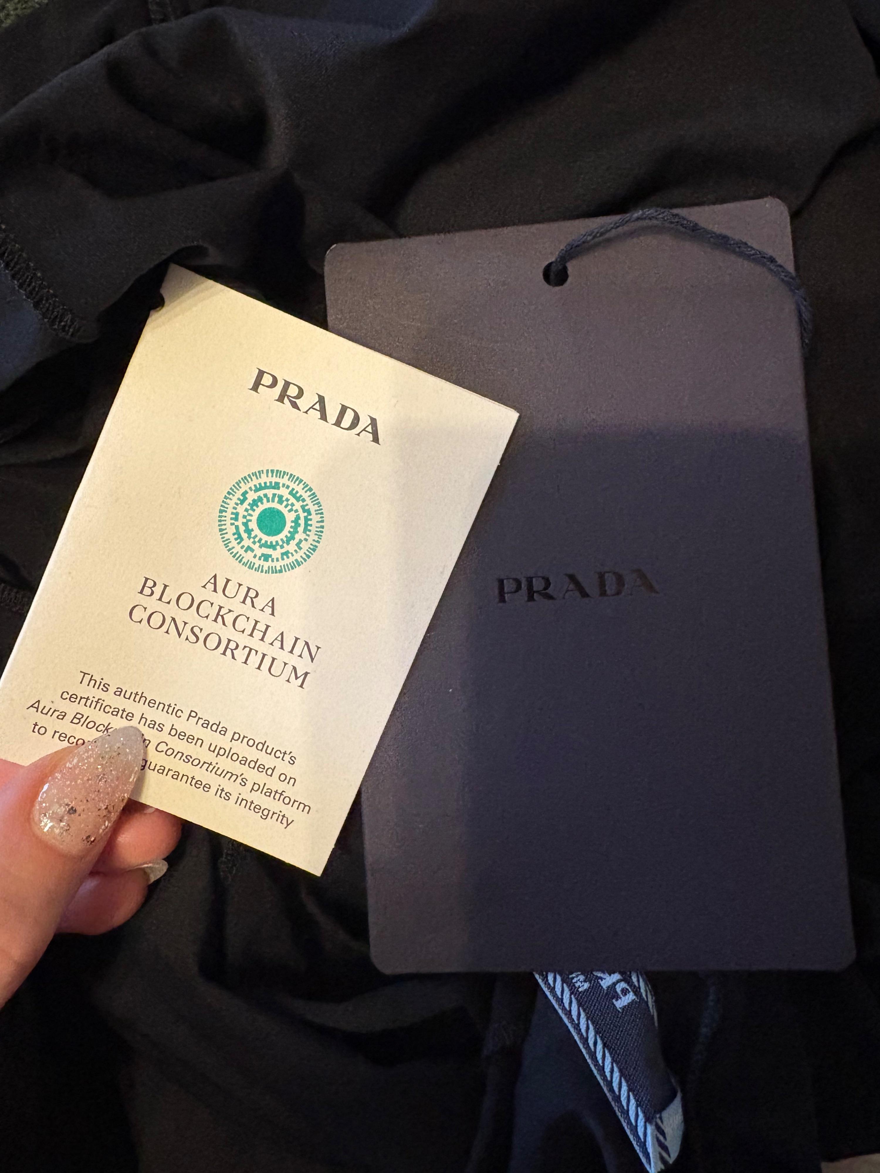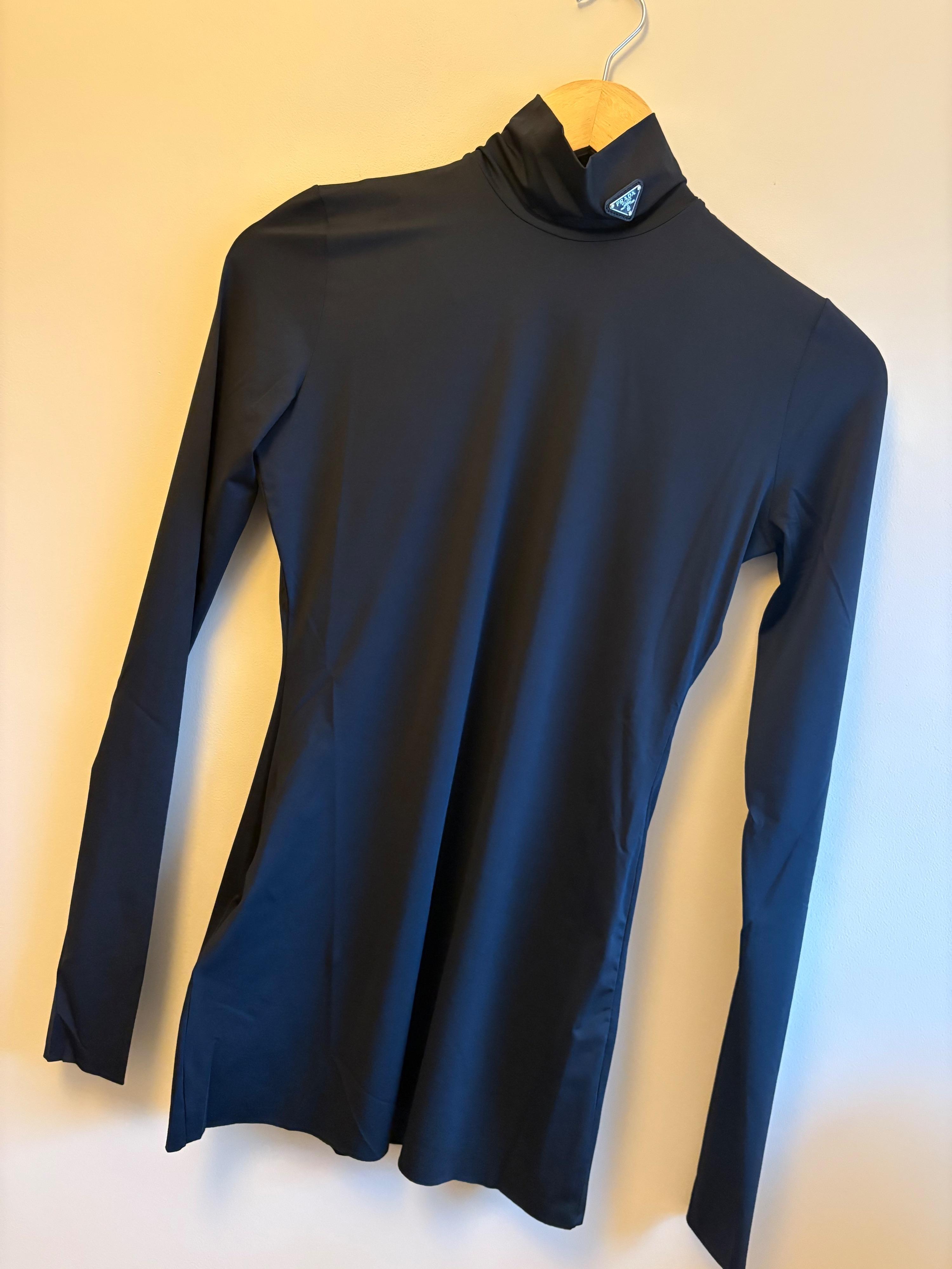 Prada jersey turtle neck top with badge detailing. Never worn, brand new.