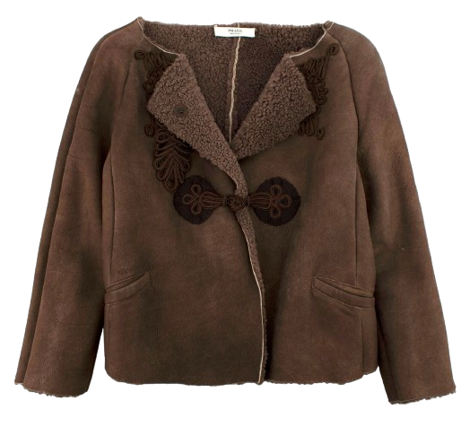Prada Chocolate Brown Sheepskin Embroidered Jacket