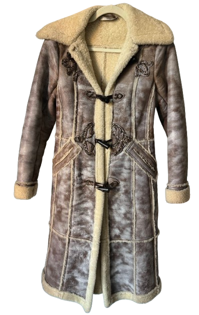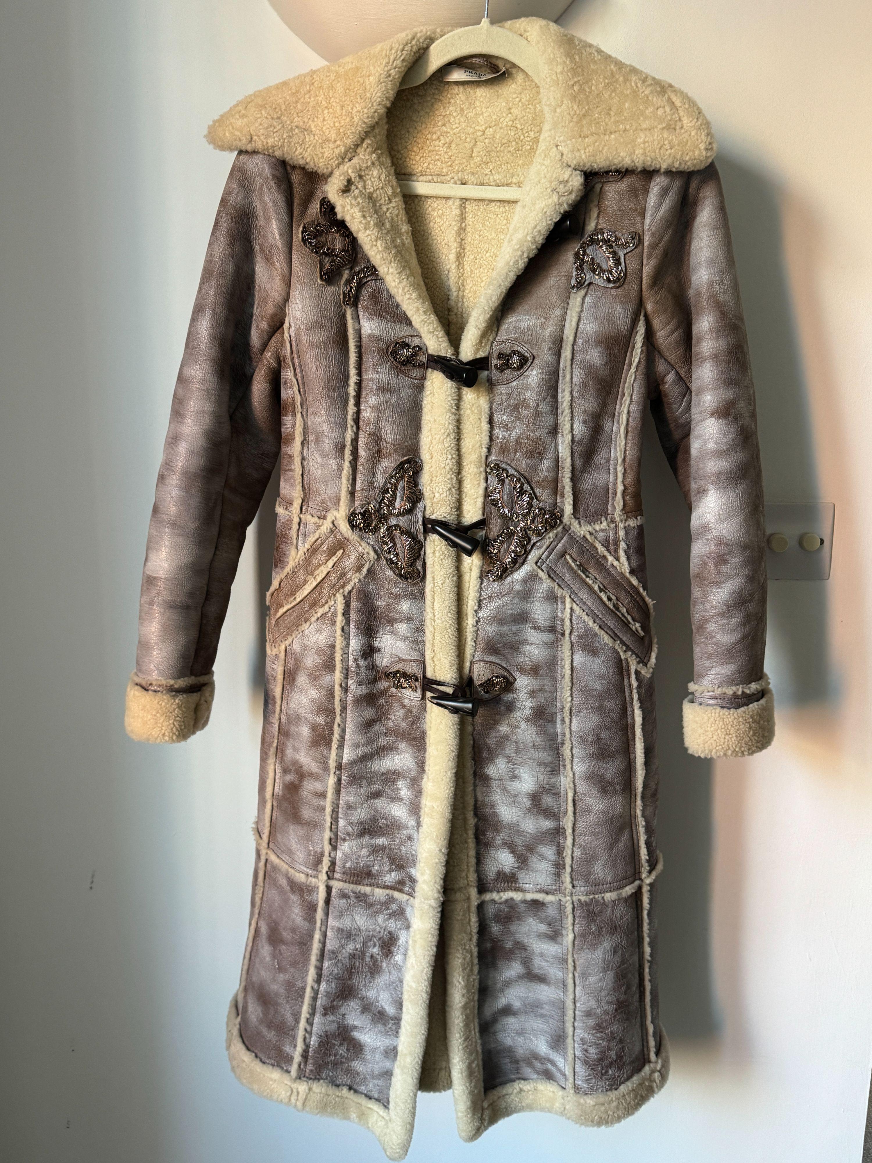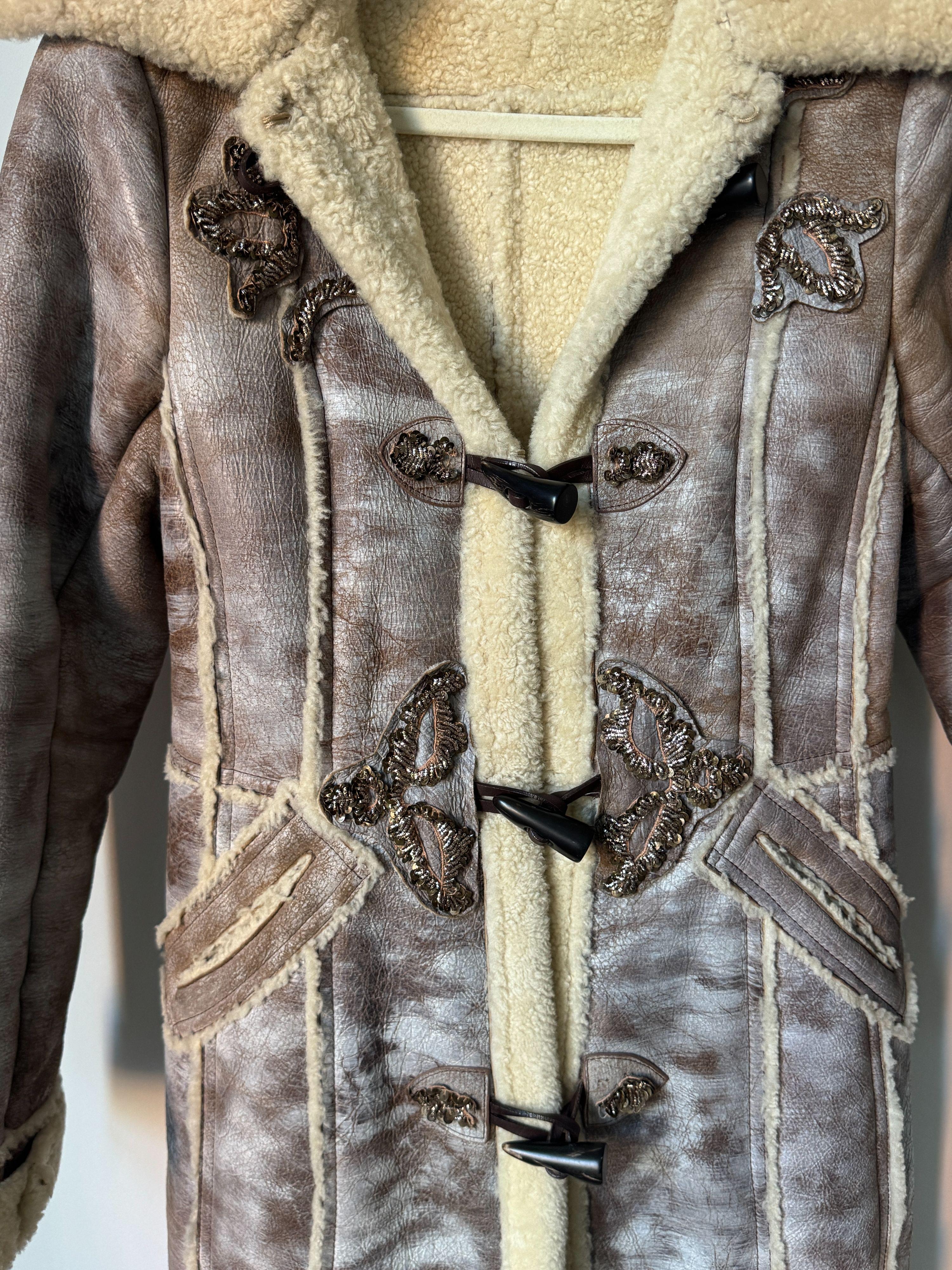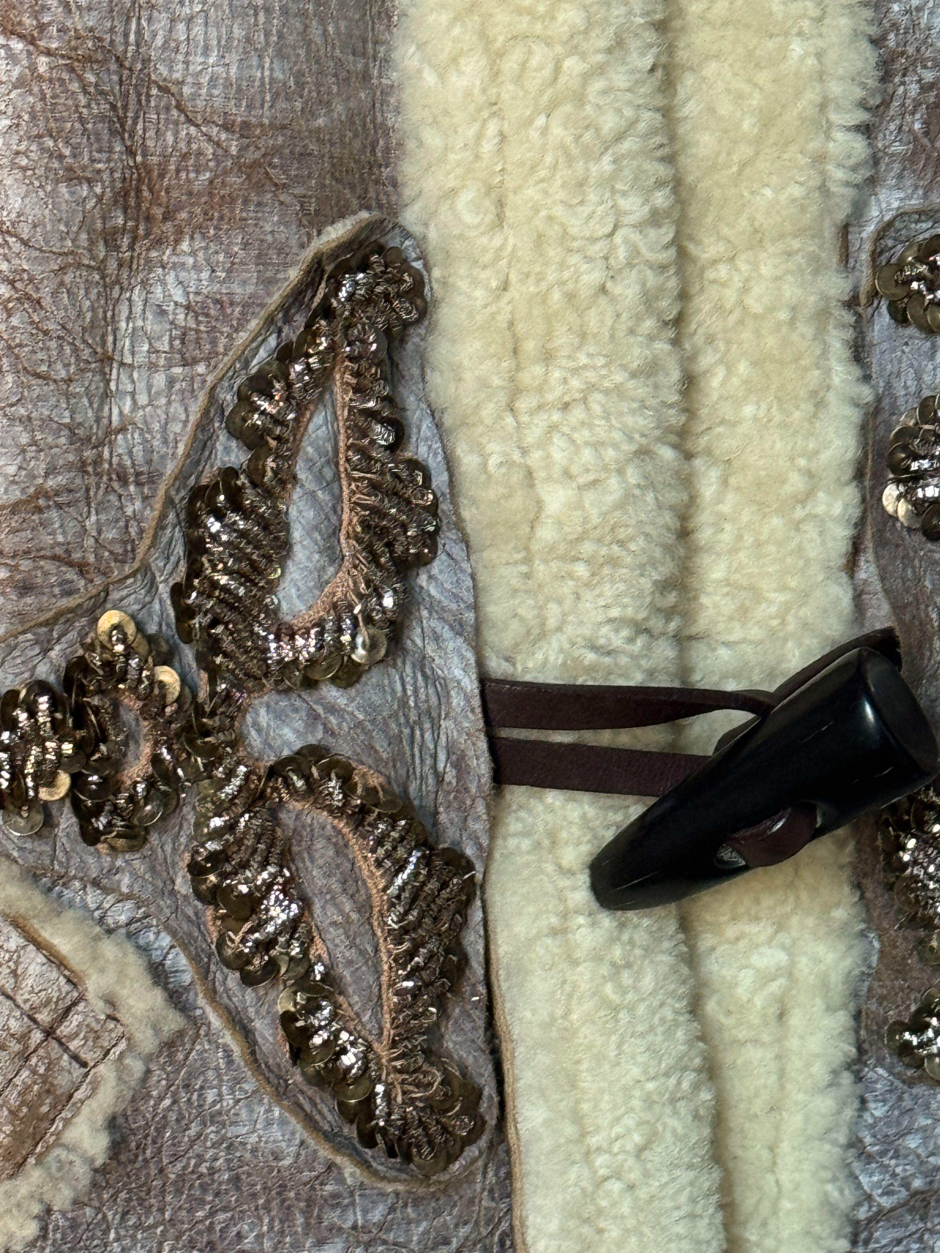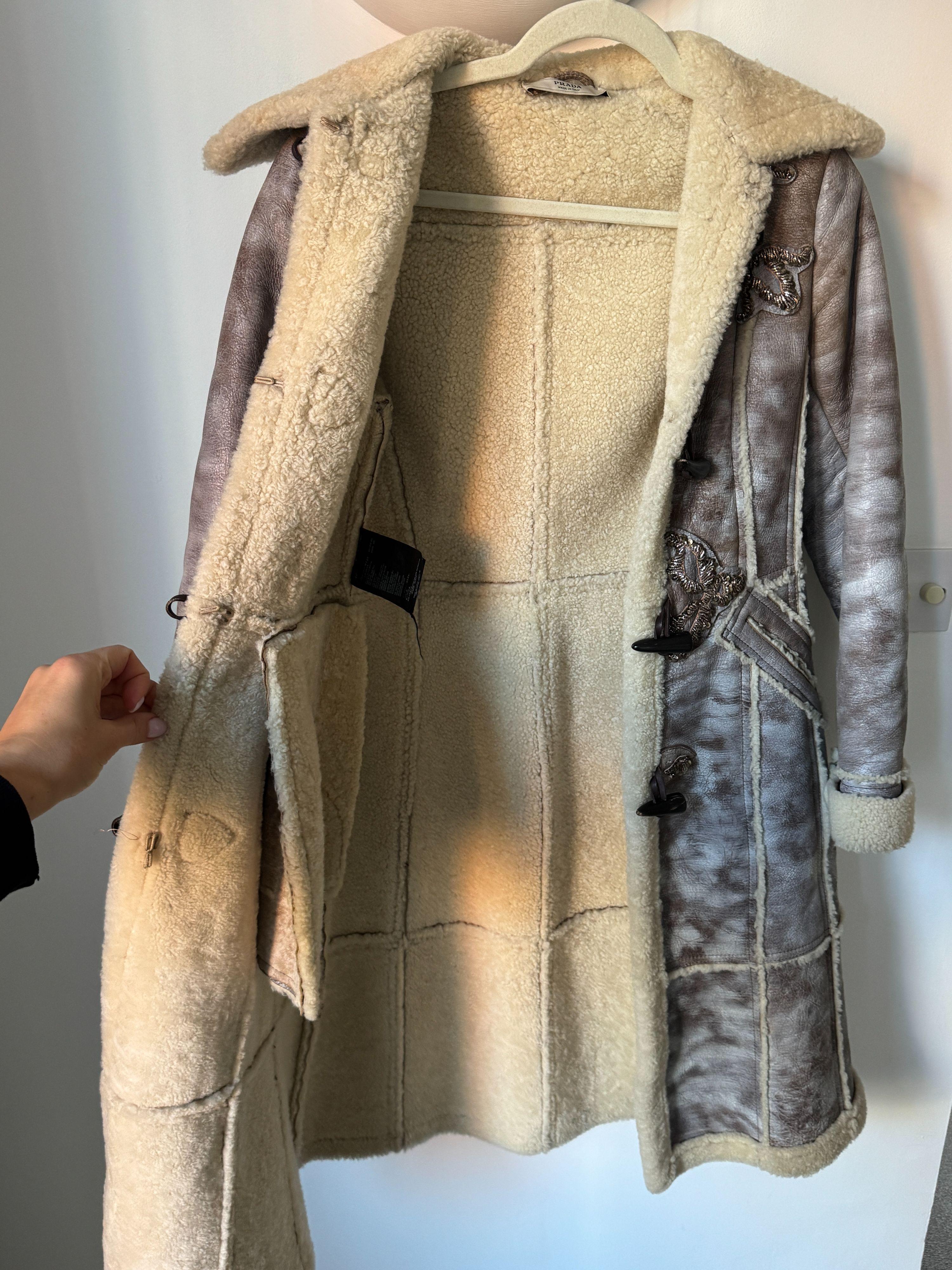 Stunning embroidered shearling coat by Prada. Early 2000s, a true couture piece, horn duffel closure with leather loops. Incredibly rare piece.