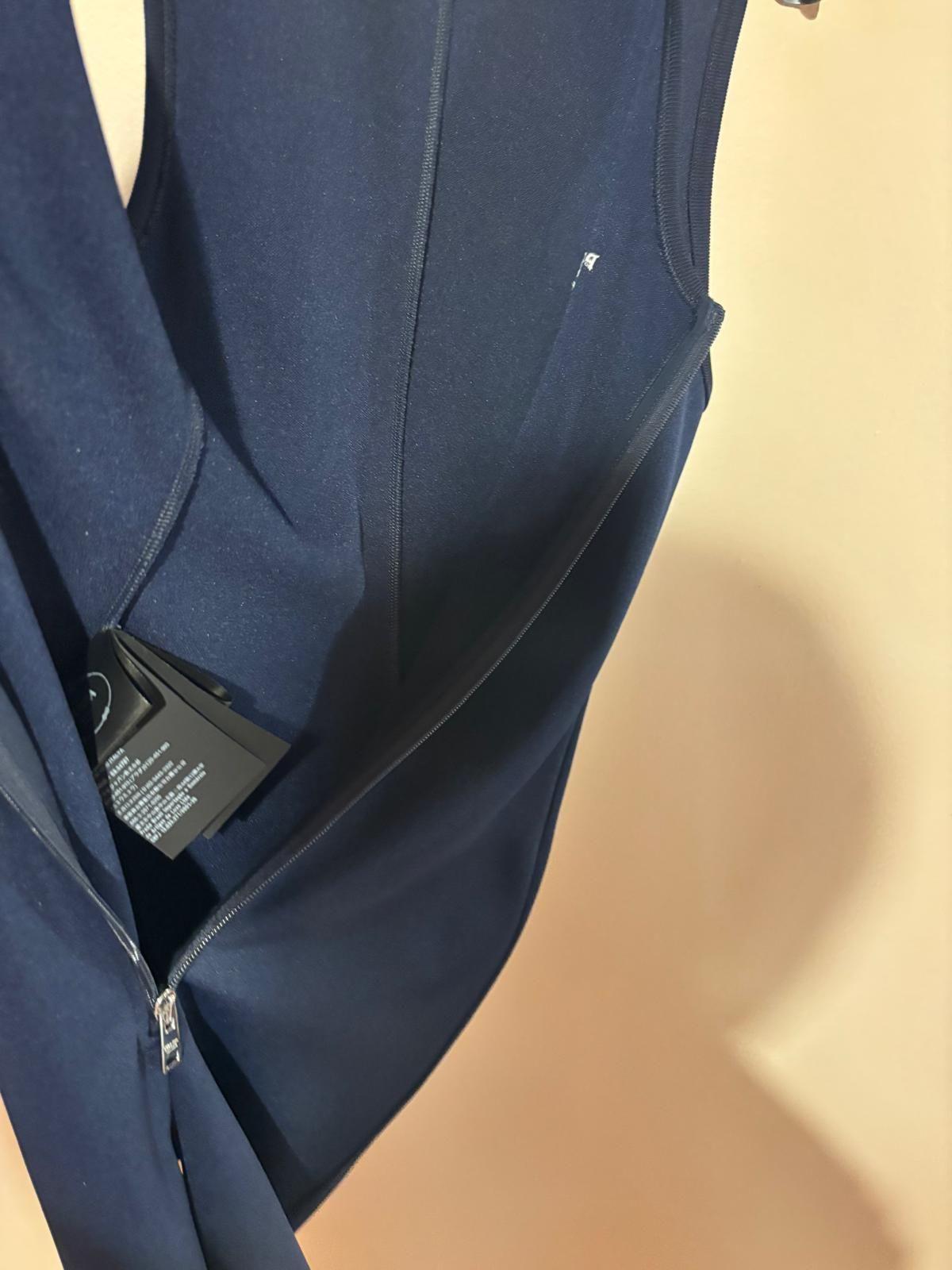 The structured yet fluid design enhances the figure while ensuring comfort and effortless elegance. The deep blue tone adds a sophisticated touch, making the piece suitable for both evening occasions and modern day-to-night styling.