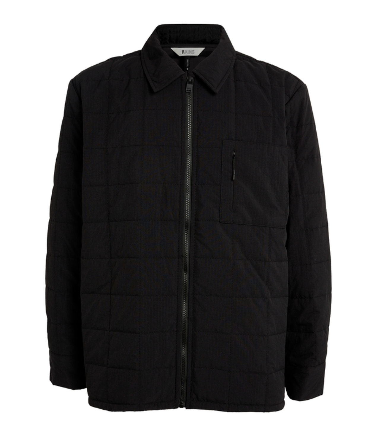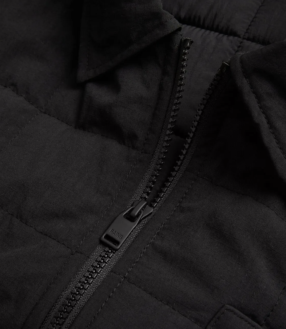 This Rains zip-up jacket is crafted to an overshirt silhouette. The design is elevated in both function and style with the addition of warming box quilting.
