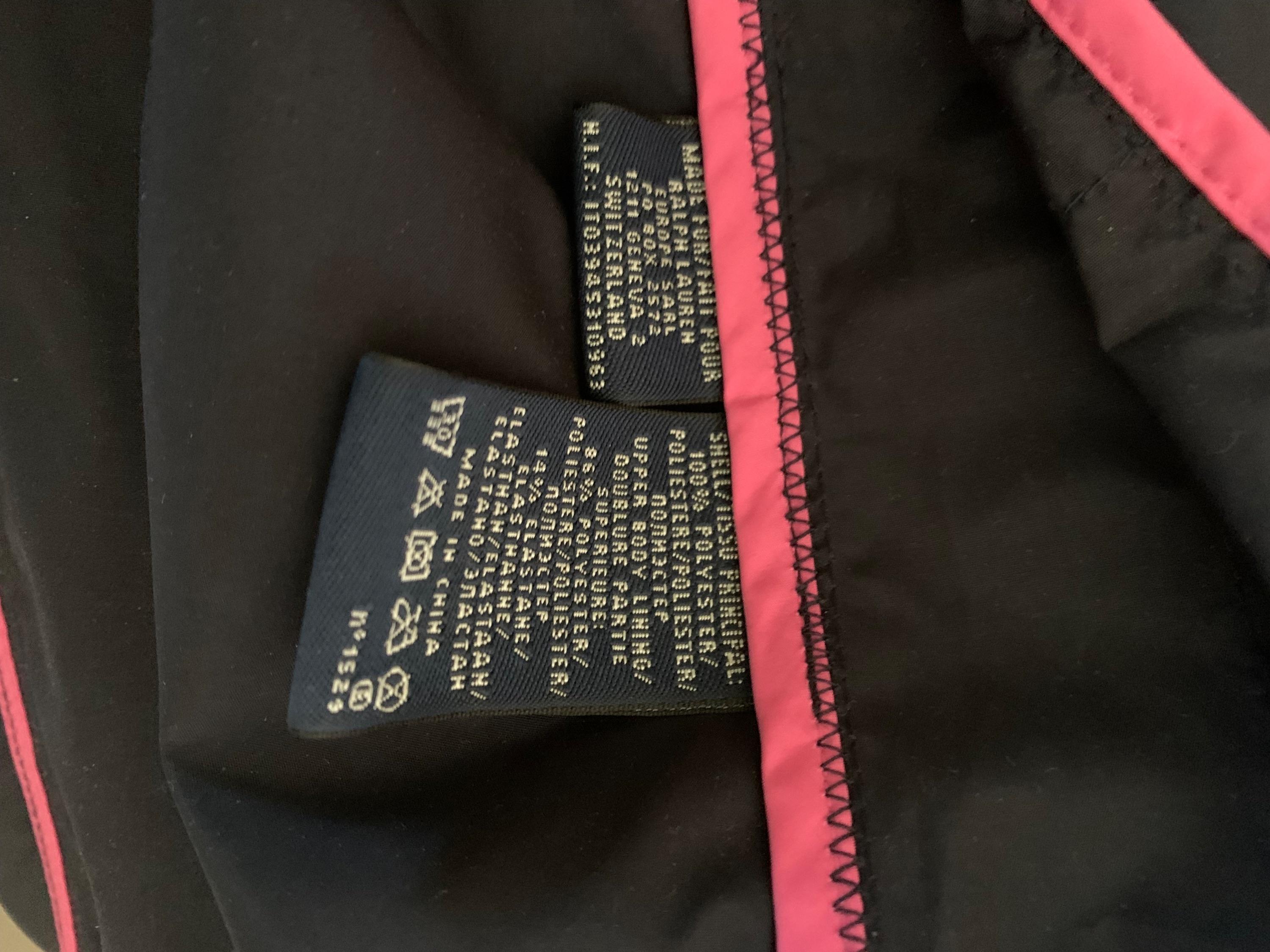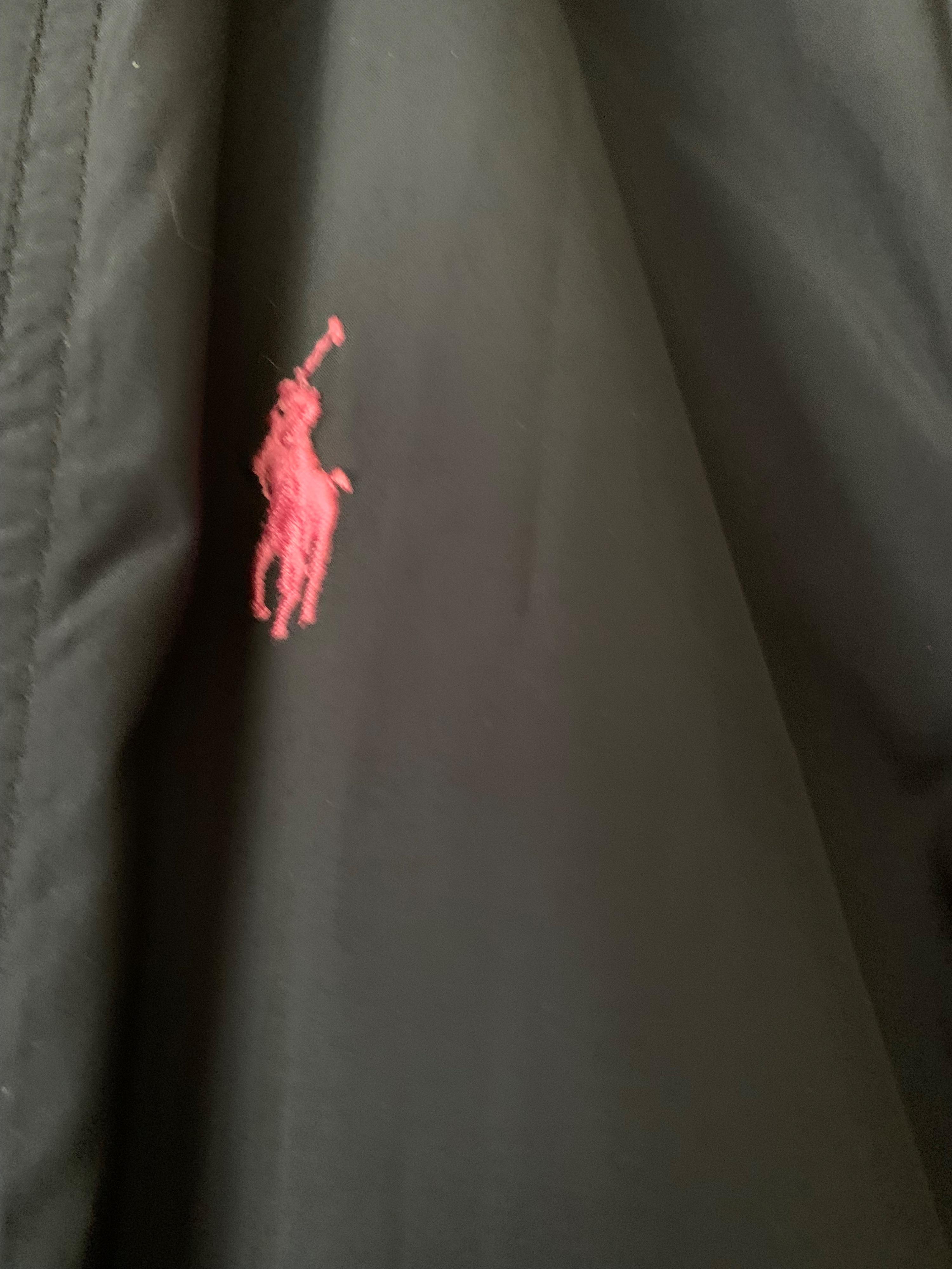 A rainproof sport jacket with pink RL Logo zip front row pockets slightly rushed in back for extra style . Worn twice