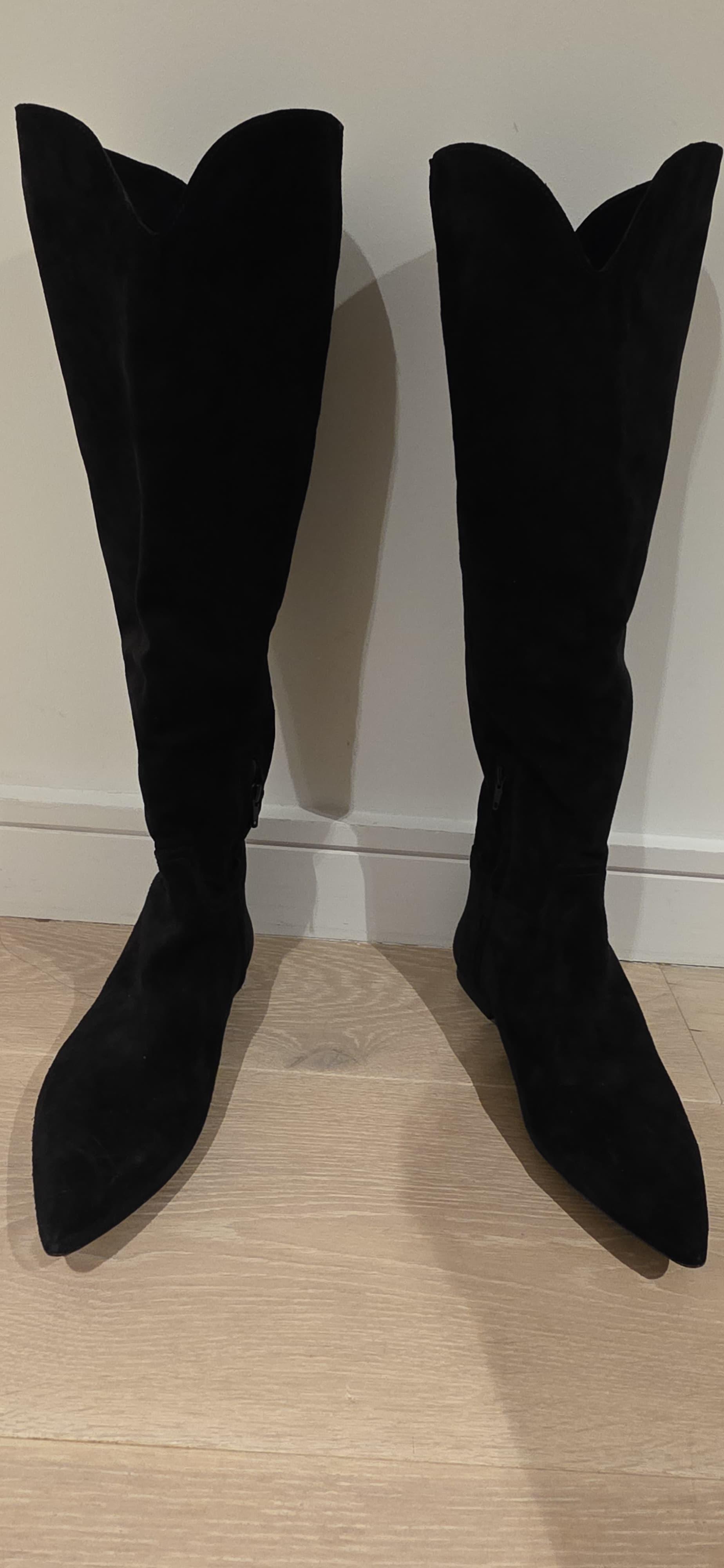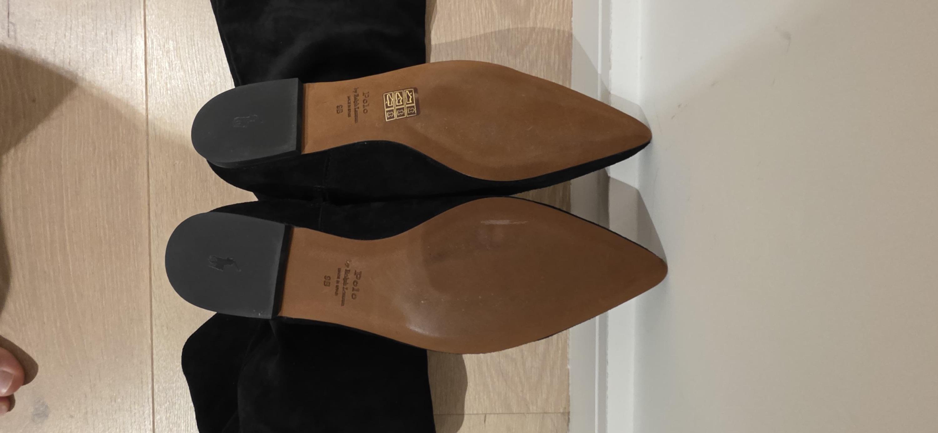10 mm heel height. 38.5 cm shaft height. 36 cm shaft opening circumference.