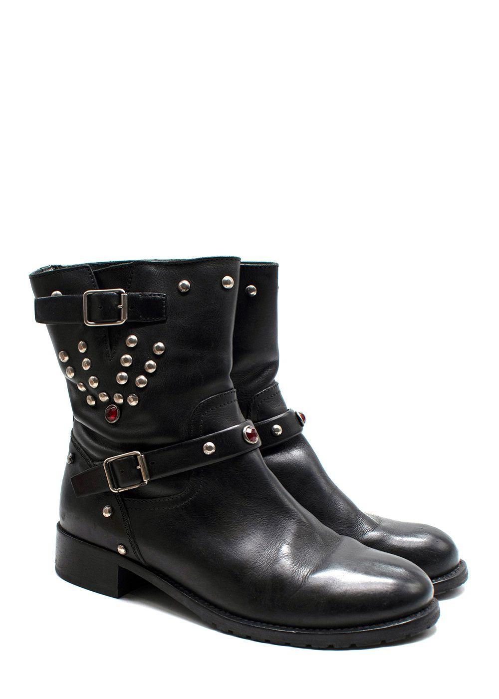 Ralph Lauren Stud Detail Black Ankle Boots