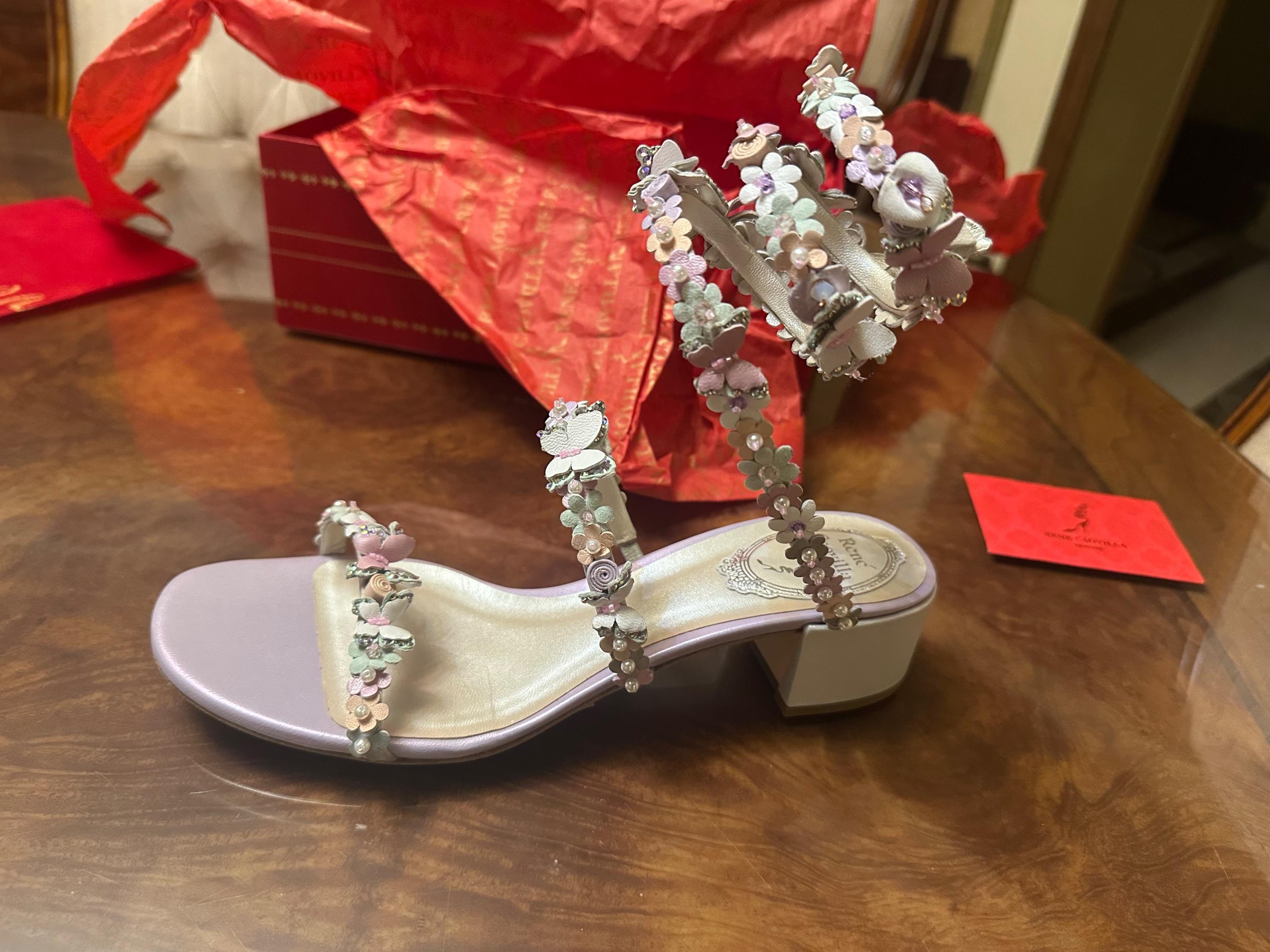 Brand New Rene Caovilla Lavender Bouquet Sandals