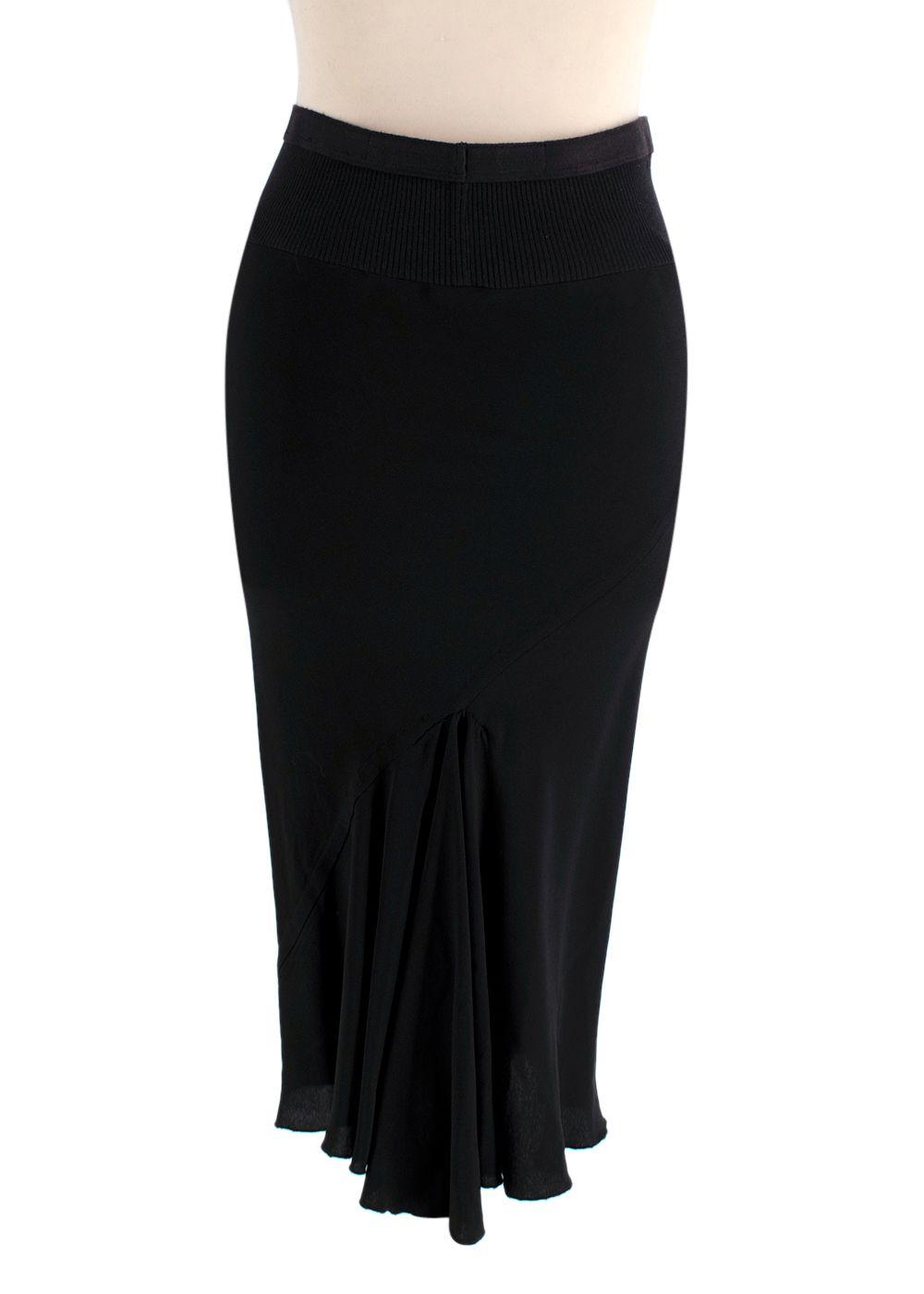 Rick Owens Black Knit Midi Skirt with Chiffon Hemline