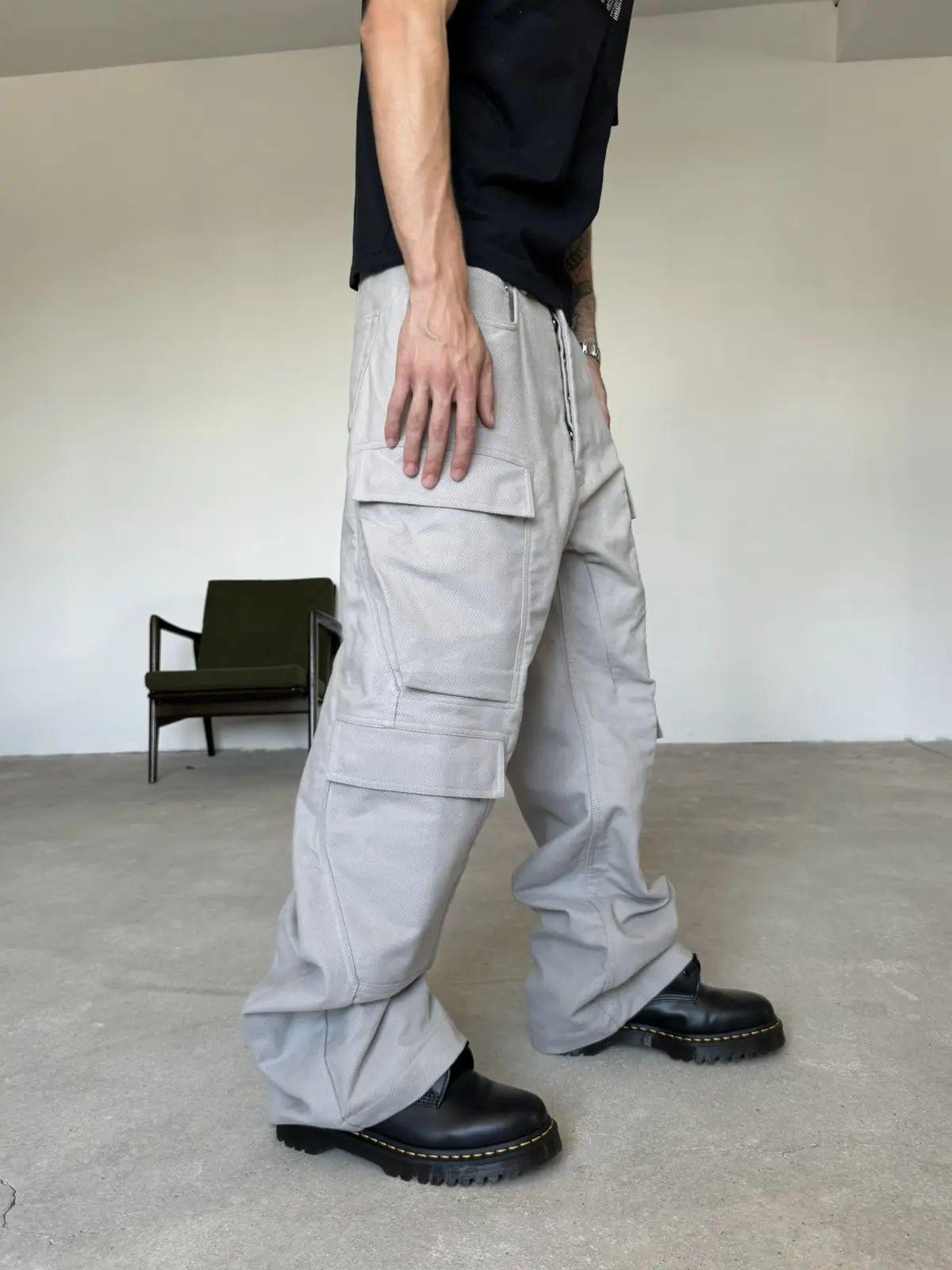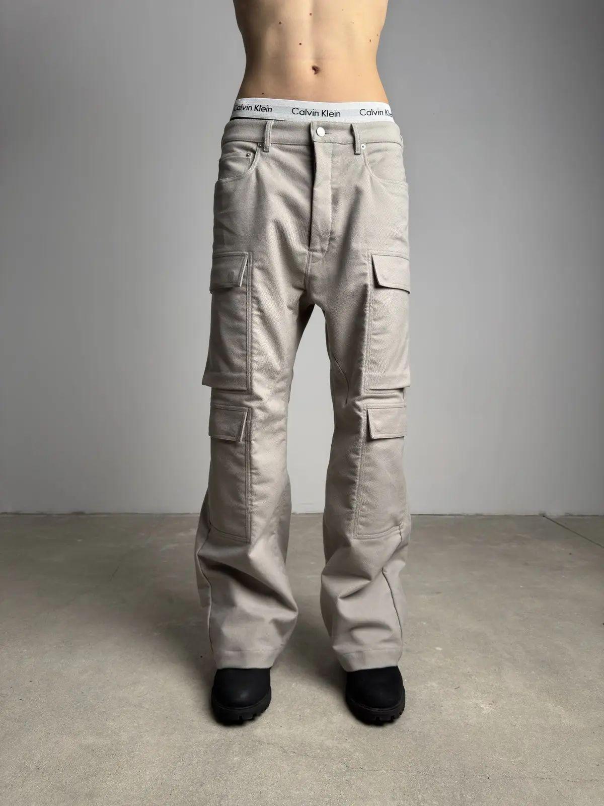 RICK OWENS FW25 CONCORDIANS DOUBLE CARGO JEANS IN PEARL BRUSHED HEAVY TWILL