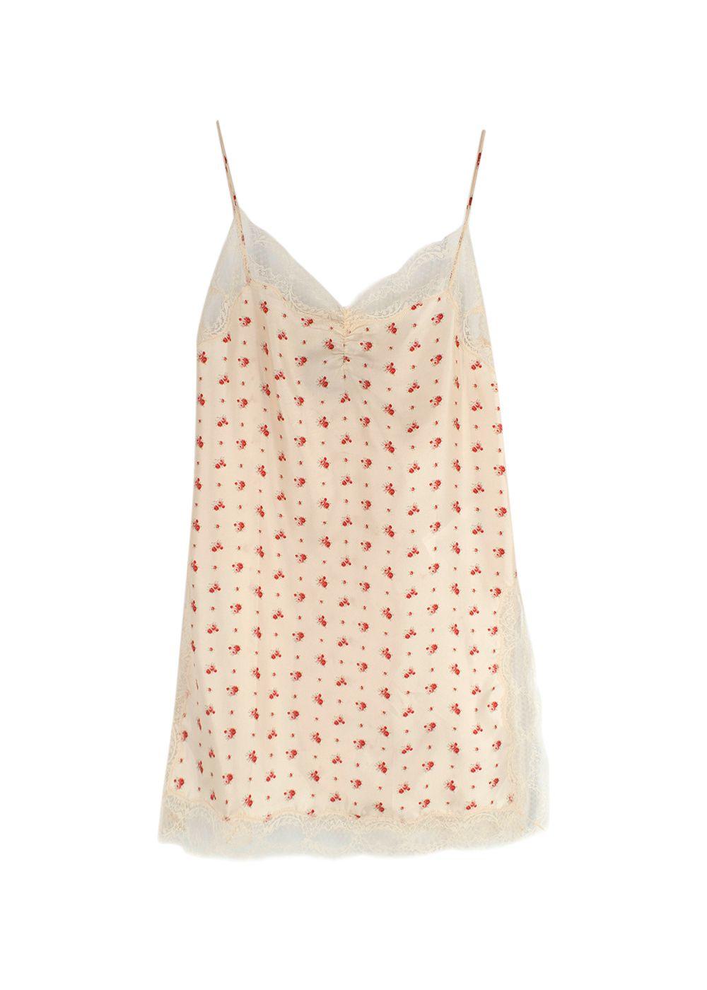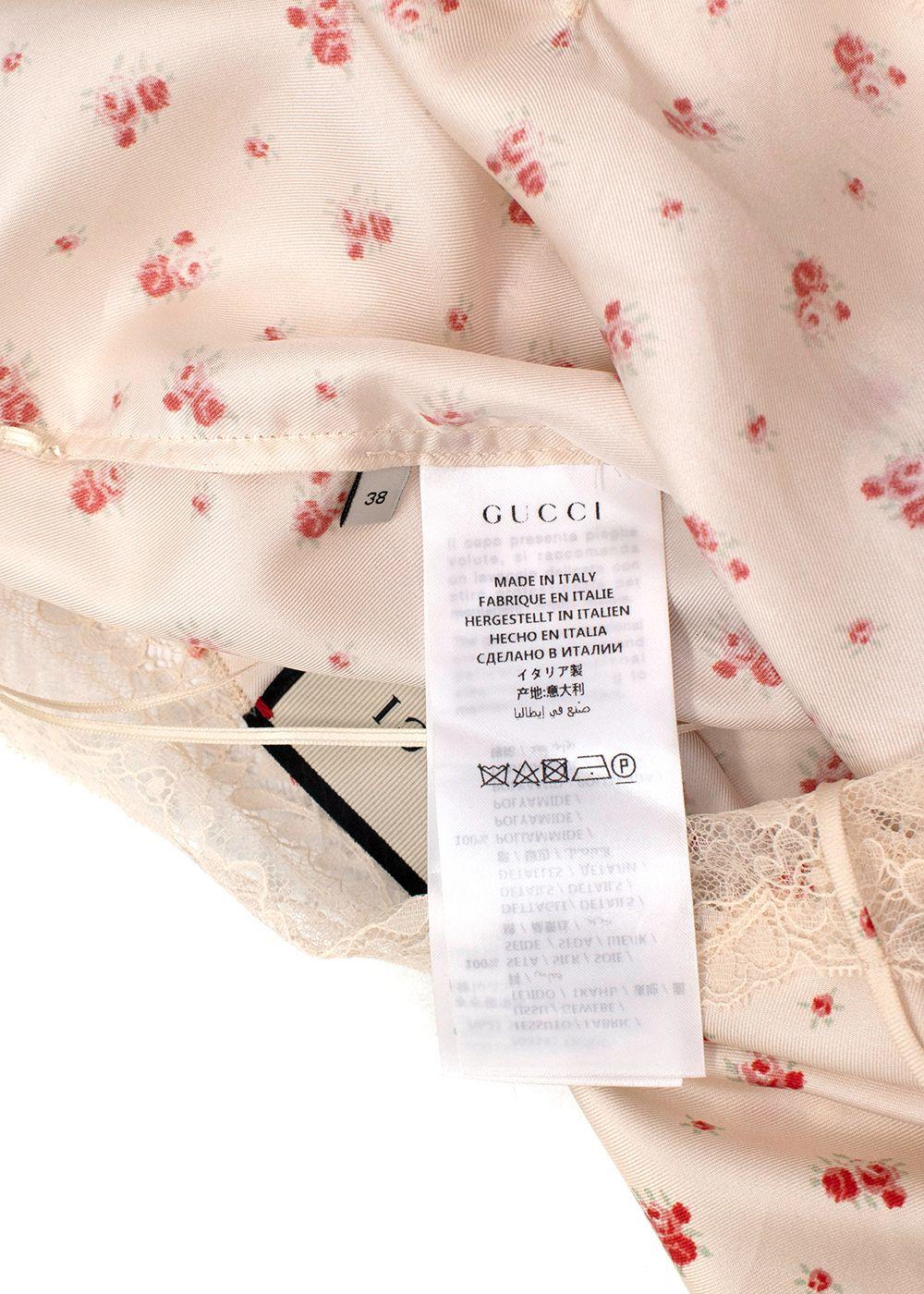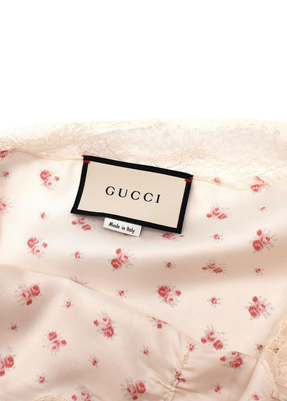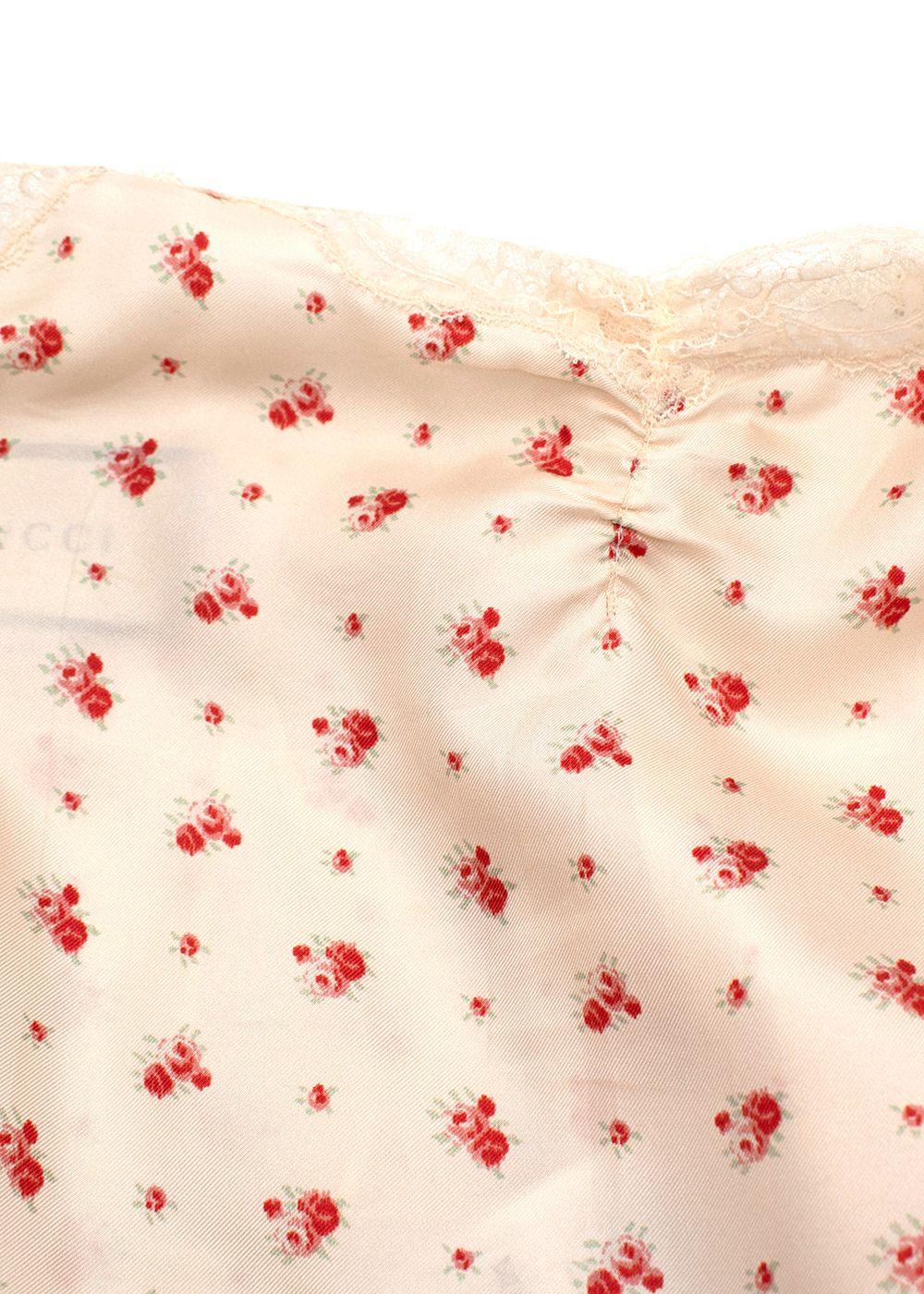 Gucci Rose Print Silk Lace Trimmed Cami Top