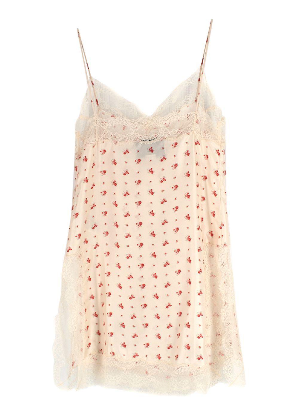 Rose Print Silk Lace Trimmed Cami Top
